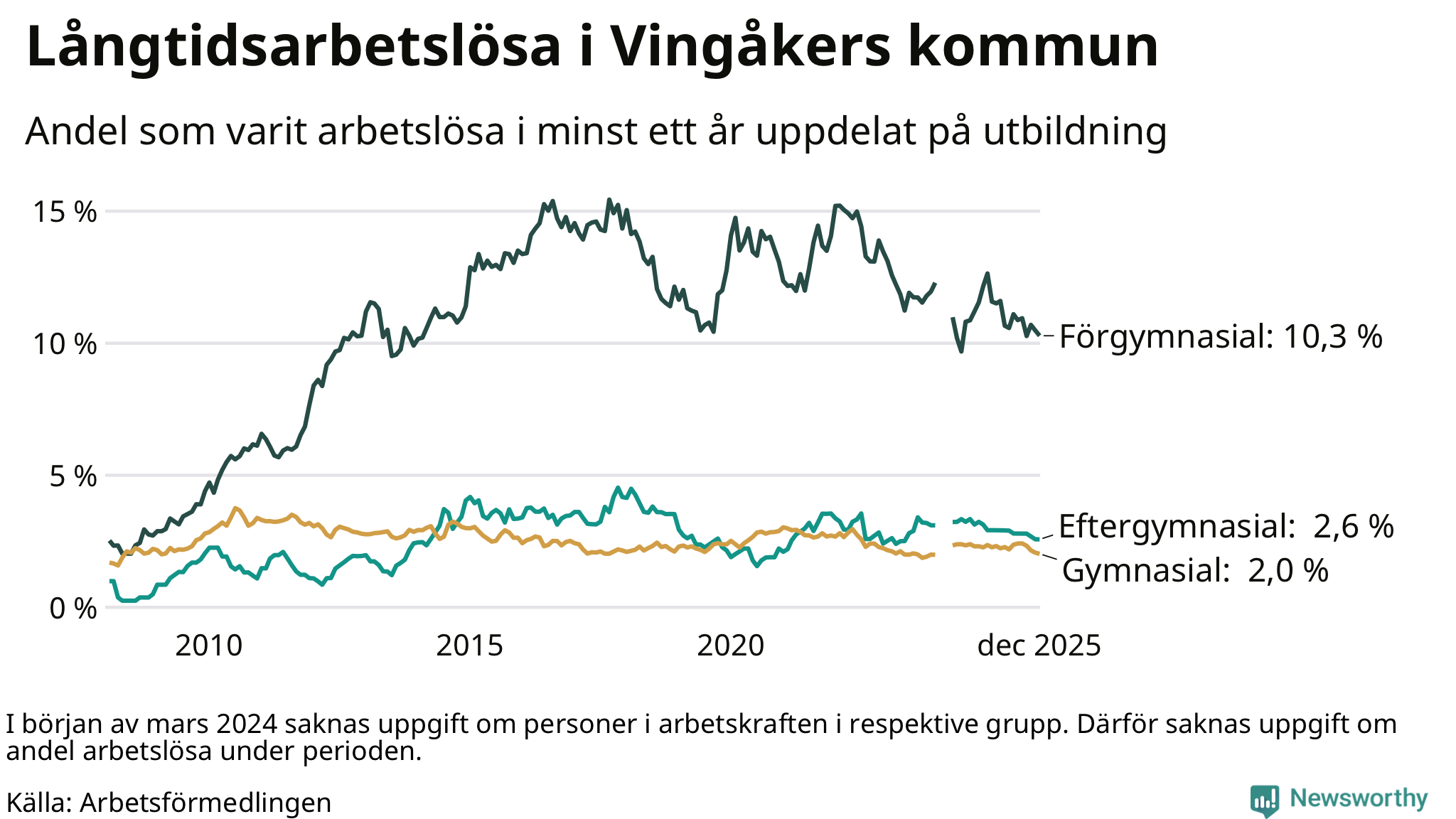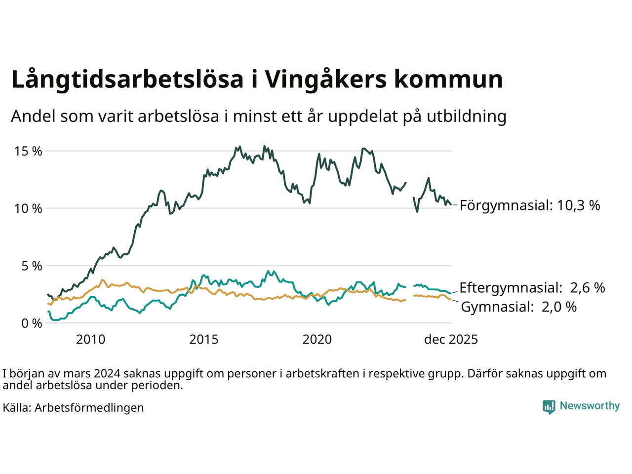 | Bland dem med eftergymnasial utbildning | 2,6 % | 2,3 % | 1,9 % |