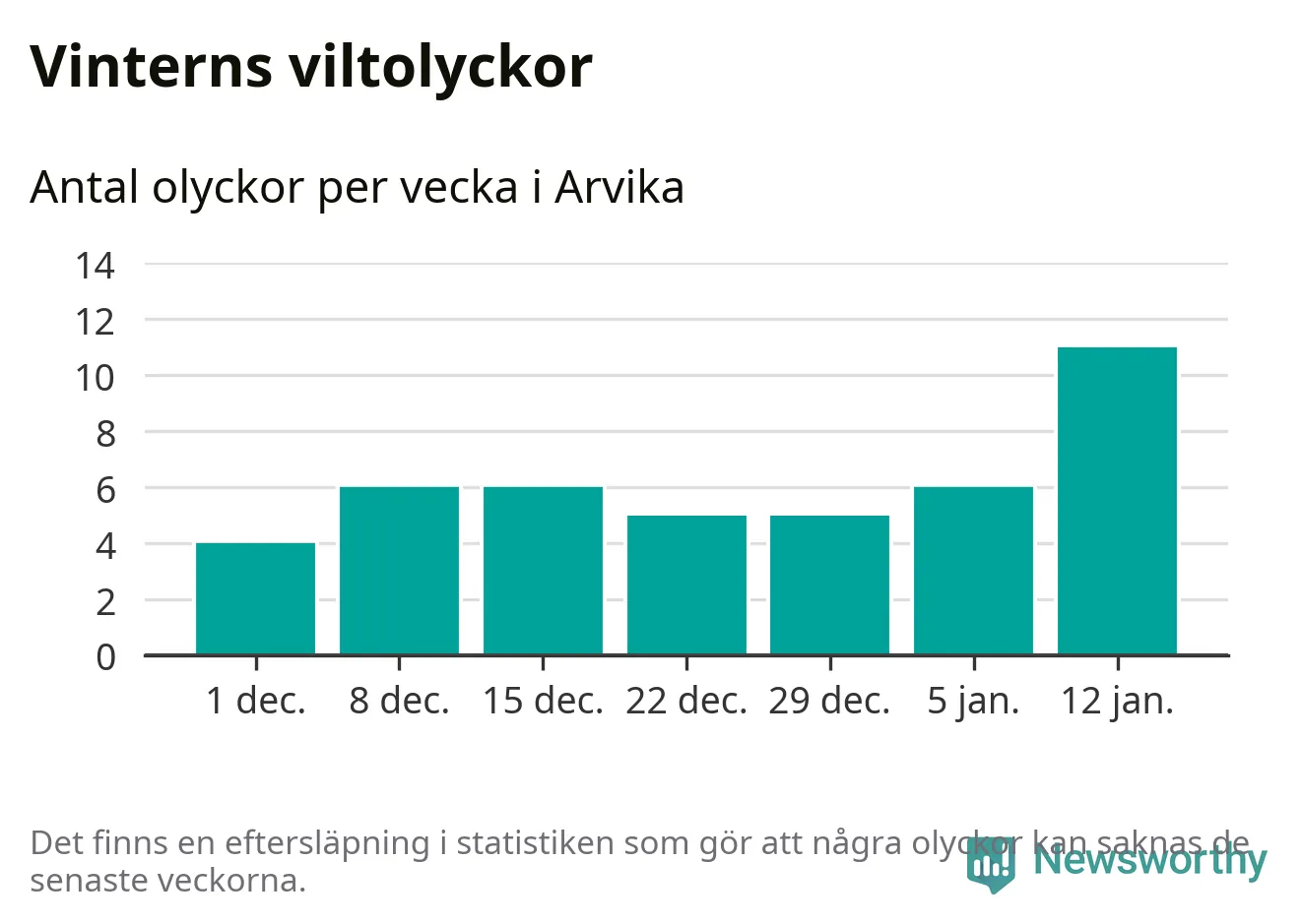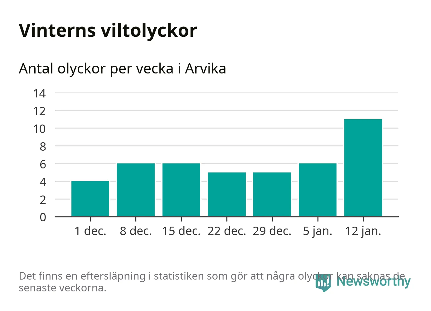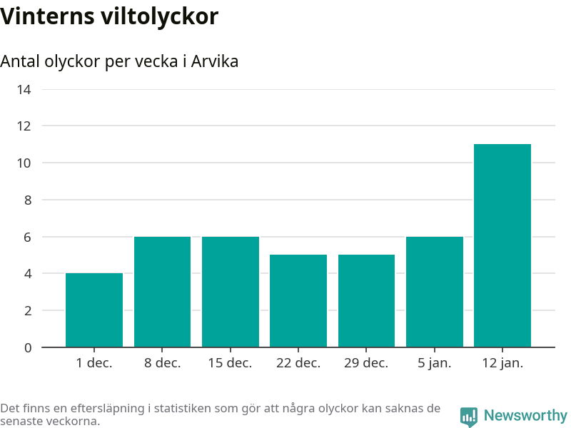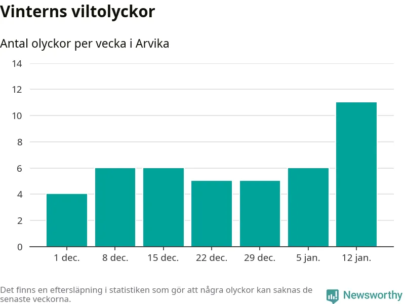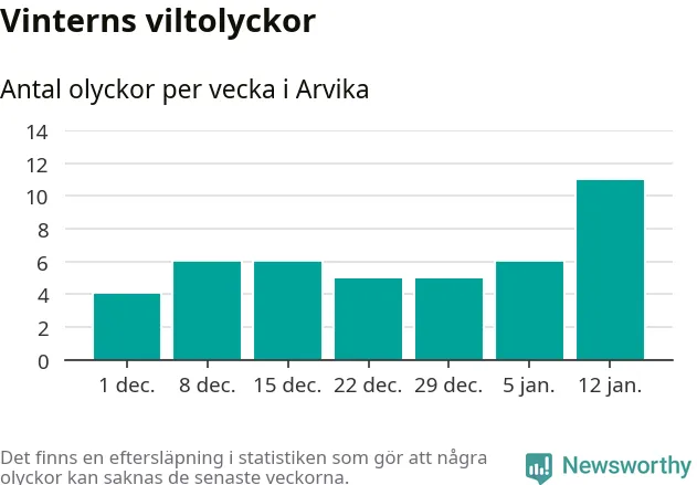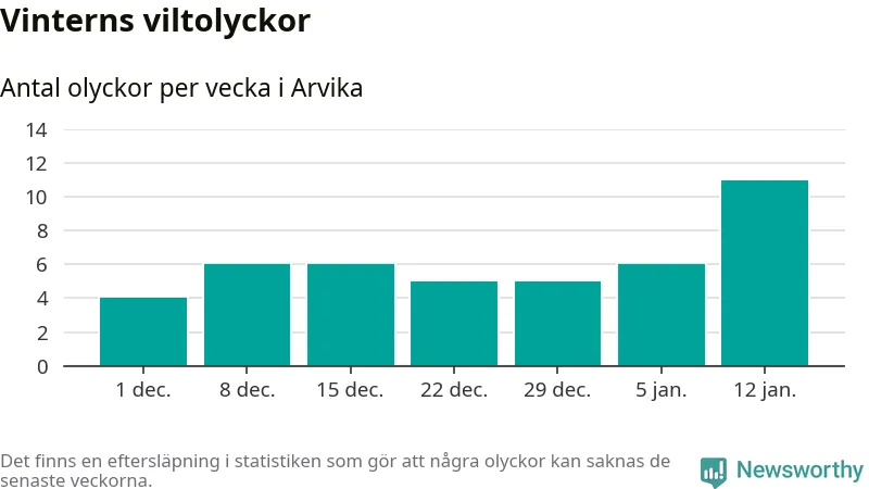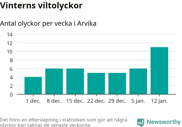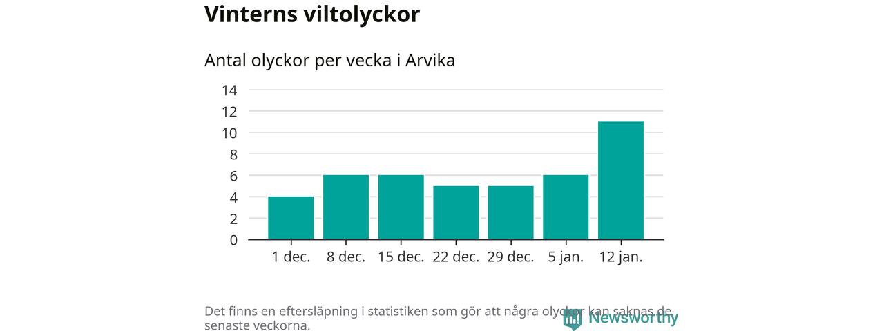Under vecka 3 rapporterades elva viltolyckor in i Arvika kommun. Det är det största antalet på en vecka den här vintern.