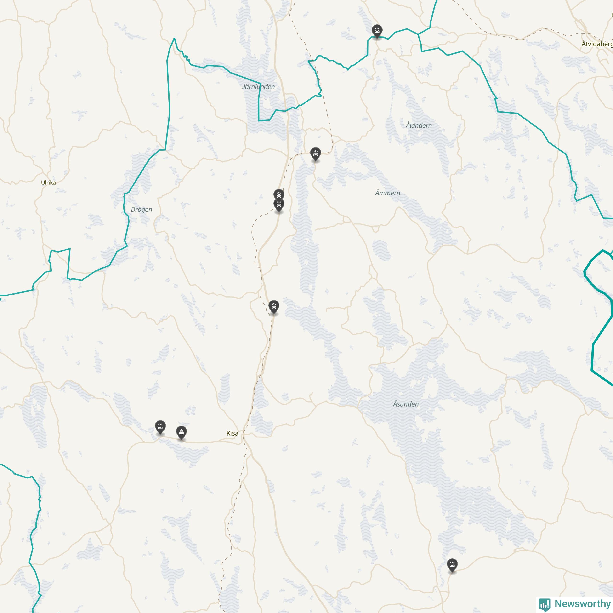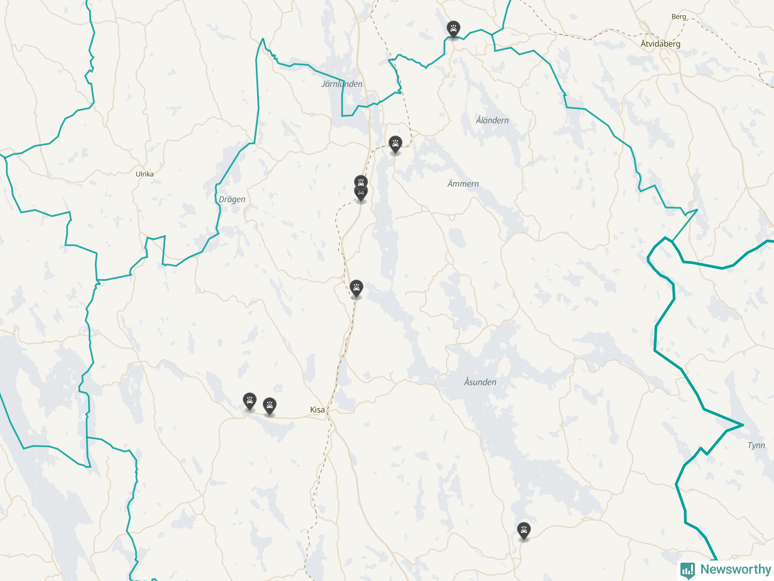 Karta över viltolyckor i Kinda kommun