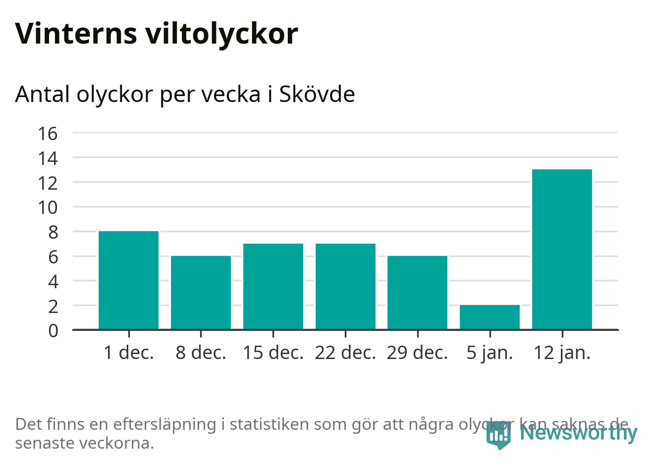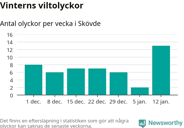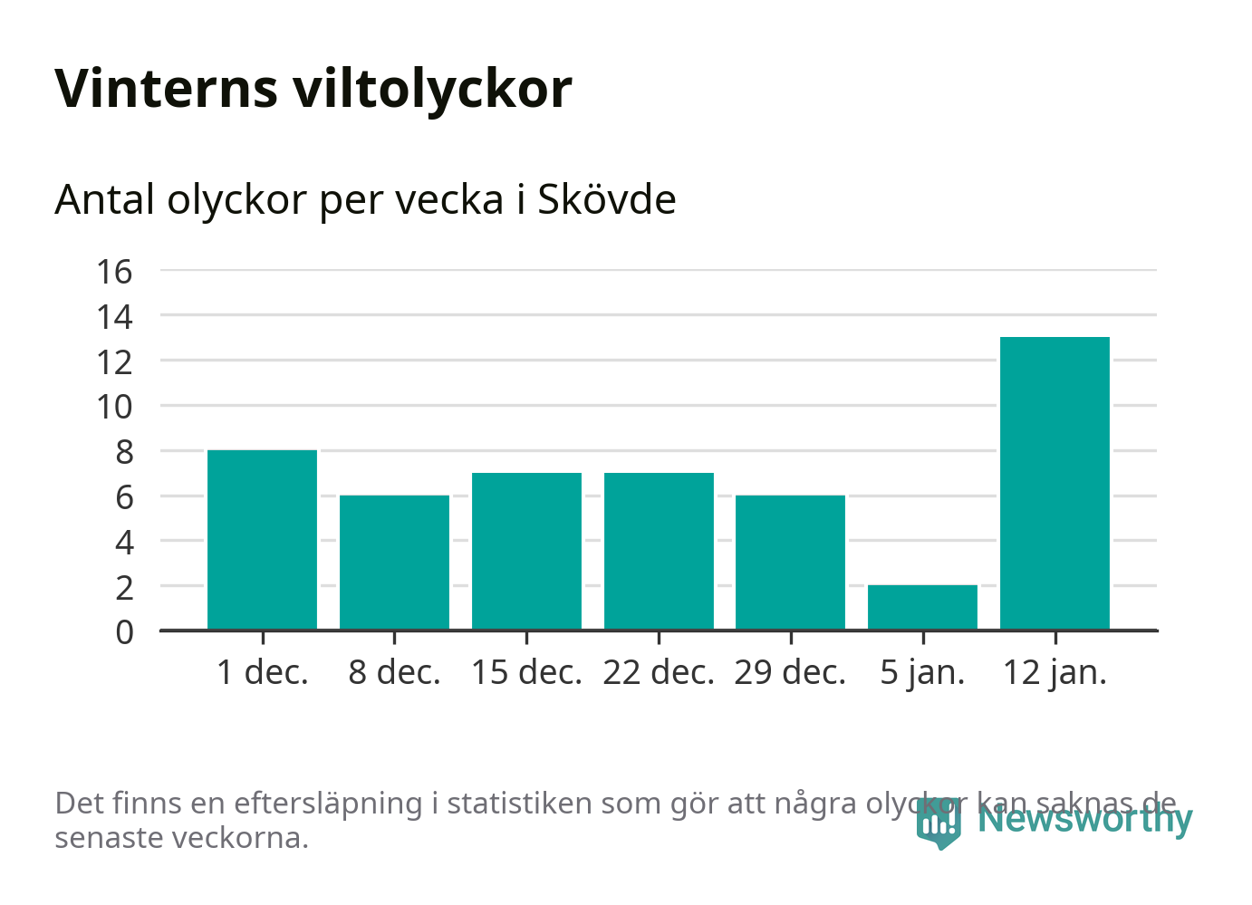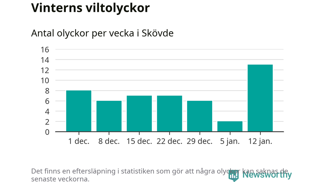 Under vecka 3 rapporterades 13 viltolyckor in i Skövde kommun. Det är det största antalet på en vecka den här vintern.