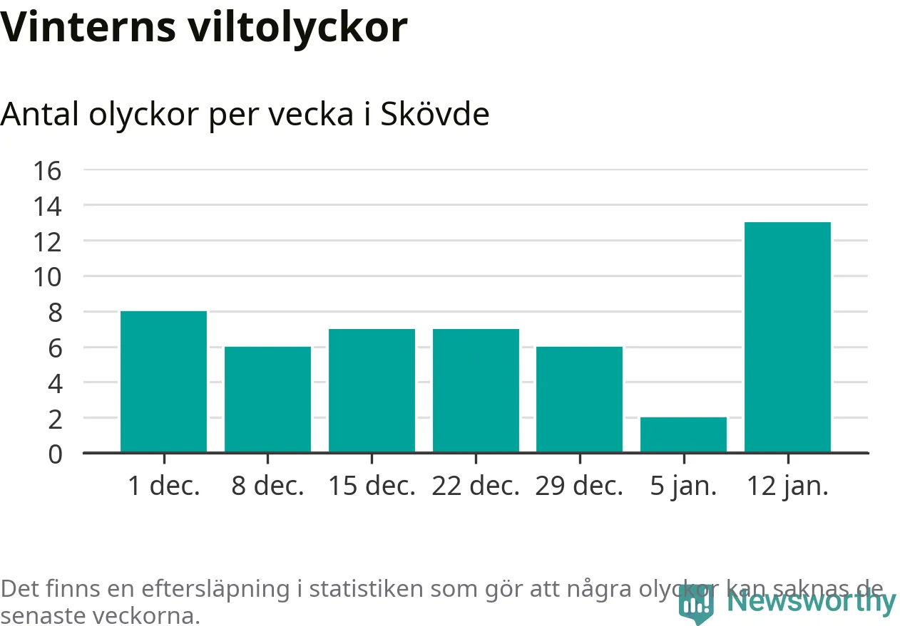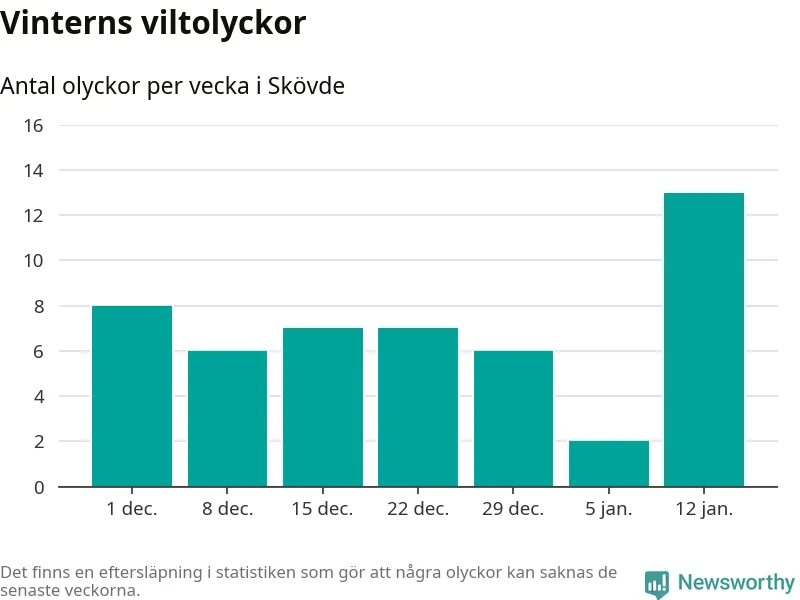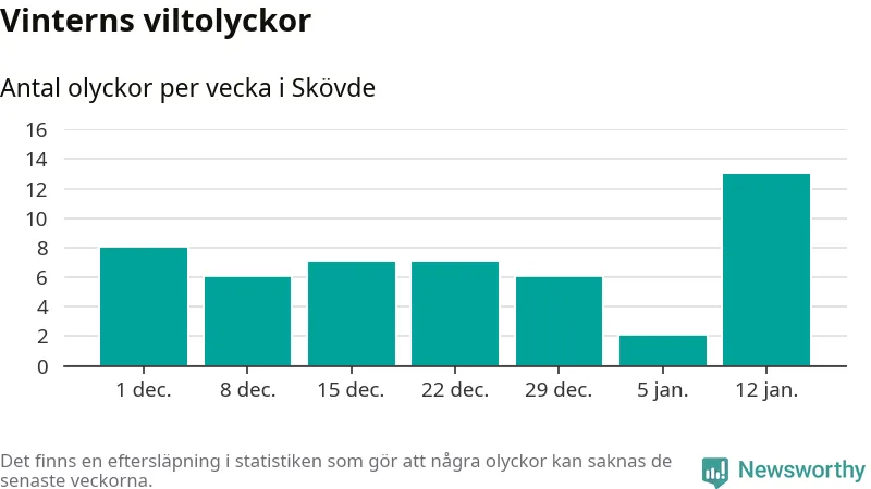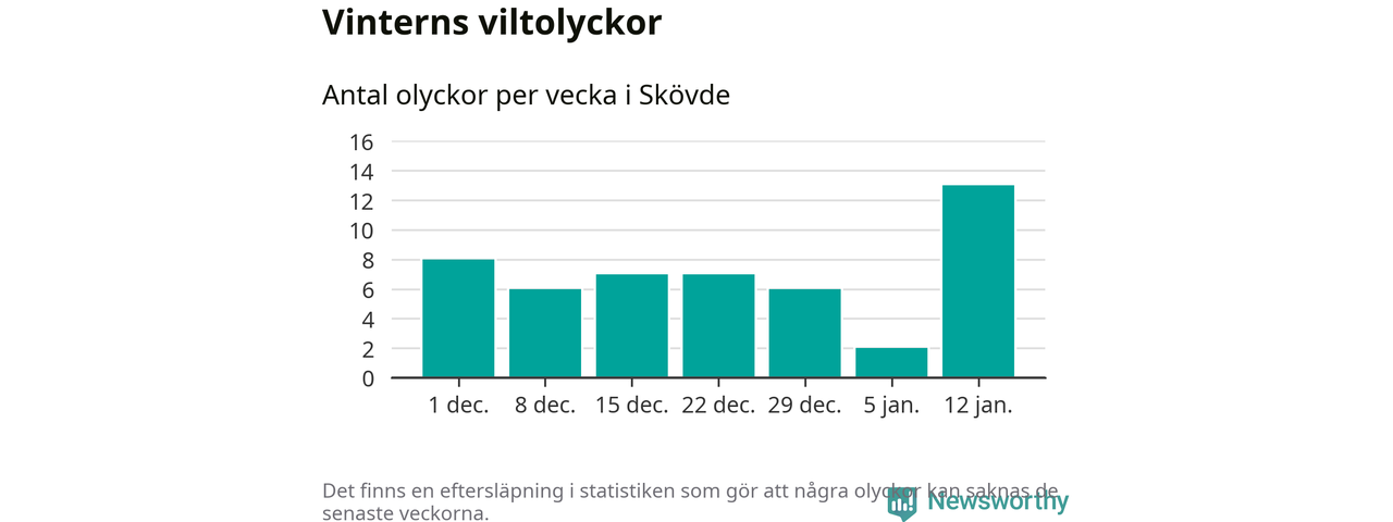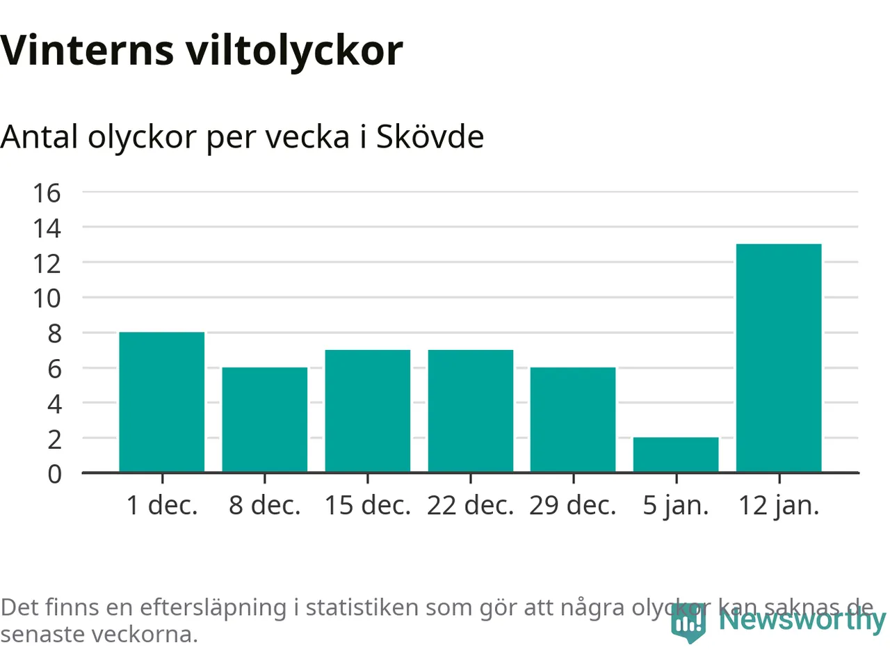 Under vecka 3 rapporterades 13 viltolyckor in i Skövde kommun. Det är det största antalet på en vecka den här vintern.