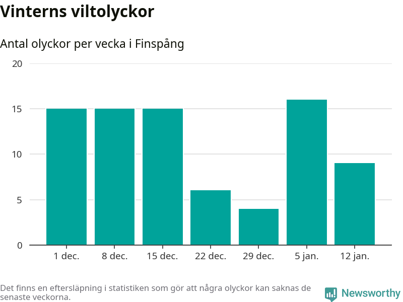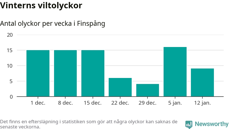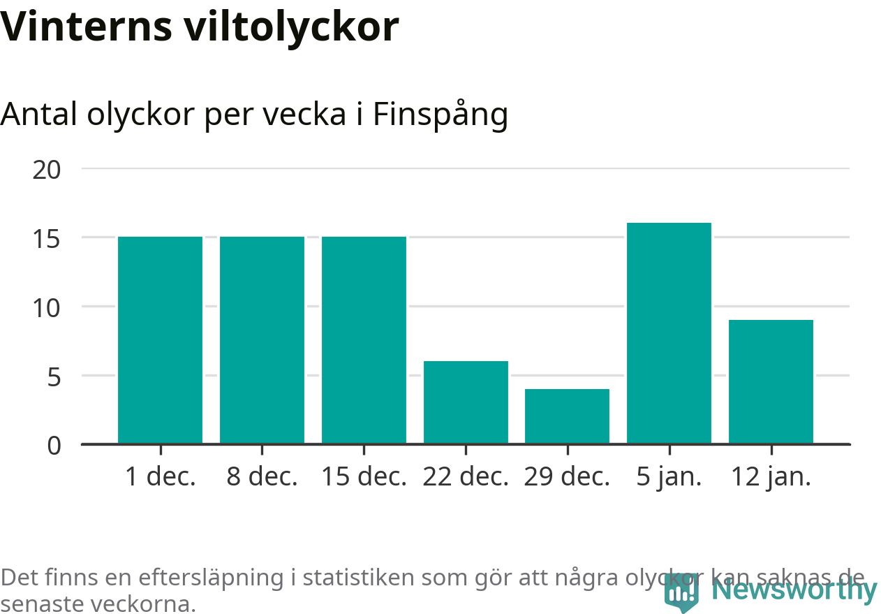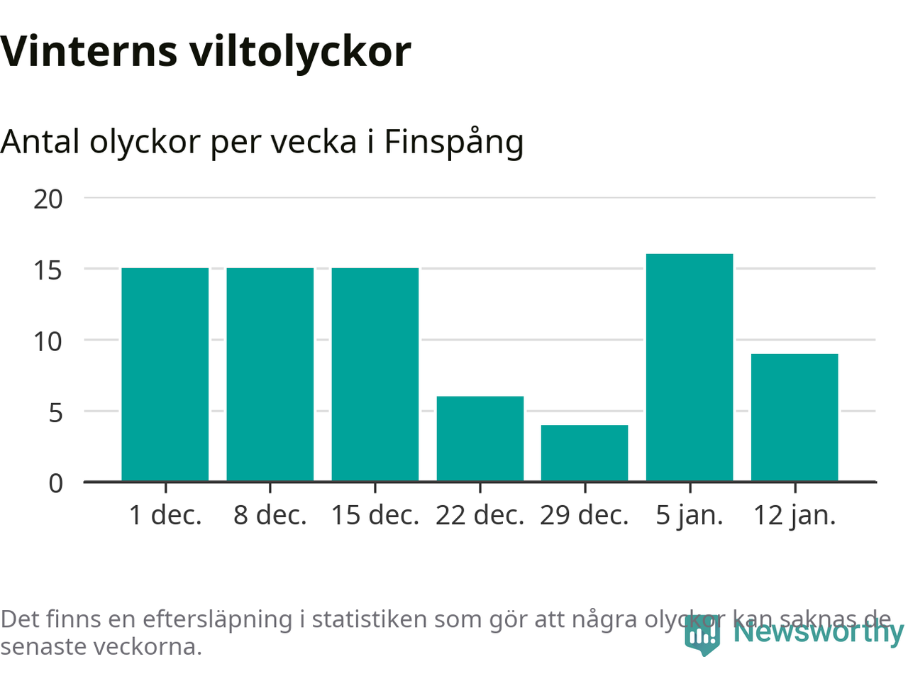 Under vecka 3 rapporterades nio viltolyckor in i Finspångs kommun. Därmed har det inträffat fler viltolyckor hittills den här vintern, än det brukar göra en hel genomsnittlig vinter.