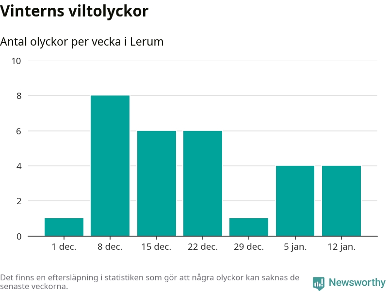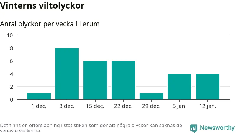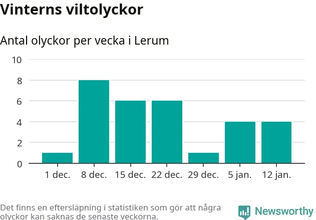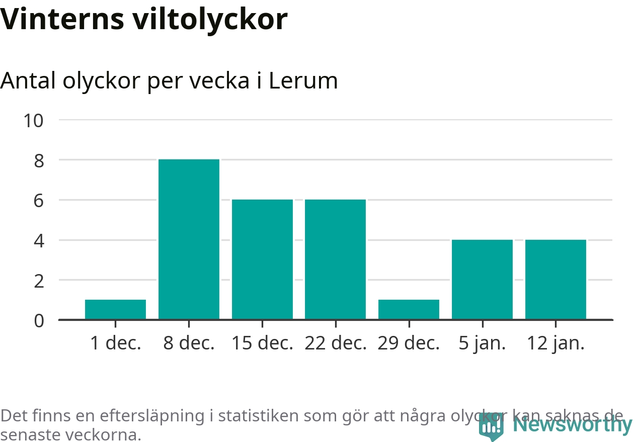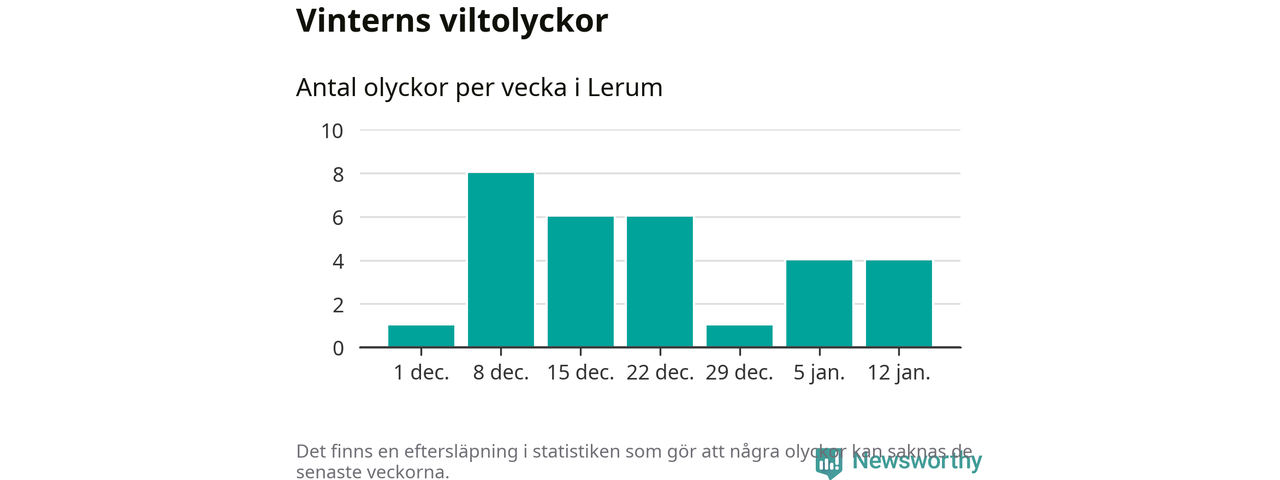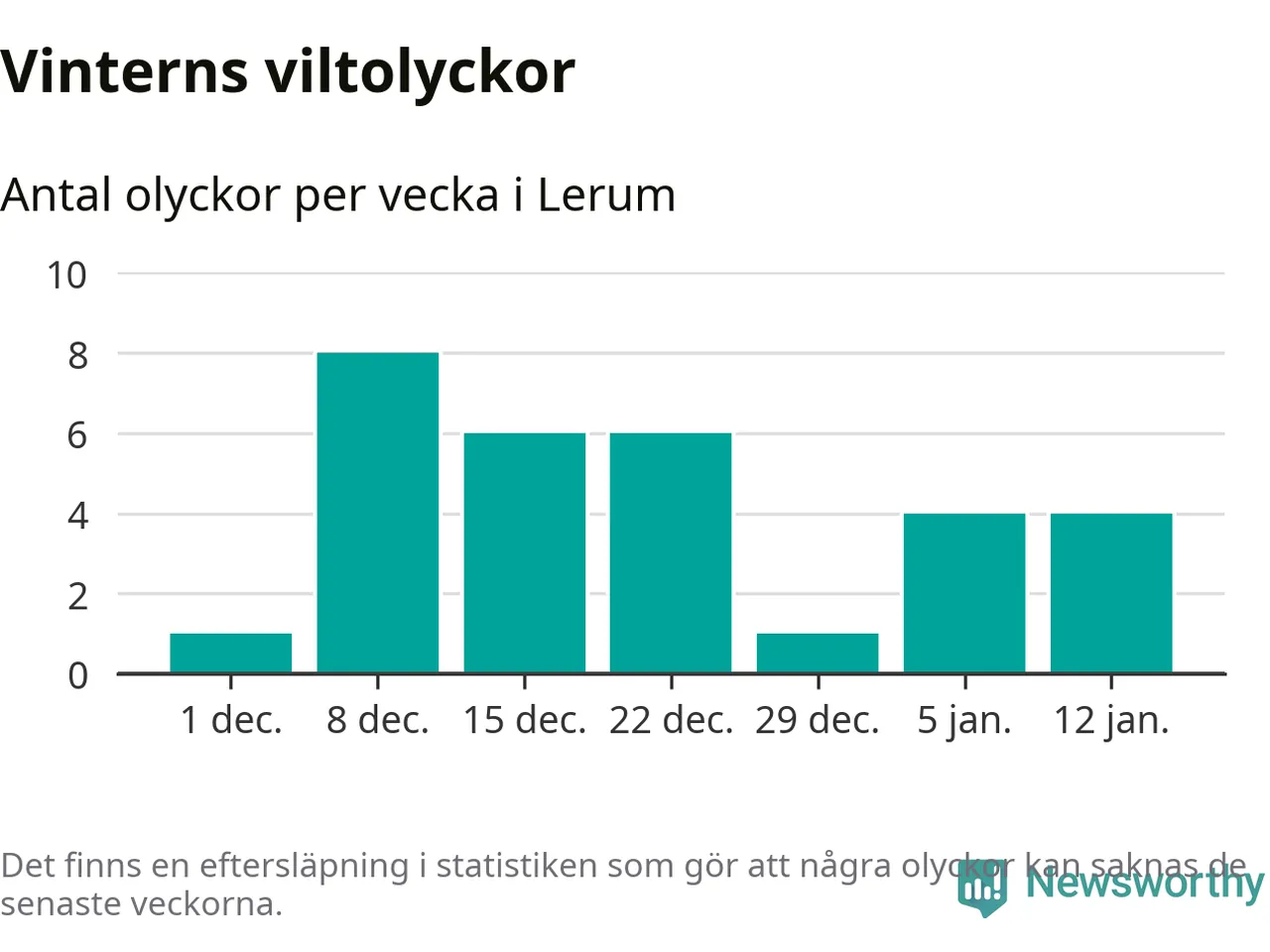 Under vecka 3 rapporterades fyra viltolyckor in i Lerums kommun. Därmed har det inträffat fler viltolyckor hittills den här vintern, än det brukar göra en hel genomsnittlig vinter.