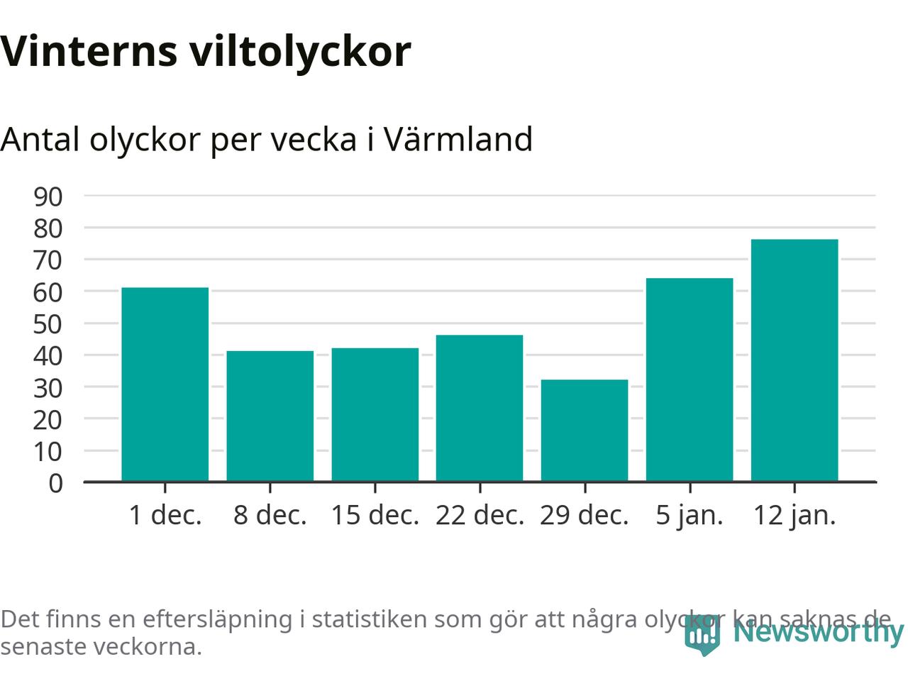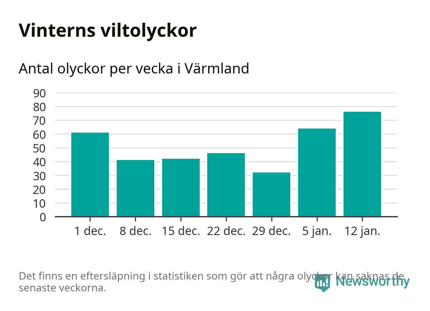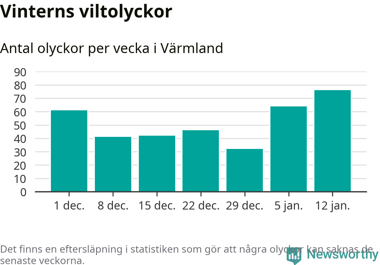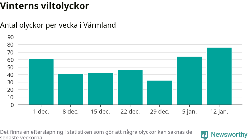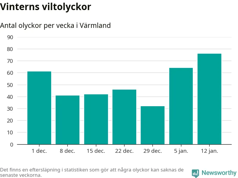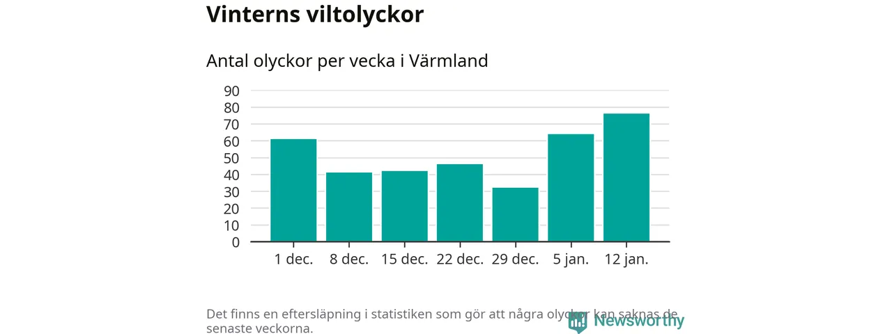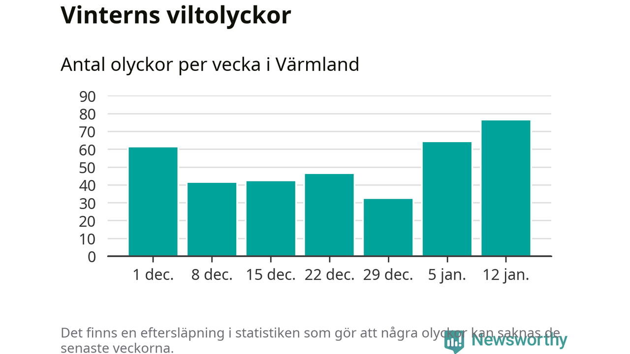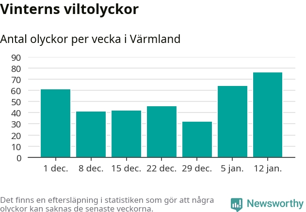 Under vecka 3 rapporterades 76 viltolyckor in i Värmlands län. Det är det största antalet på en vecka den här vintern.