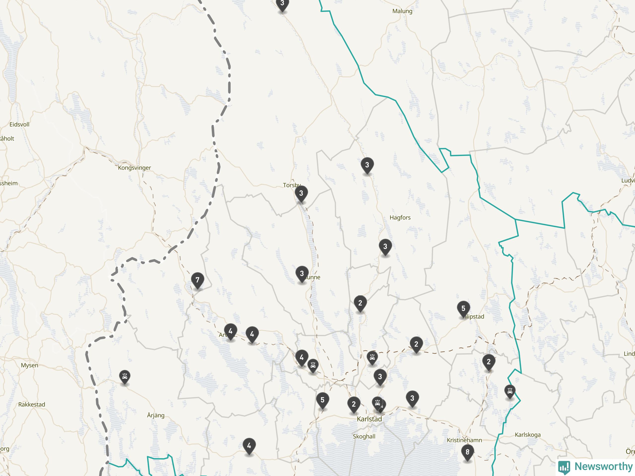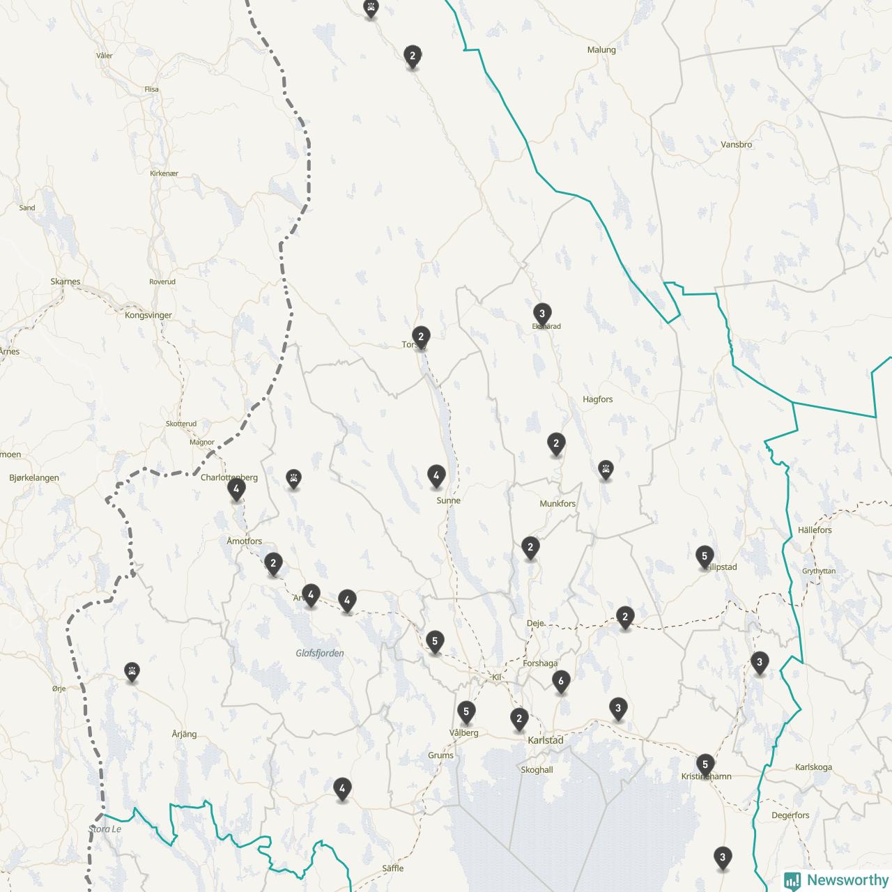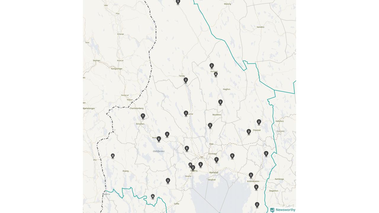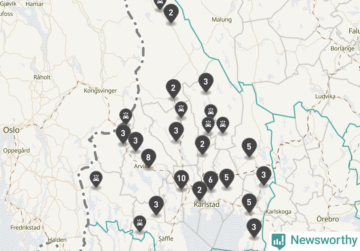 Karta över viltolyckor i Värmlands län