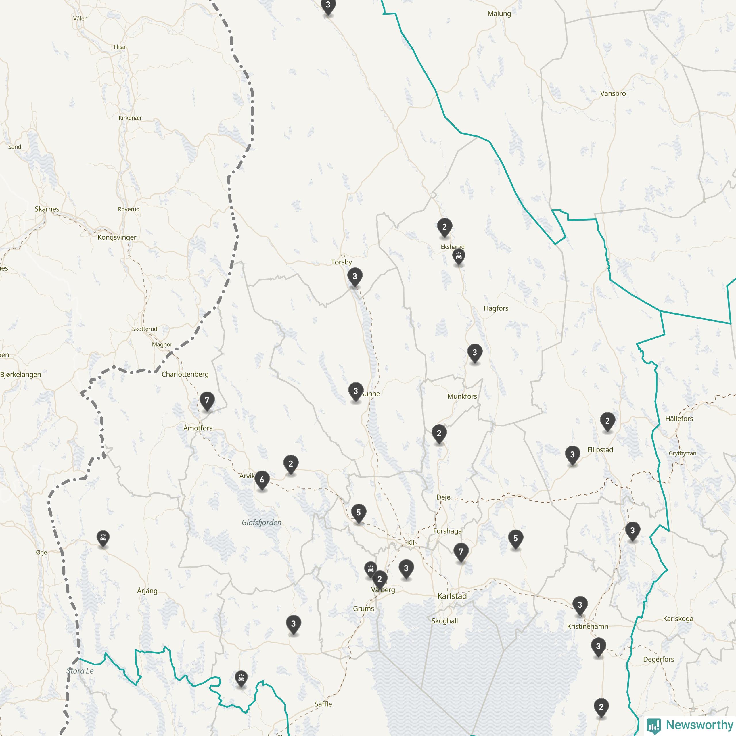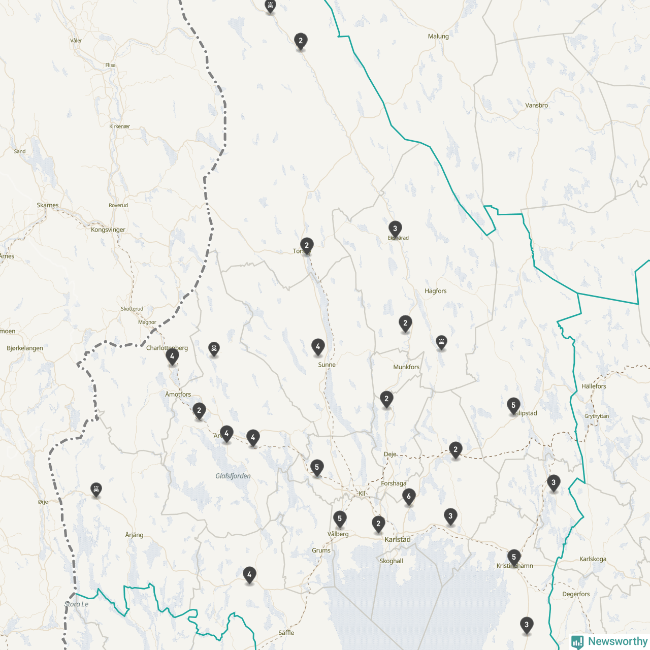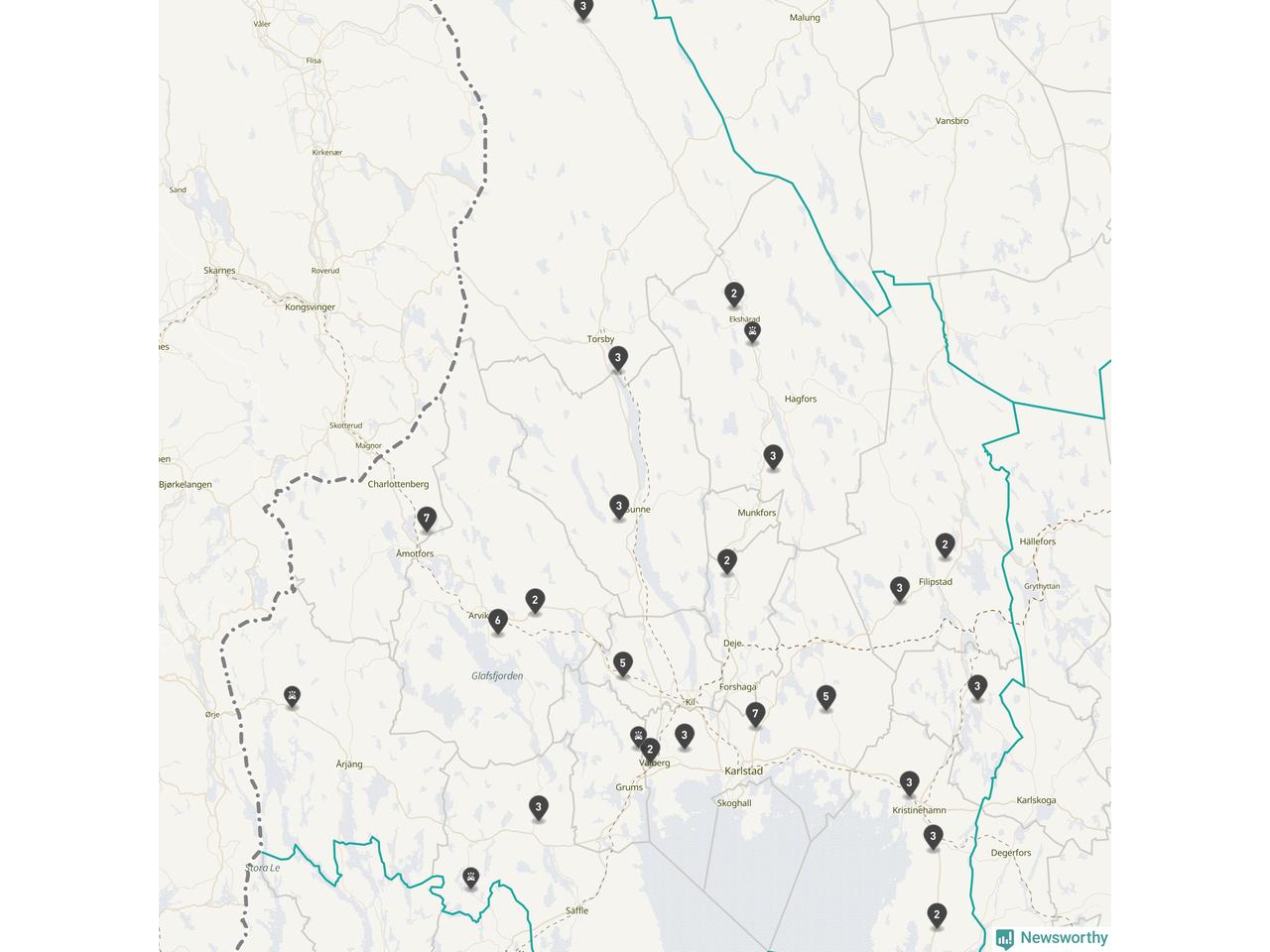 Karta över viltolyckor i Värmlands län