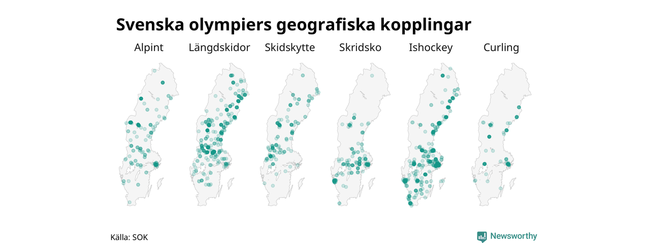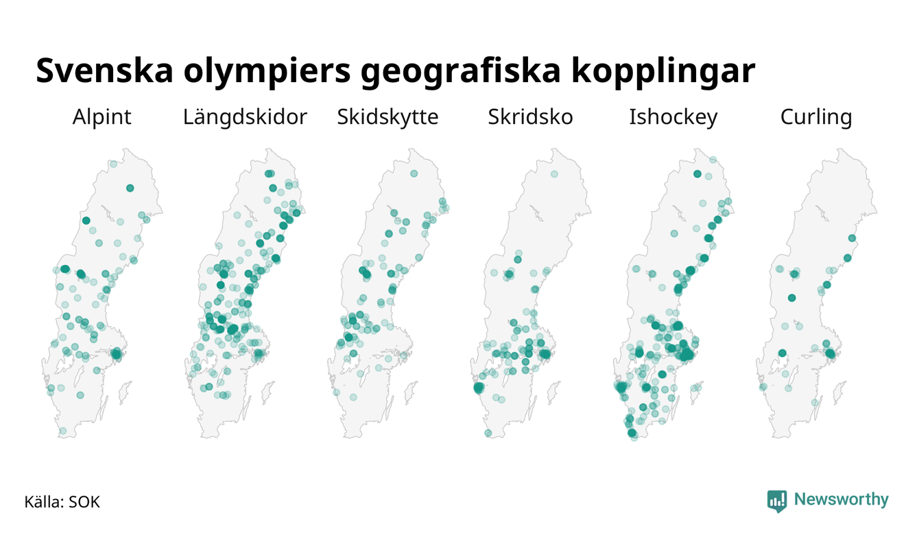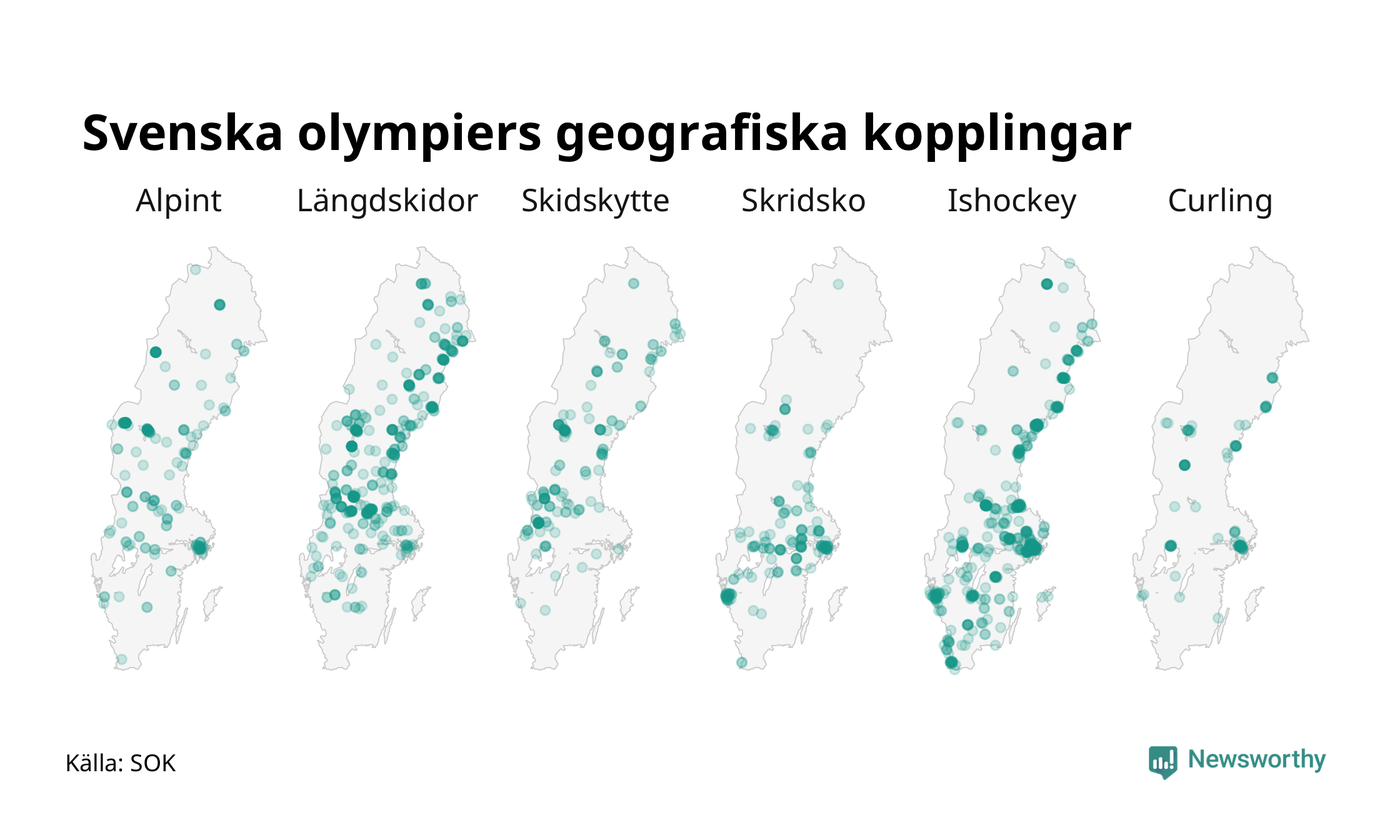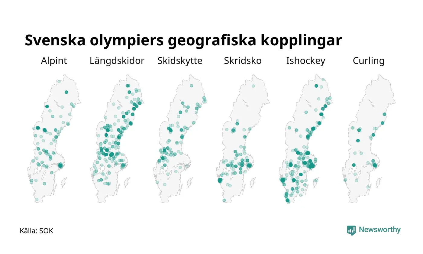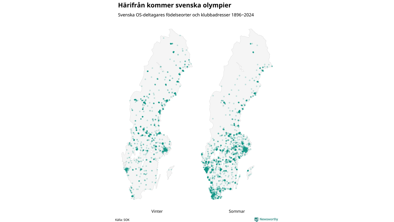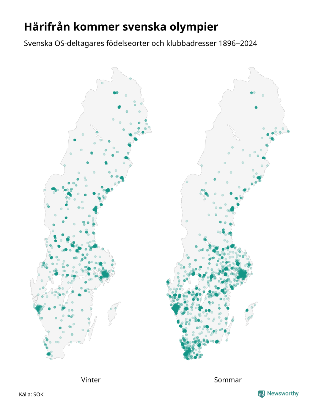 Men hur många av alla svenska olympier har koppling till Katrineholm? Newsworthy har gått igenom samtliga svenska OS-deltagare och, baserat på födelseort och klubbtillhörighet vid de aktuella spelen, kopplat dem till 283 svenska kommuner.