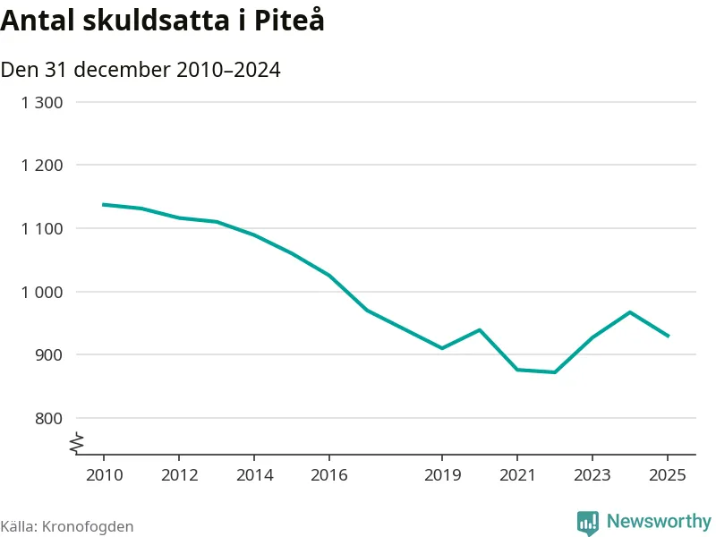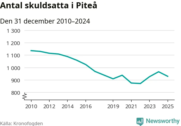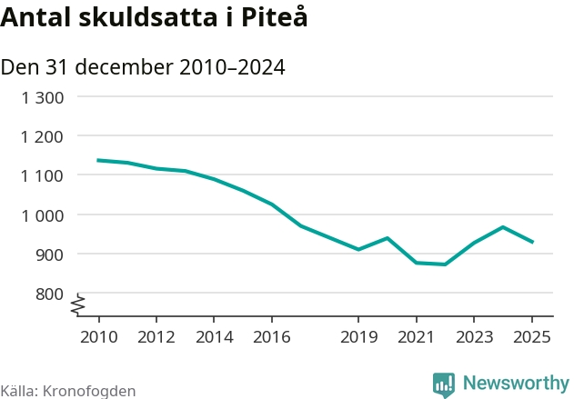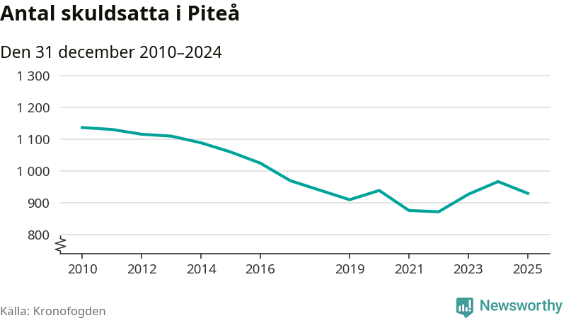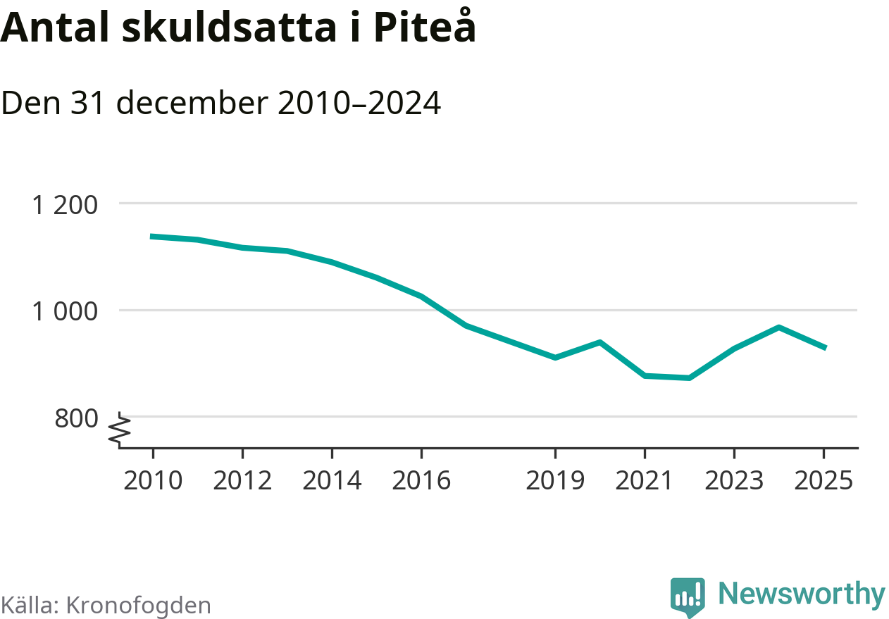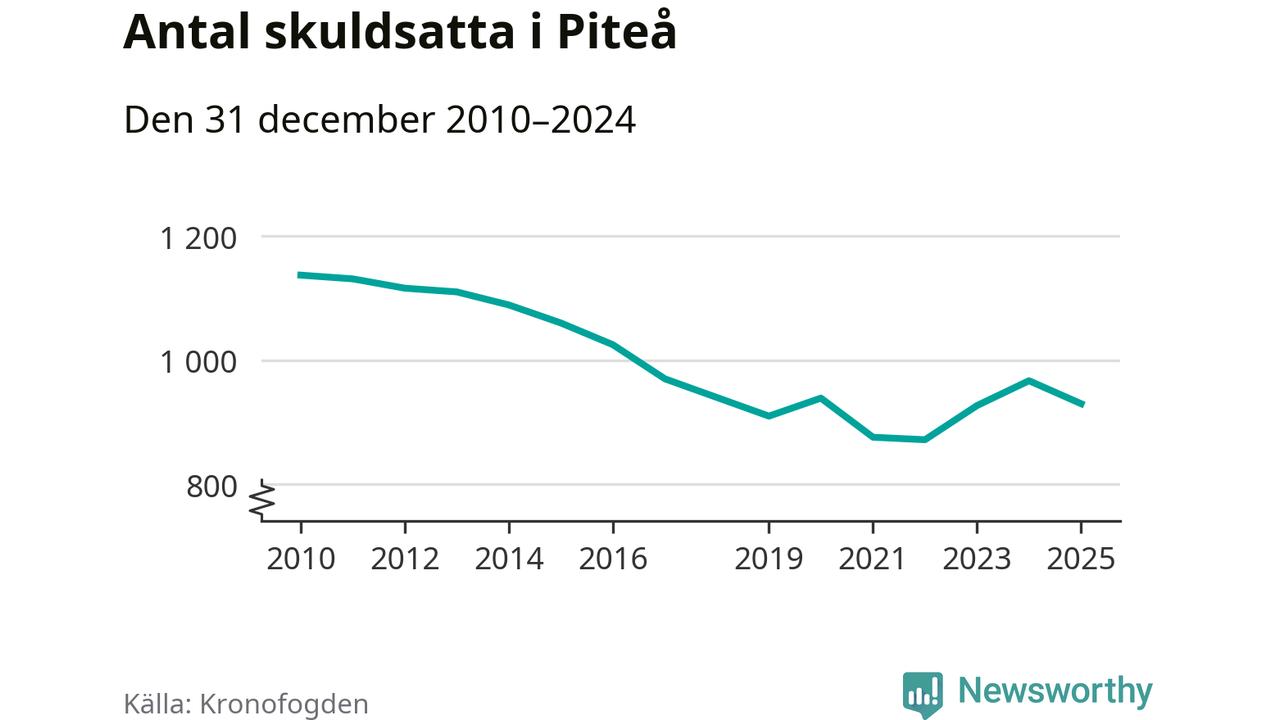 Antalet Piteå­bor hos Kronofogden minskade i fjol. Vid årskiftet var 930 invånare i kommunen skyldiga totalt 356,7 miljoner kronor. Det är en minskning med 37 personer – eller 4 procent – jämfört med året innan.