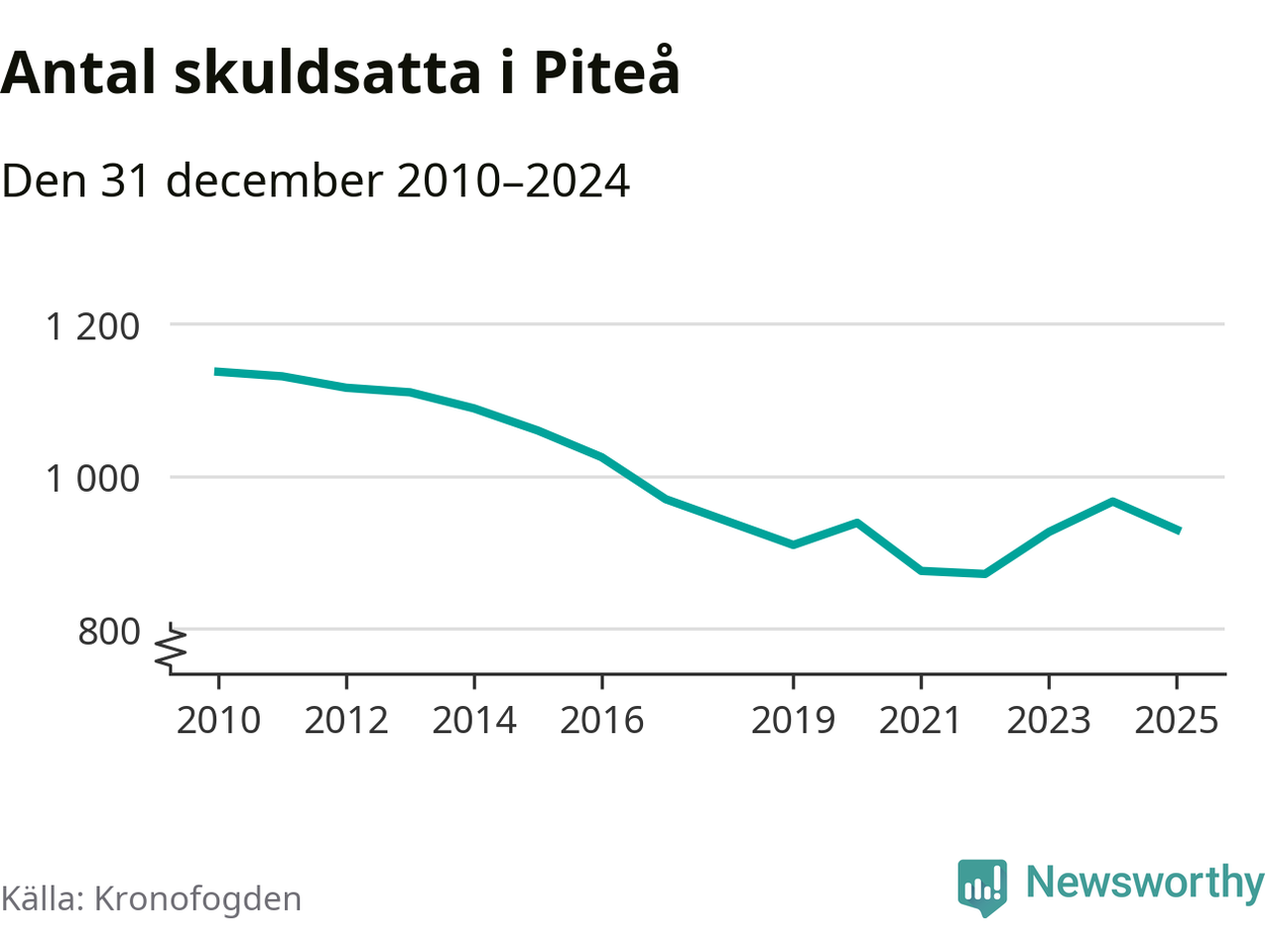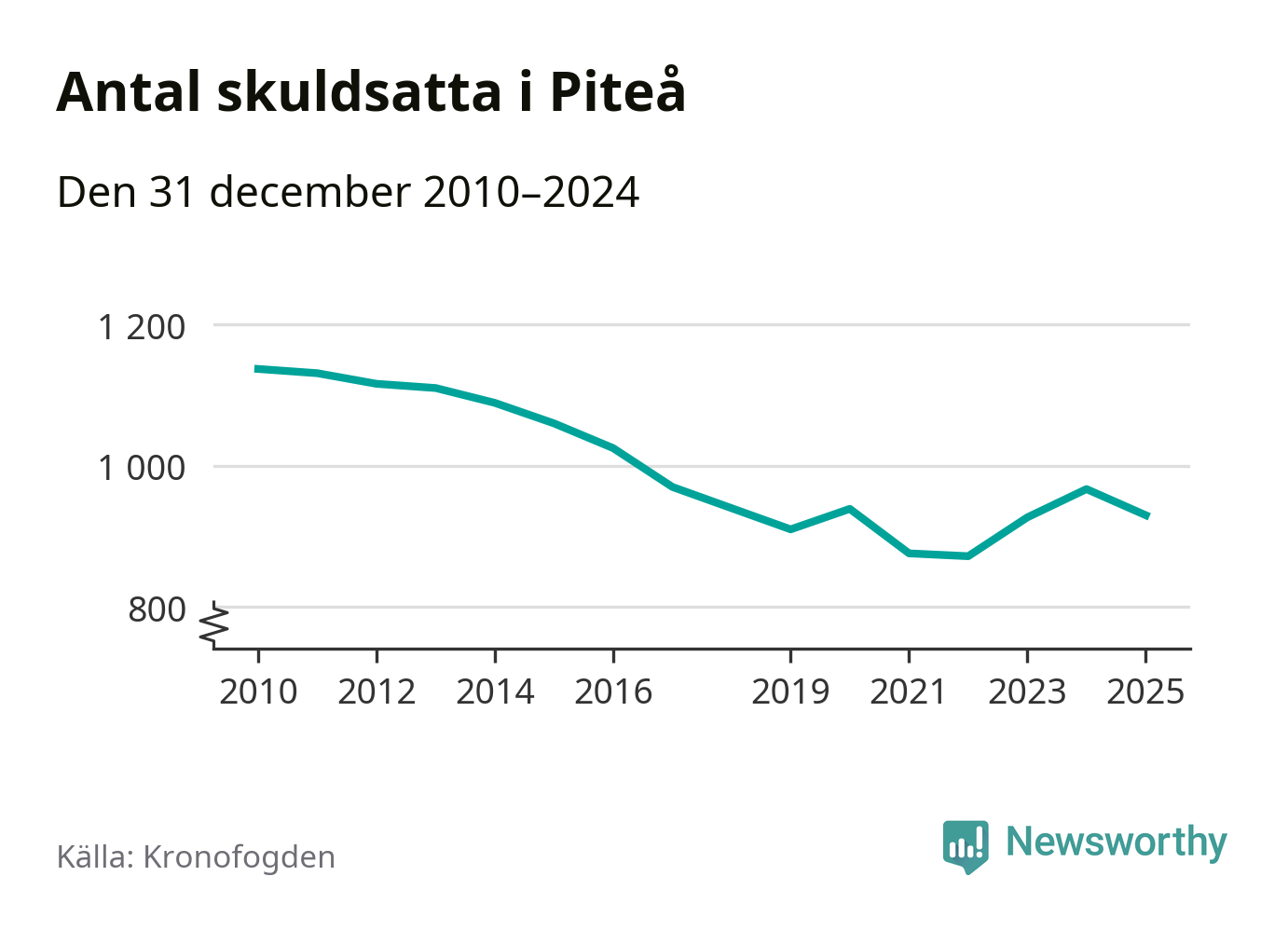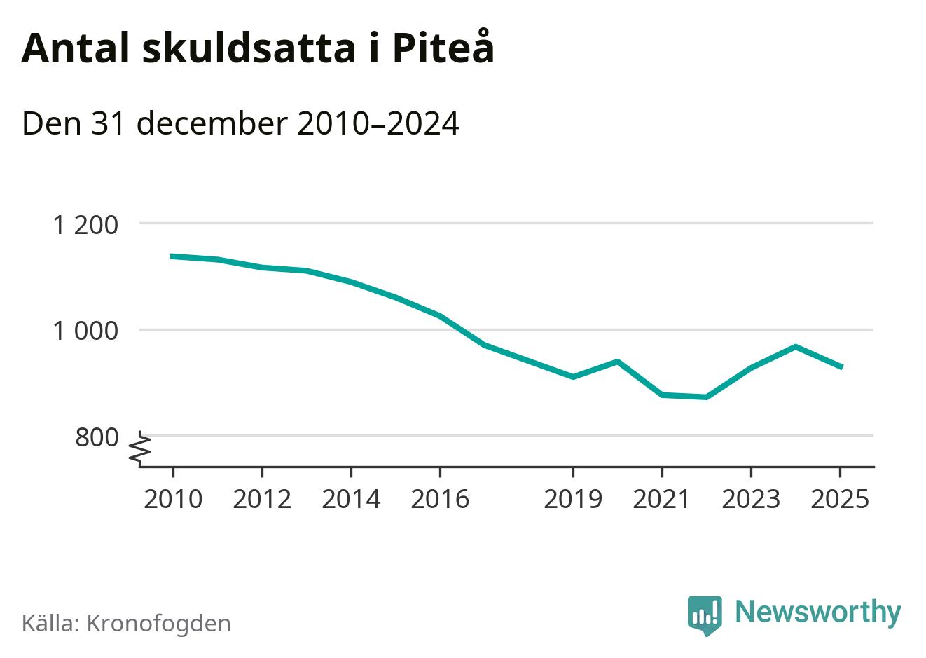 Antalet Piteå­bor hos Kronofogden minskade i fjol. Vid årskiftet var 930 invånare i kommunen skyldiga totalt 356,7 miljoner kronor. Det är en minskning med 37 personer – eller 4 procent – jämfört med året innan.