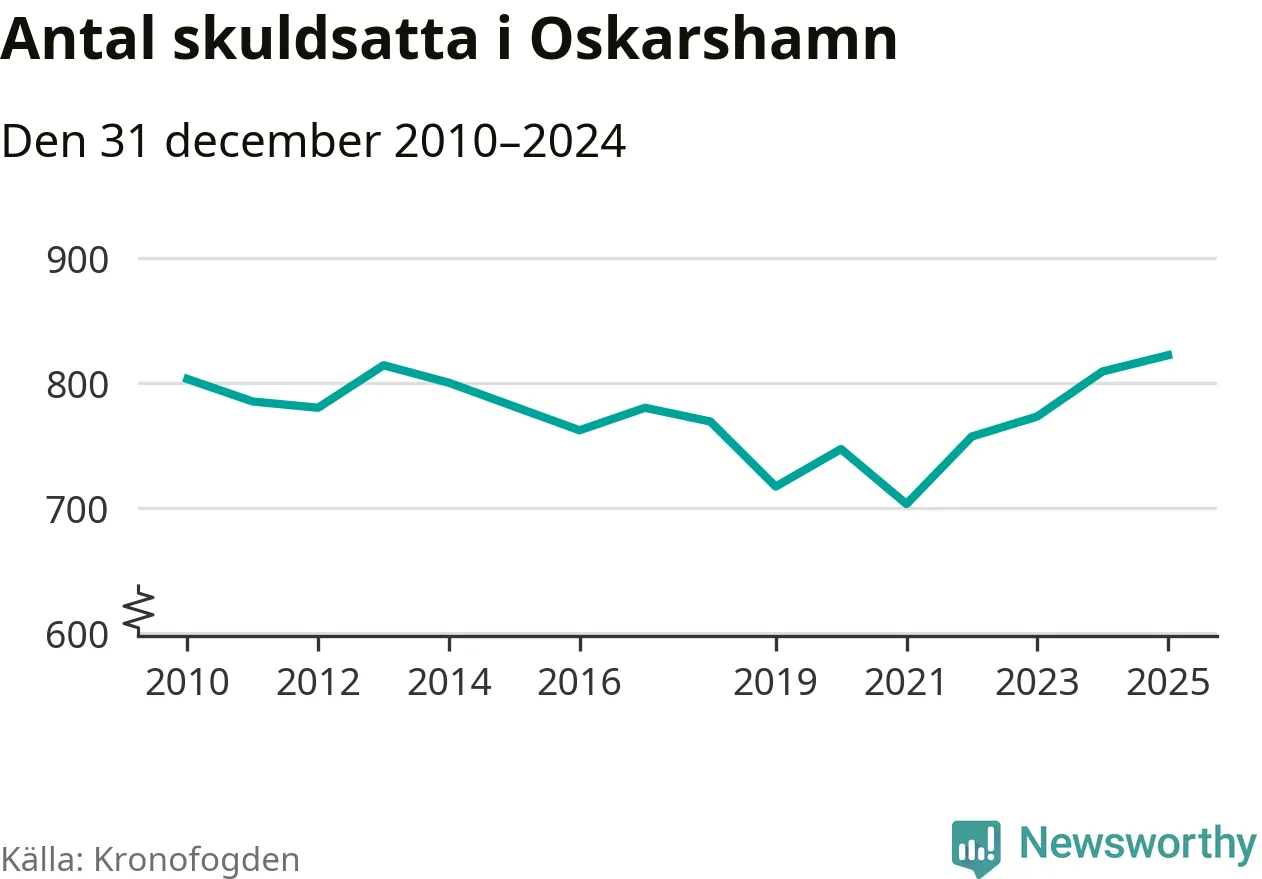 Inte sedan åtminstone 2010 har så många Oskarshamnsbor hamnat hos Kronofogden. Vid årskiftet var 822 invånare i kommunen skyldiga totalt 237 miljoner kronor. Det är en ökning med 13 personer – eller 2 procent – jämfört med året innan.