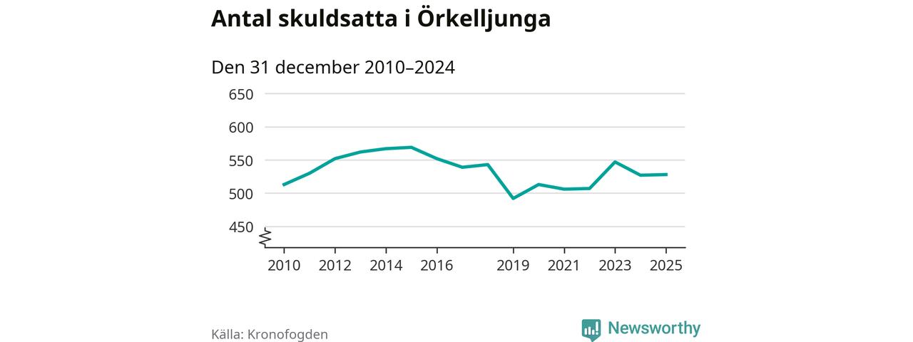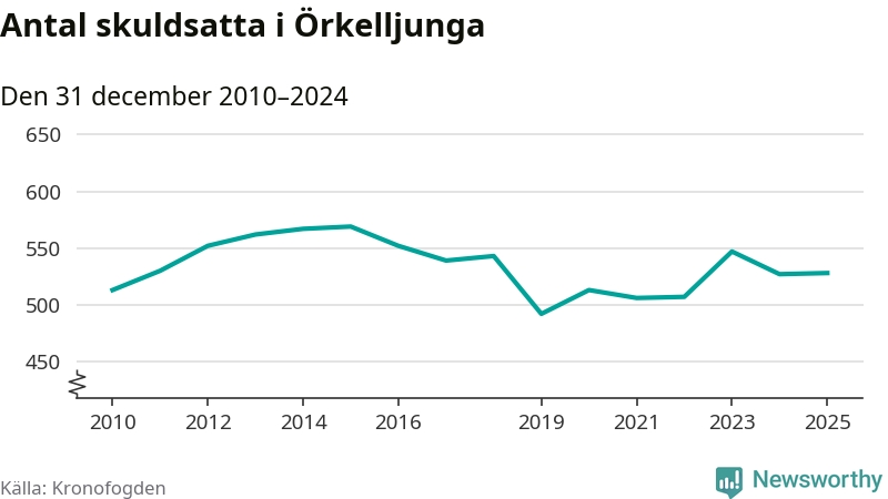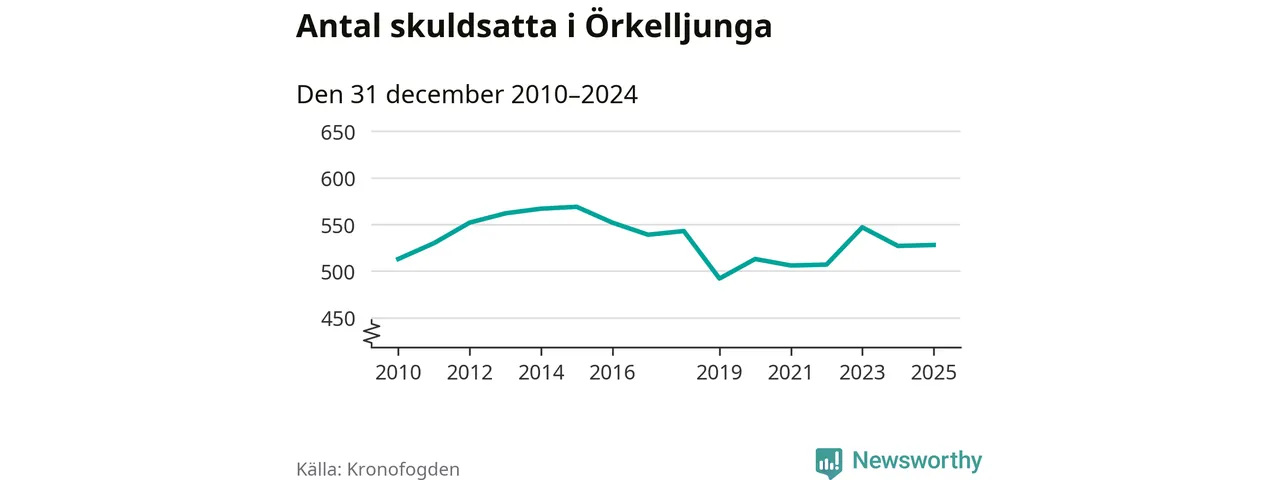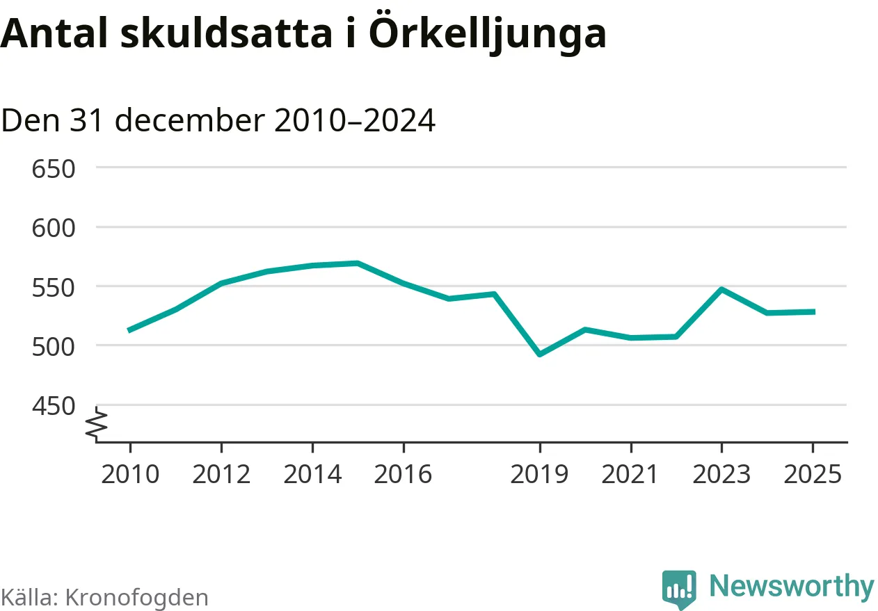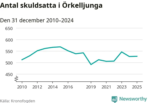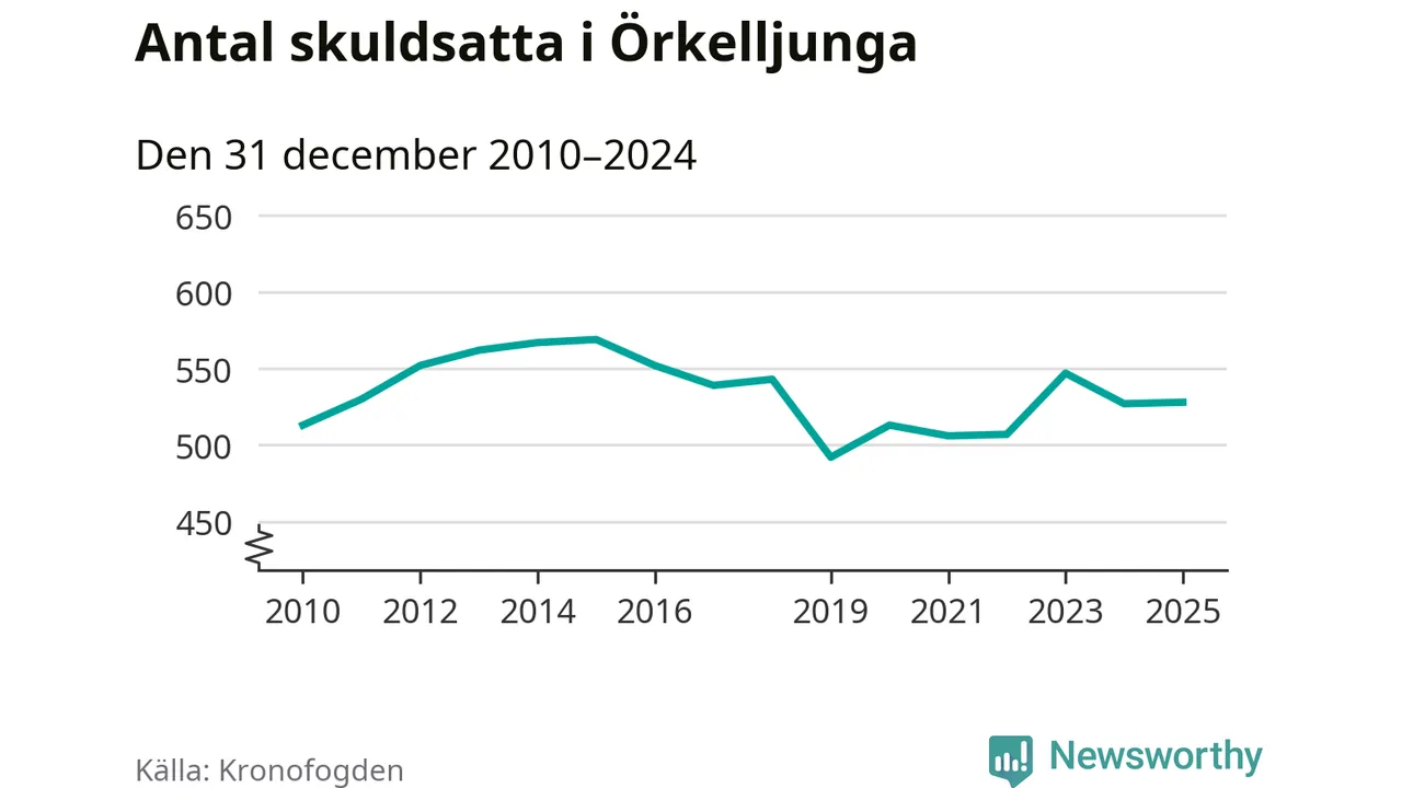 Antalet Örkelljungabor hos Kronofogden är relativt oförändrat jämfört med i fjol. Vid årskiftet var 528 invånare i kommunen skyldiga totalt 174 miljoner kronor.