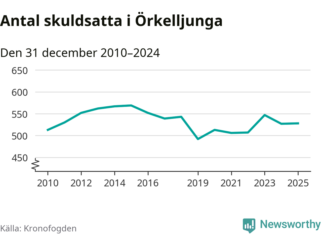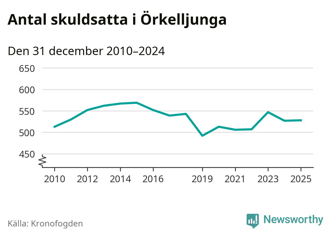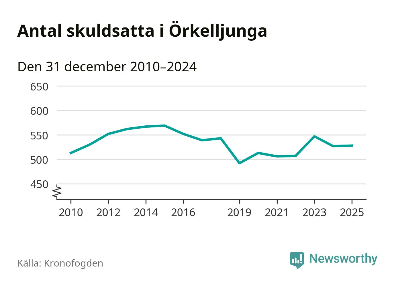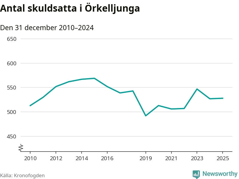 Antalet Örkelljungabor hos Kronofogden är relativt oförändrat jämfört med i fjol. Vid årskiftet var 528 invånare i kommunen skyldiga totalt 174 miljoner kronor.