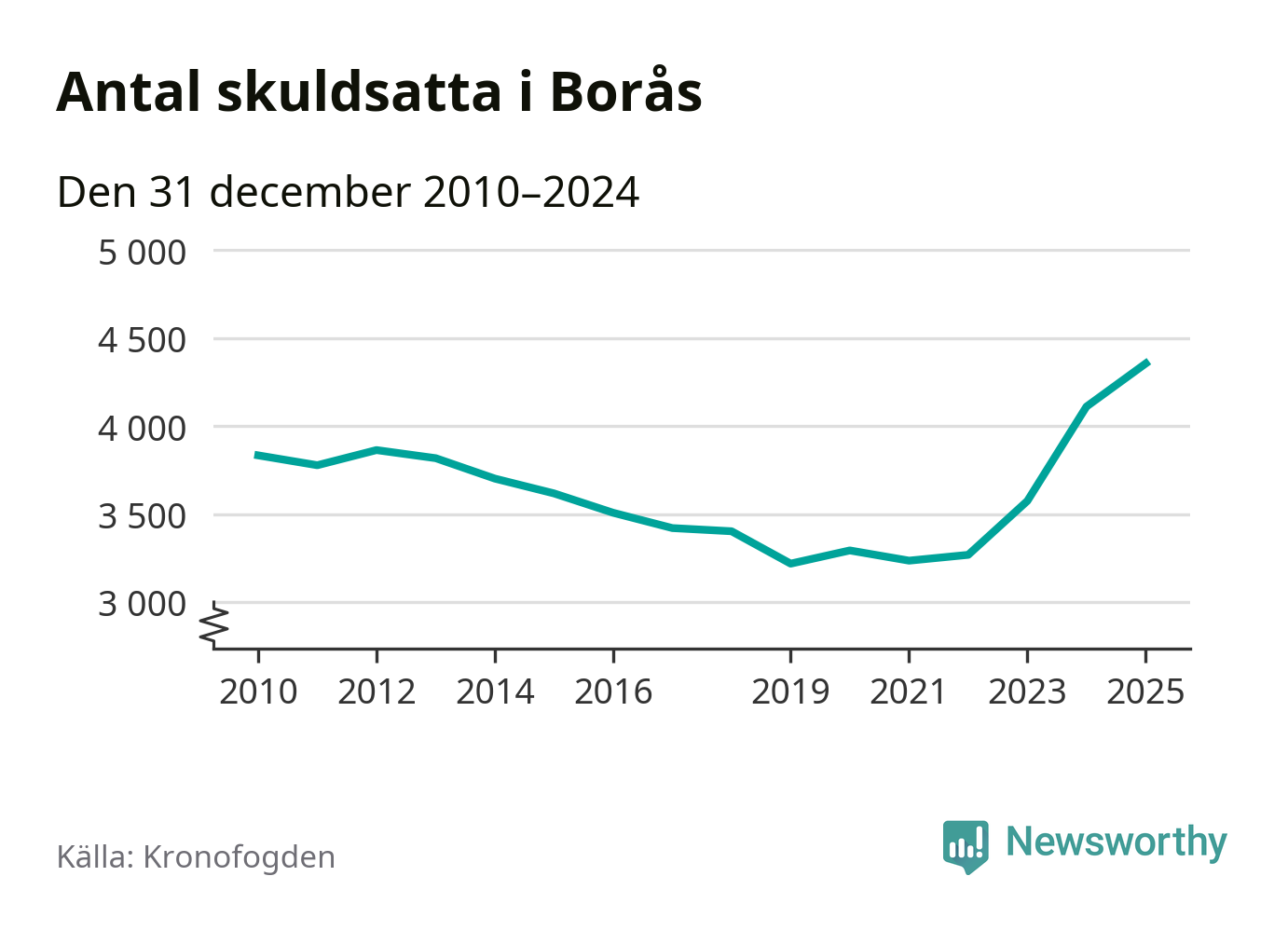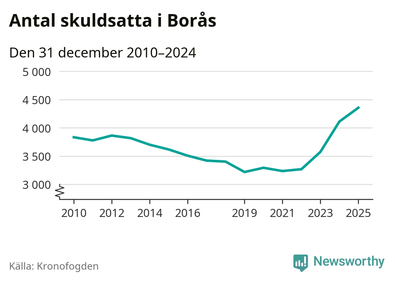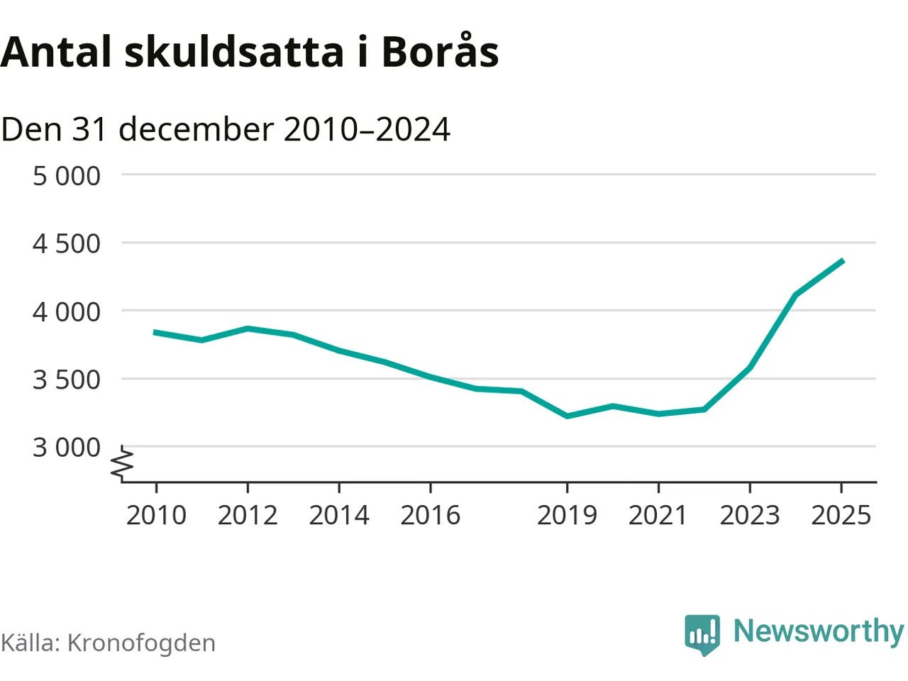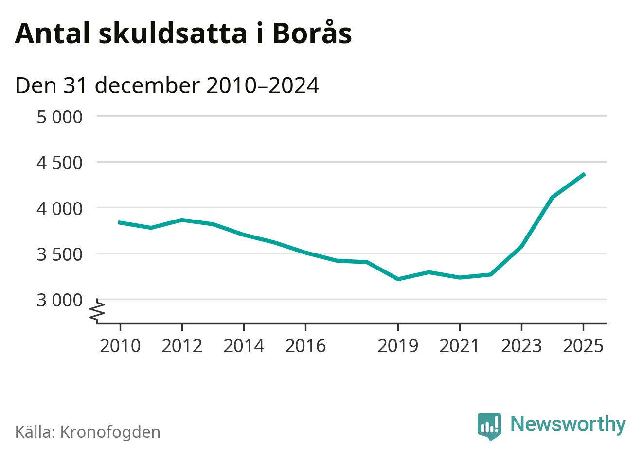 Inte sedan åtminstone 2010 har så många boråsare hamnat hos Kronofogden. Vid årskiftet var 4 355 invånare i kommunen skyldiga totalt 1,3 miljarder kronor. Det är en ökning med 245 personer – eller 6 procent – jämfört med året innan.