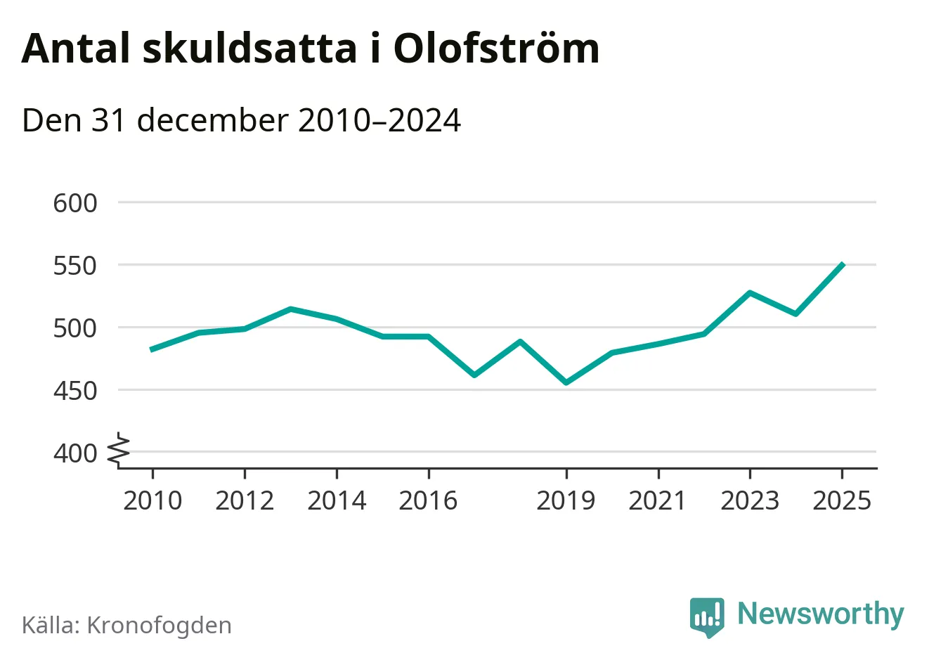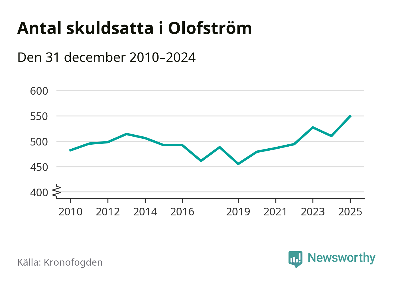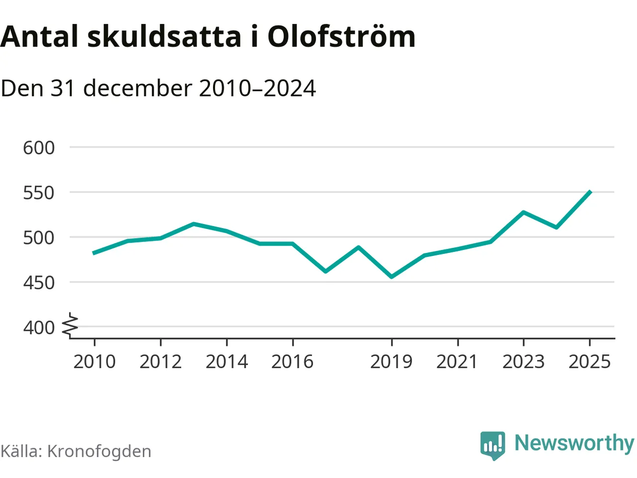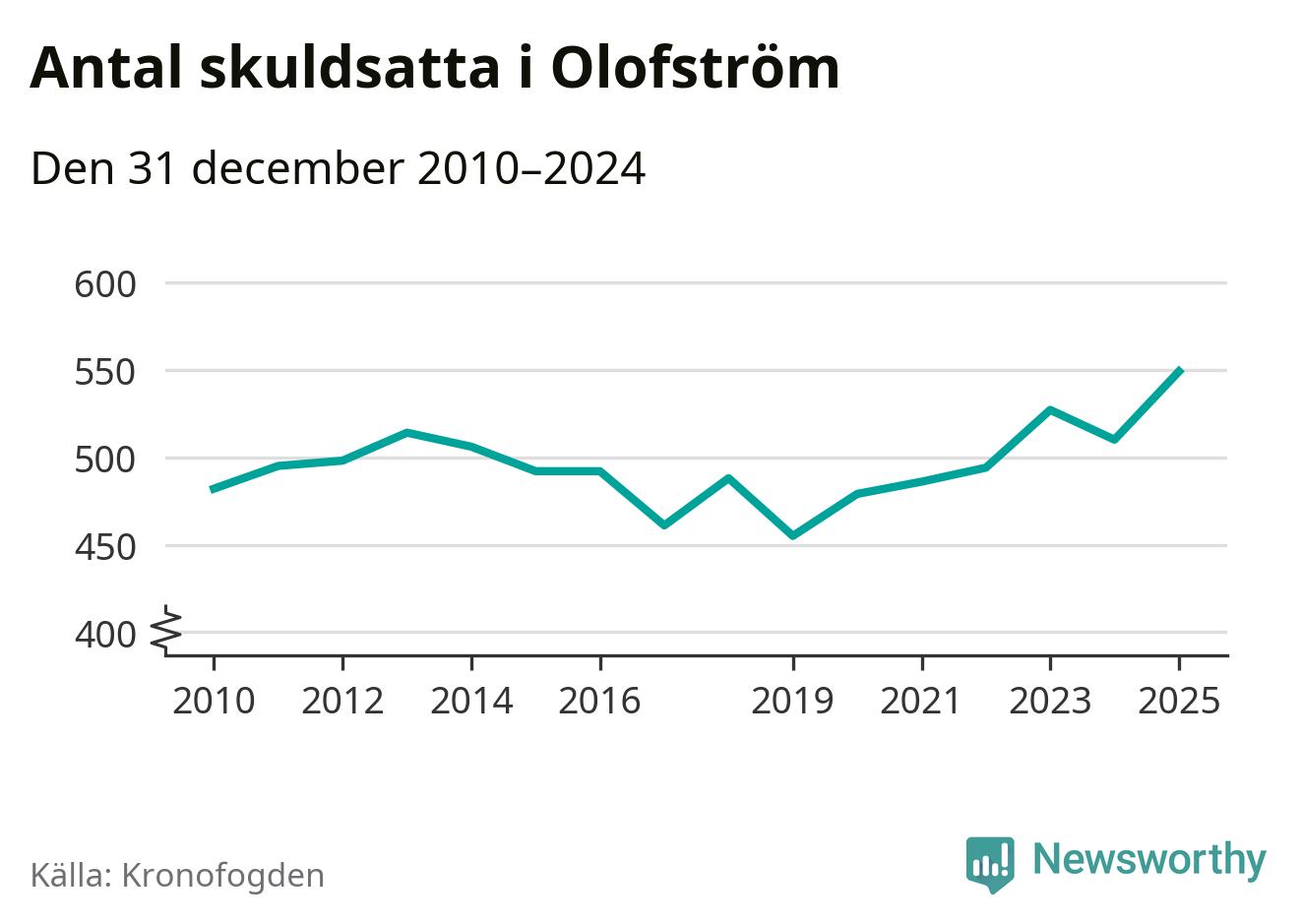 Inte sedan åtminstone 2010 har så många Olofströmsbor hamnat hos Kronofogden. Vid årskiftet var 549 invånare i kommunen skyldiga totalt 235,7 miljoner kronor. Det är en ökning med 39 personer – eller 8 procent – jämfört med året innan.