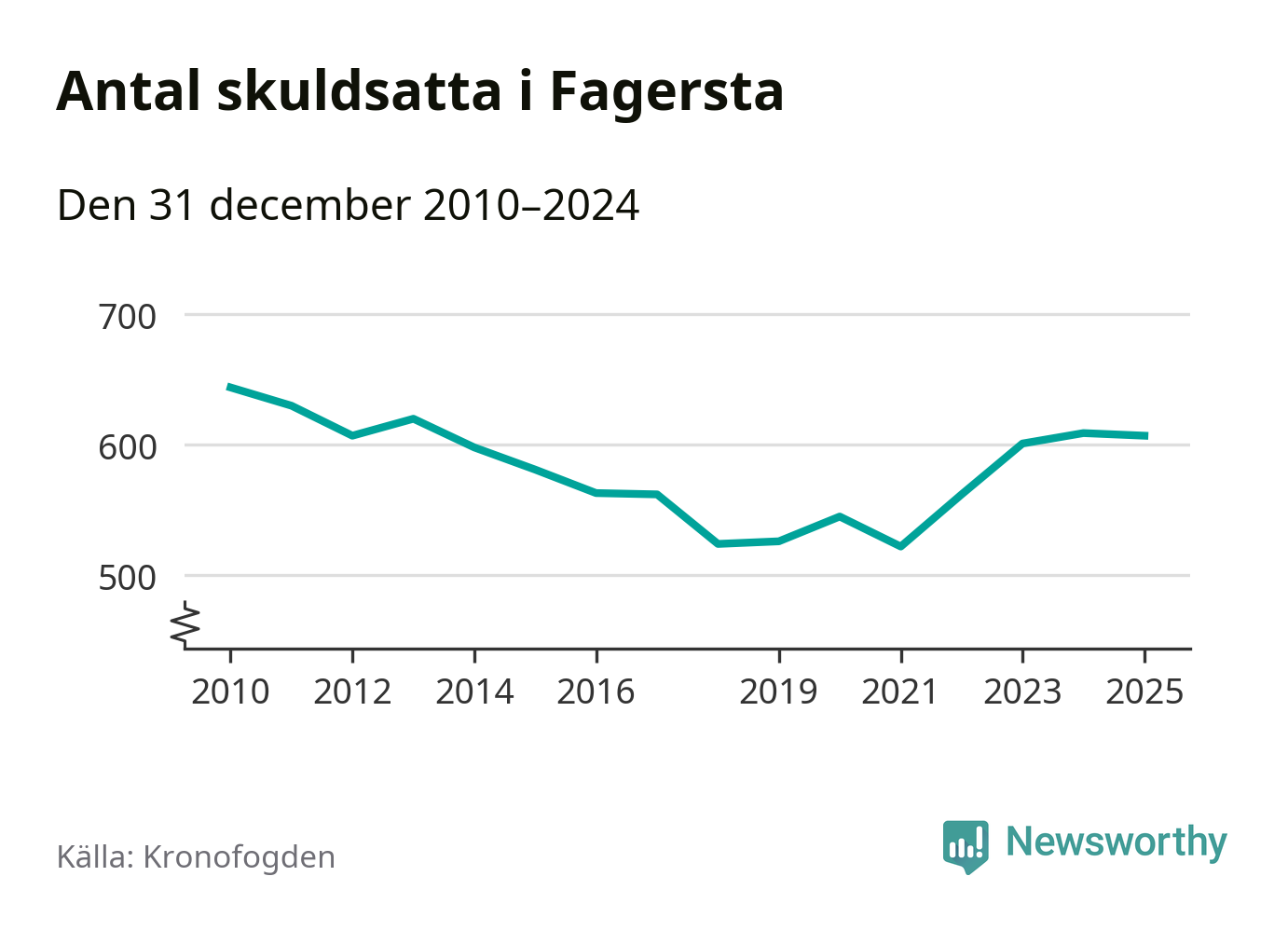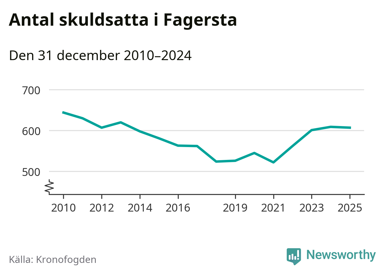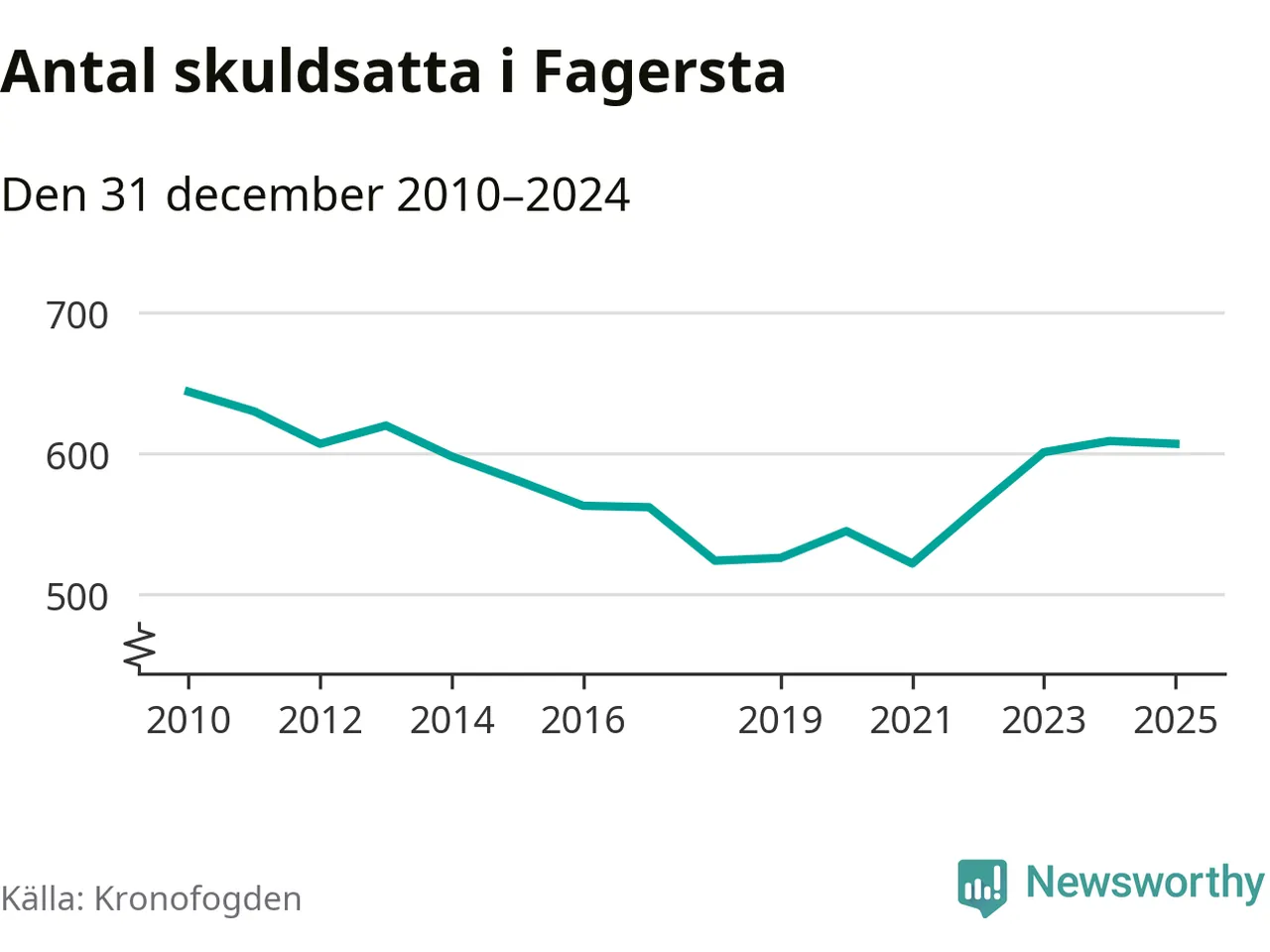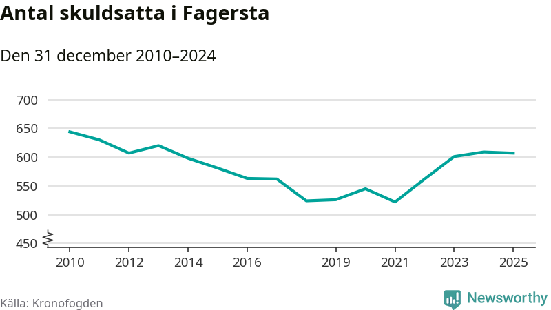 Antalet Fagerstabor hos Kronofogden är relativt oförändrat jämfört med i fjol. Vid årskiftet var 607 invånare i kommunen skyldiga totalt 166,5 miljoner kronor.