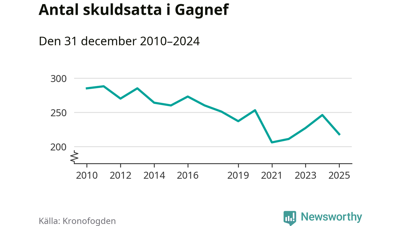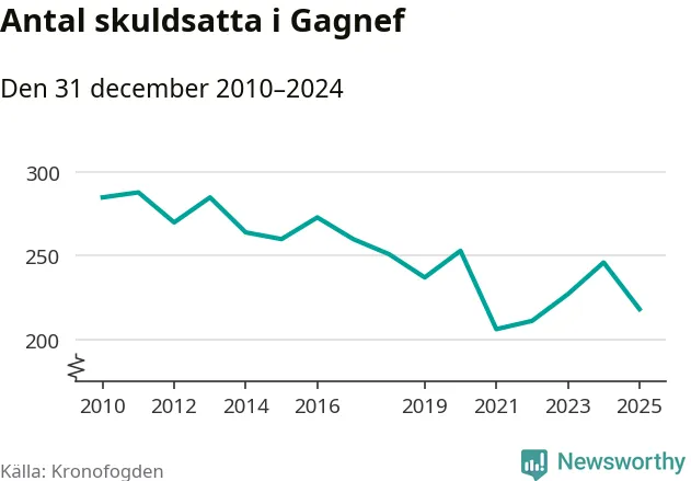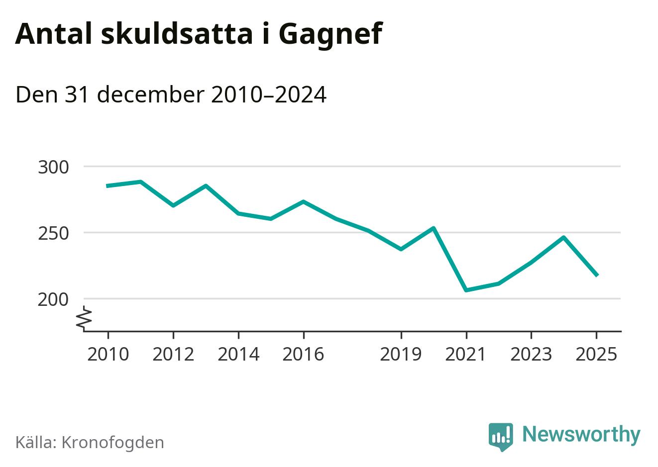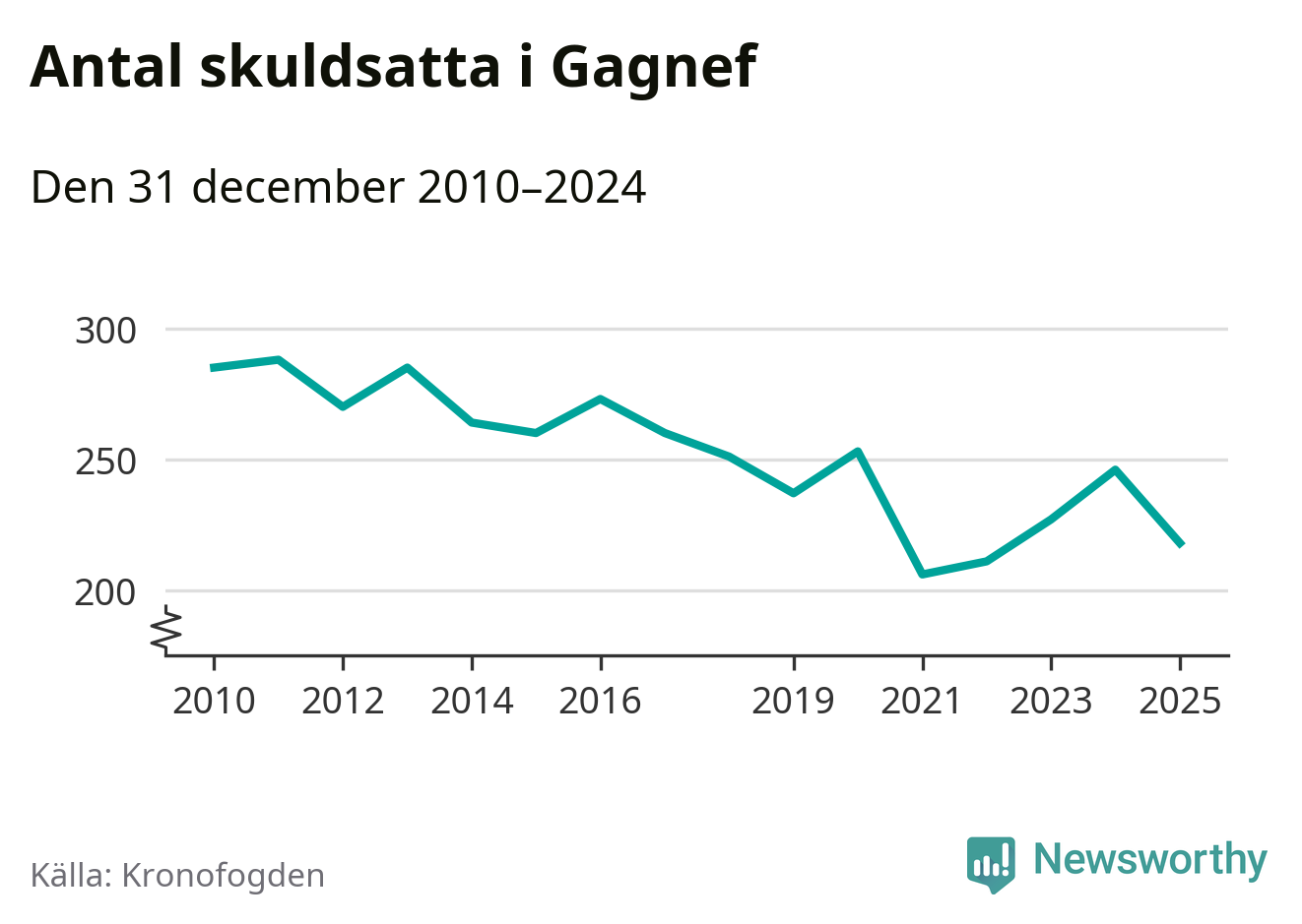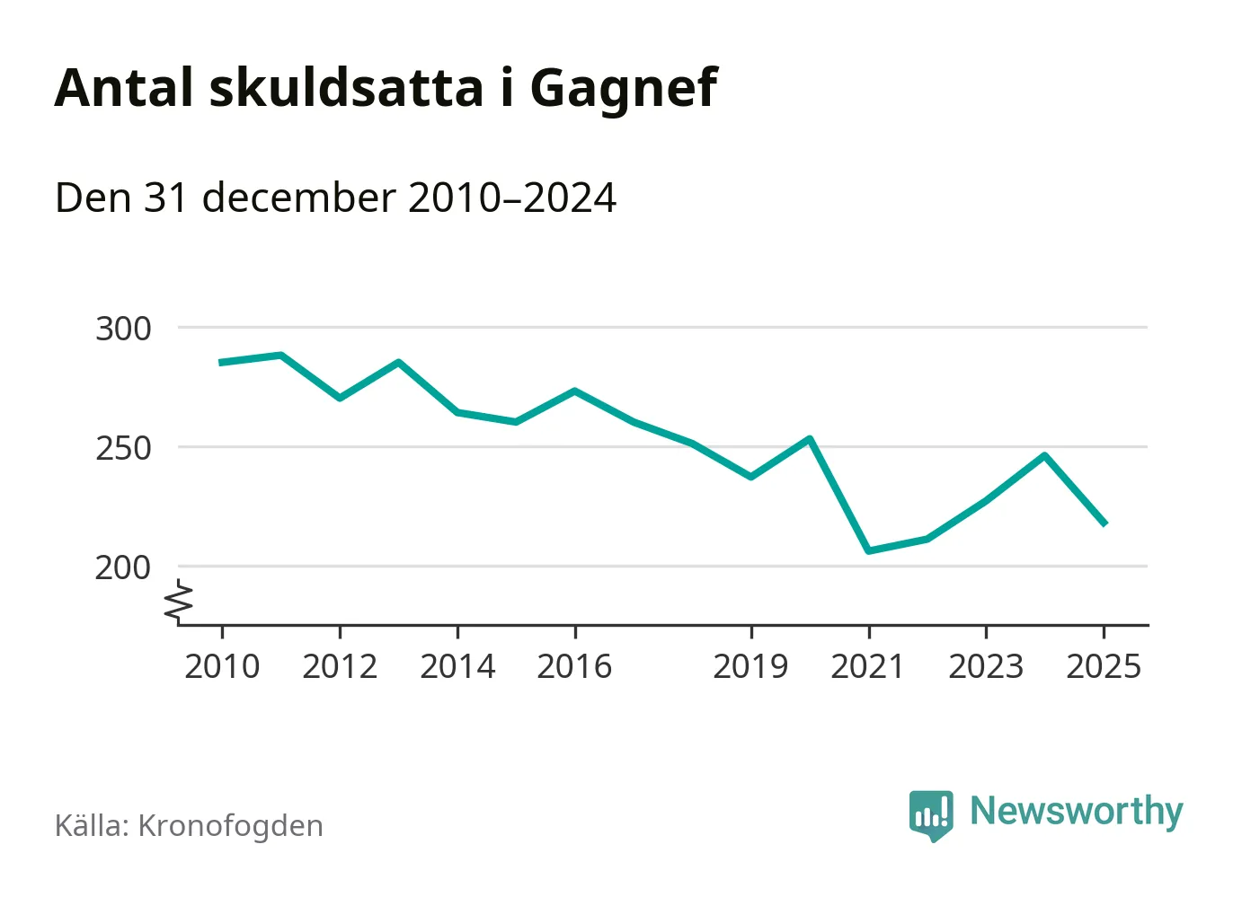 Antalet Gagnefsbor hos Kronofogden minskade i fjol. Vid årskiftet var 218 invånare i kommunen skyldiga totalt 56,2 miljoner kronor. Det är en minskning med 28 personer – eller 11 procent – jämfört med året innan.
