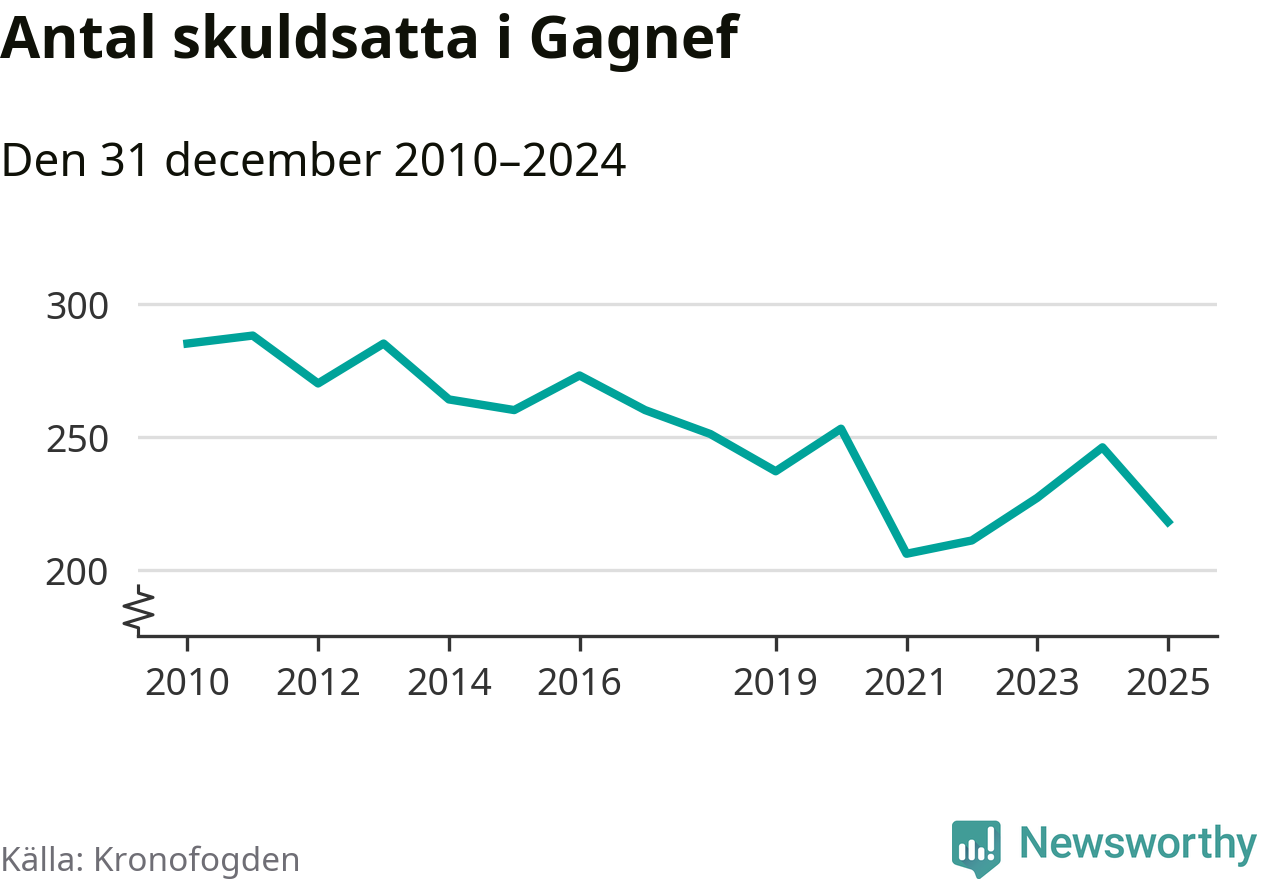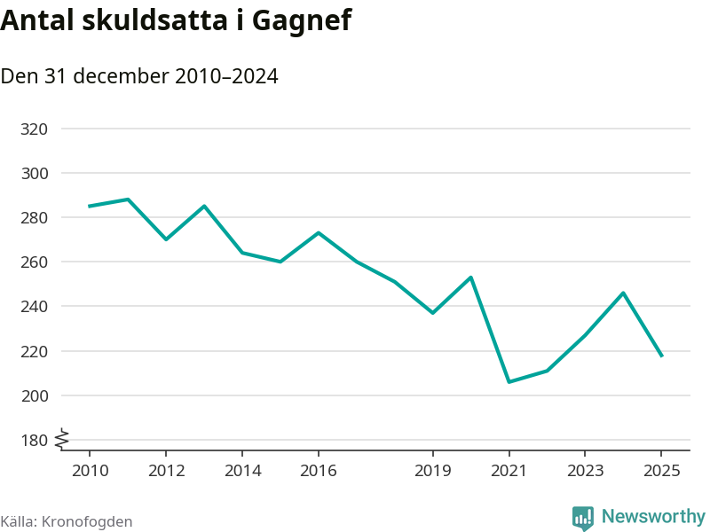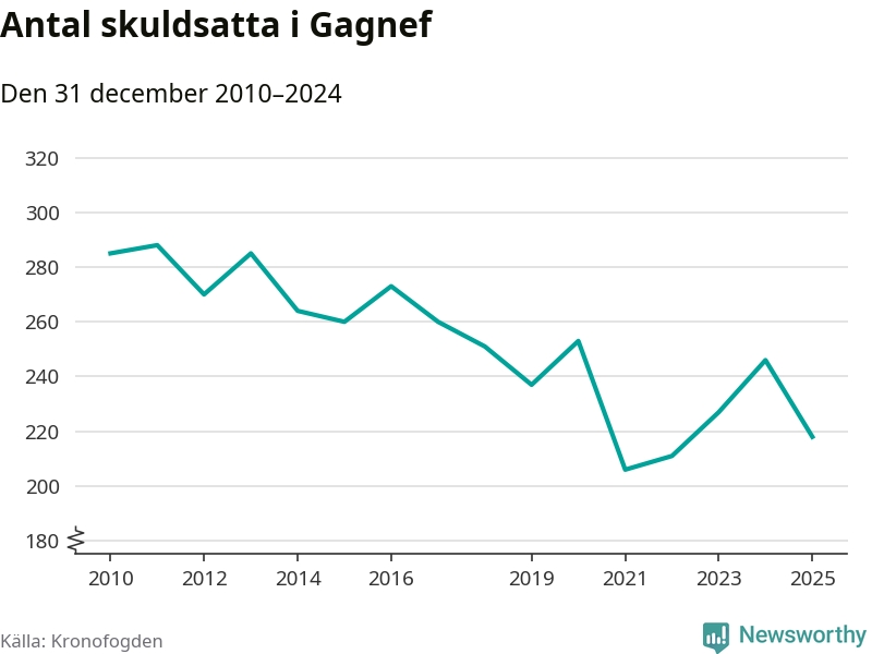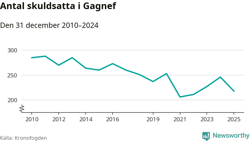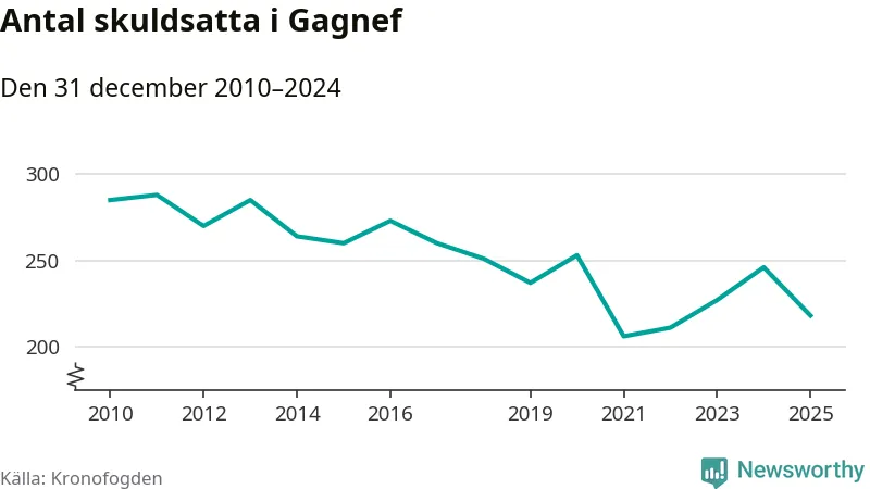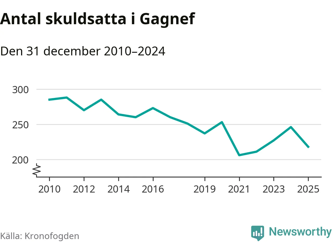 Antalet Gagnefsbor hos Kronofogden minskade i fjol. Vid årskiftet var 218 invånare i kommunen skyldiga totalt 56,2 miljoner kronor. Det är en minskning med 28 personer – eller 11 procent – jämfört med året innan.