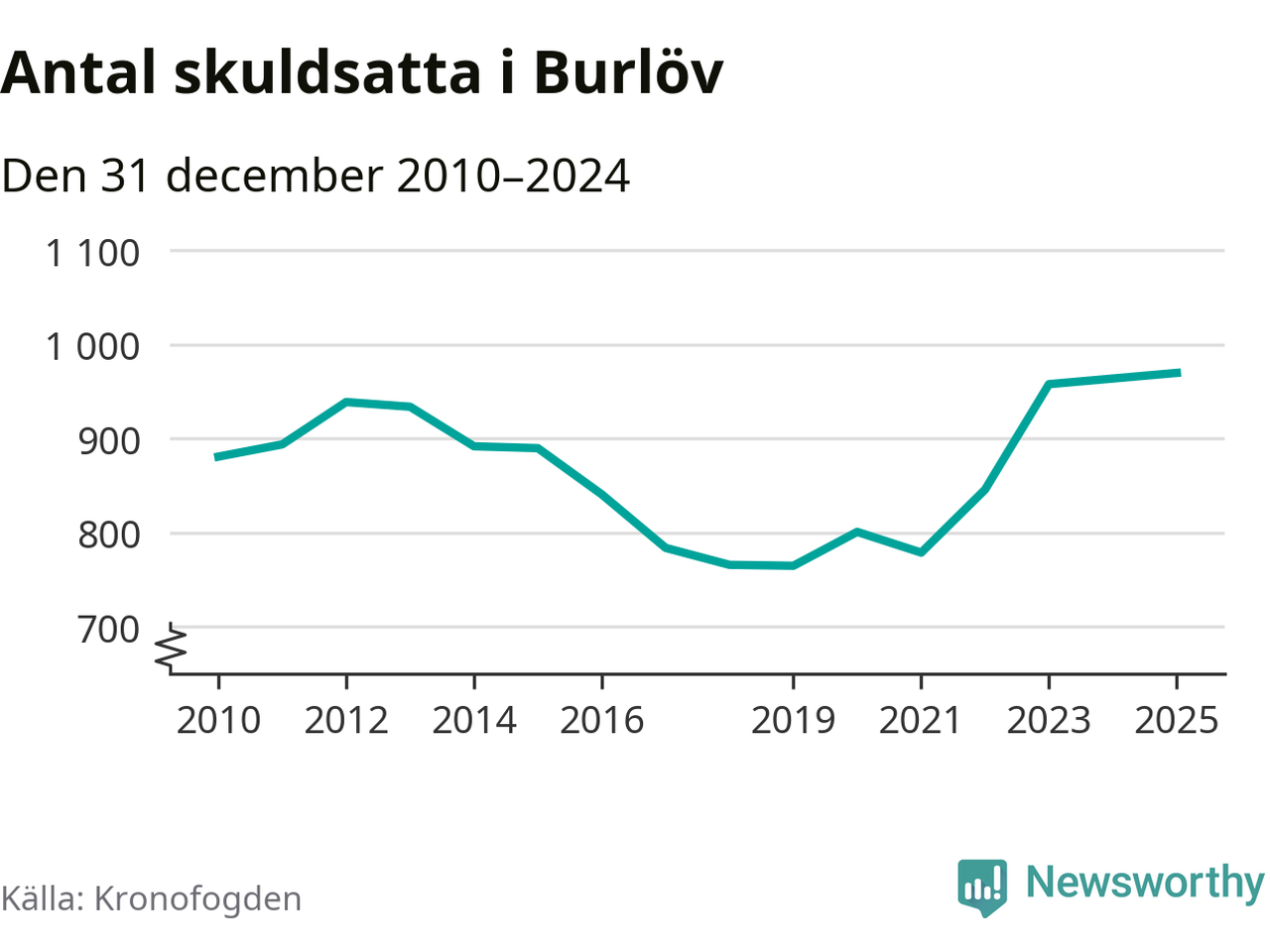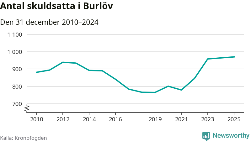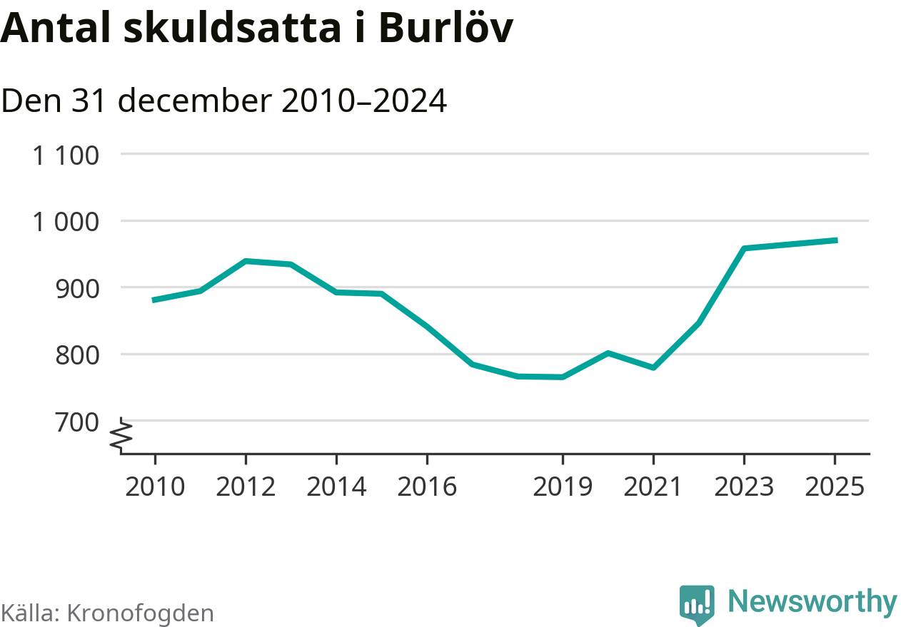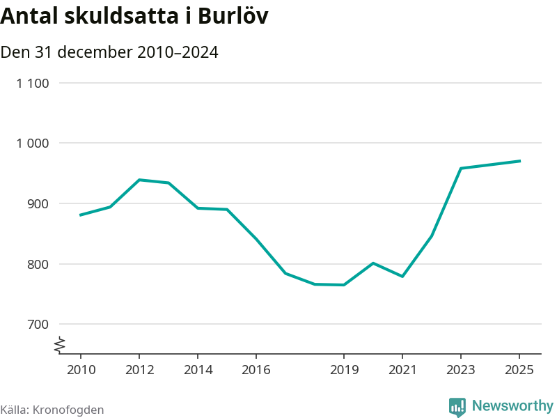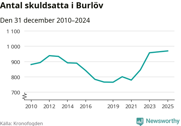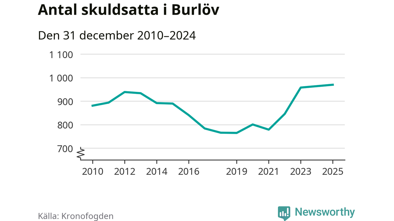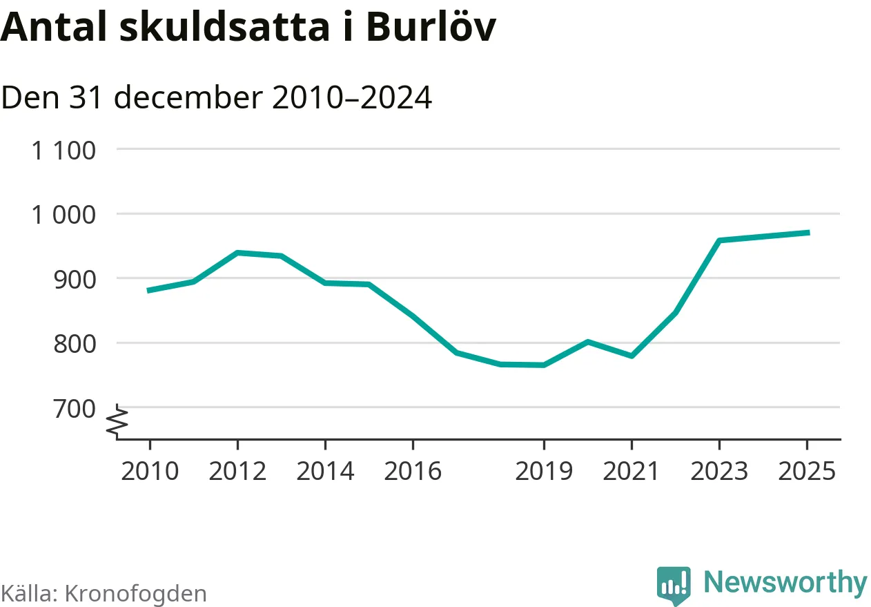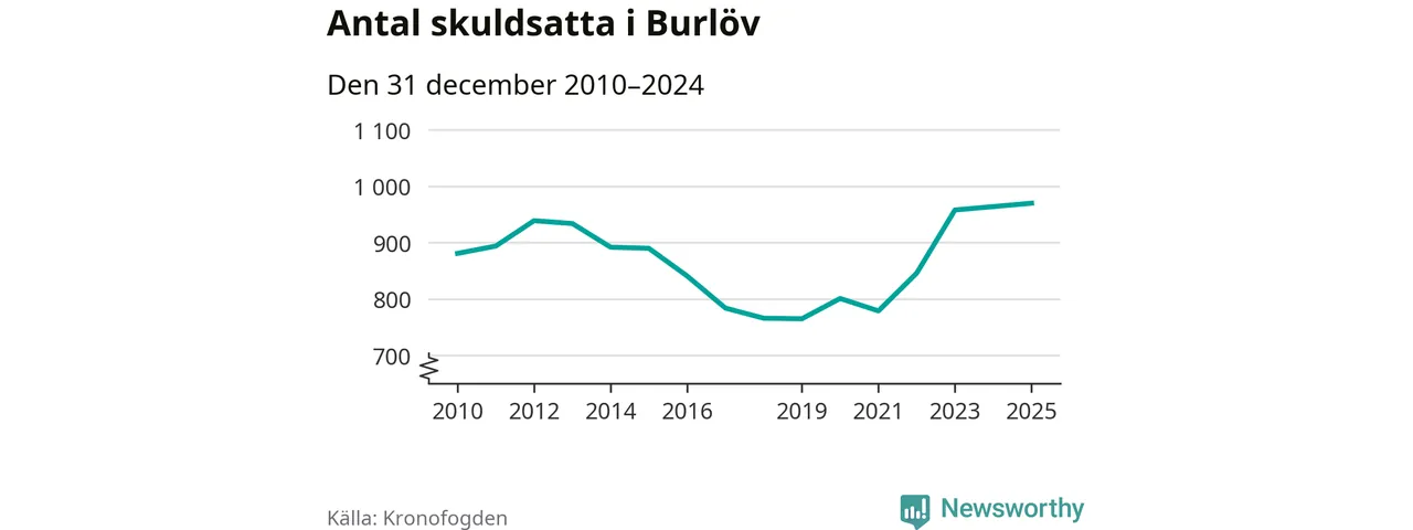 Inte sedan åtminstone 2010 har så många Burlövsbor hamnat hos Kronofogden. Vid årskiftet var 970 invånare i kommunen skyldiga totalt 470,9 miljoner kronor.