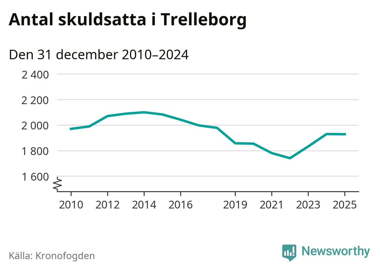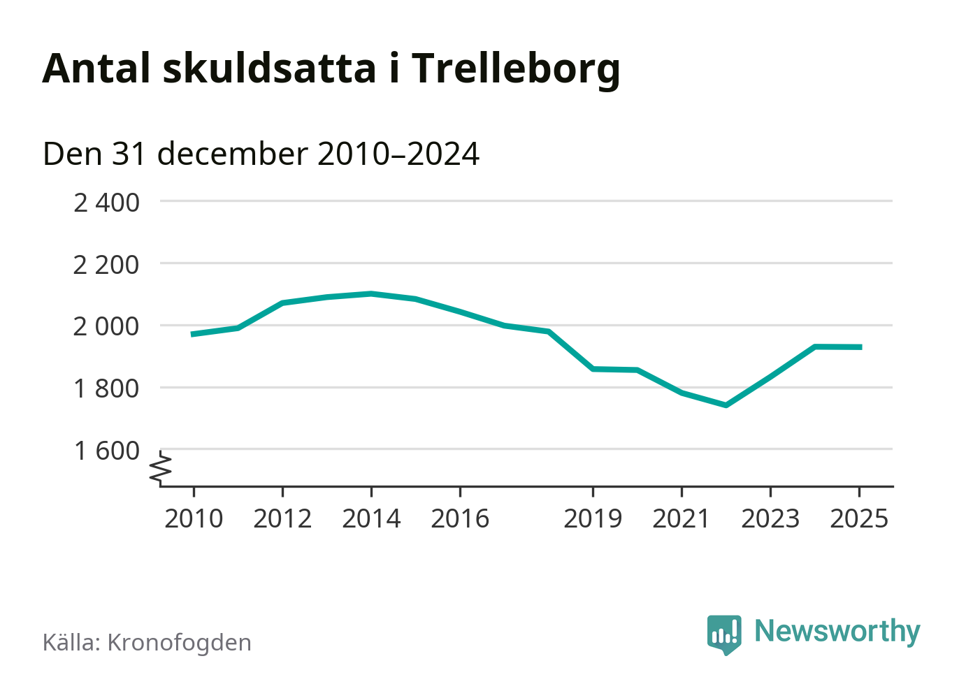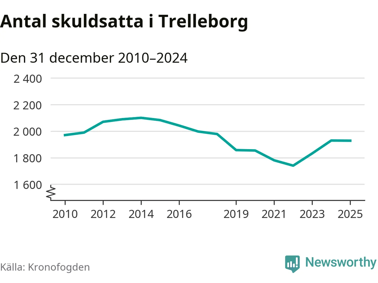 Antalet Trelleborgs­bor hos Kronofogden är relativt oförändrat jämfört med i fjol. Vid årskiftet var 1 928 invånare i kommunen skyldiga totalt 638,7 miljoner kronor.