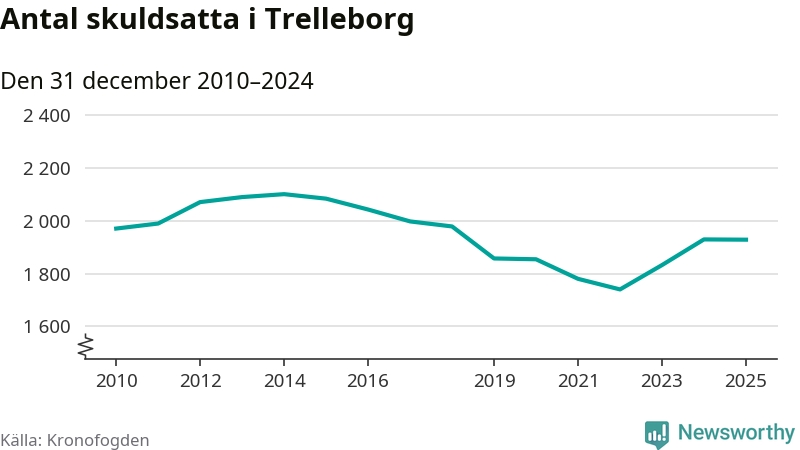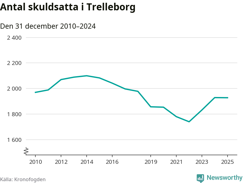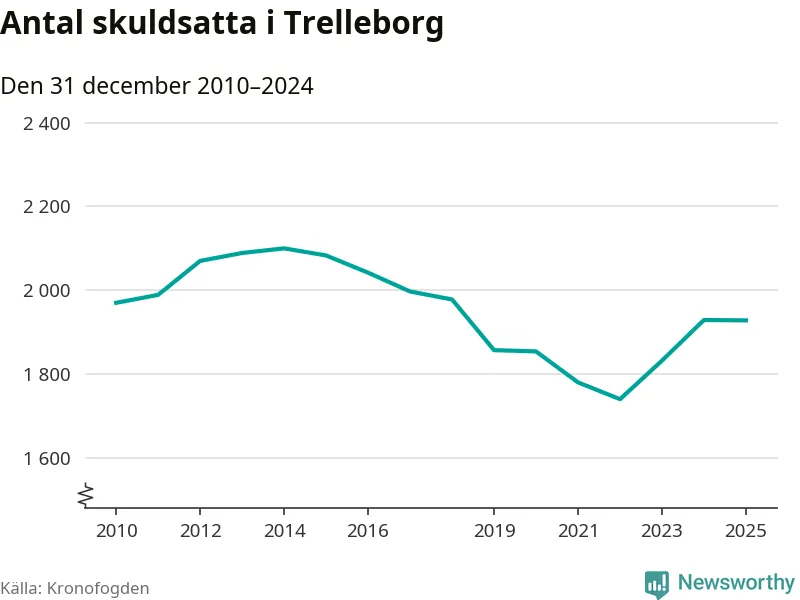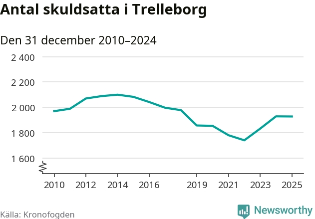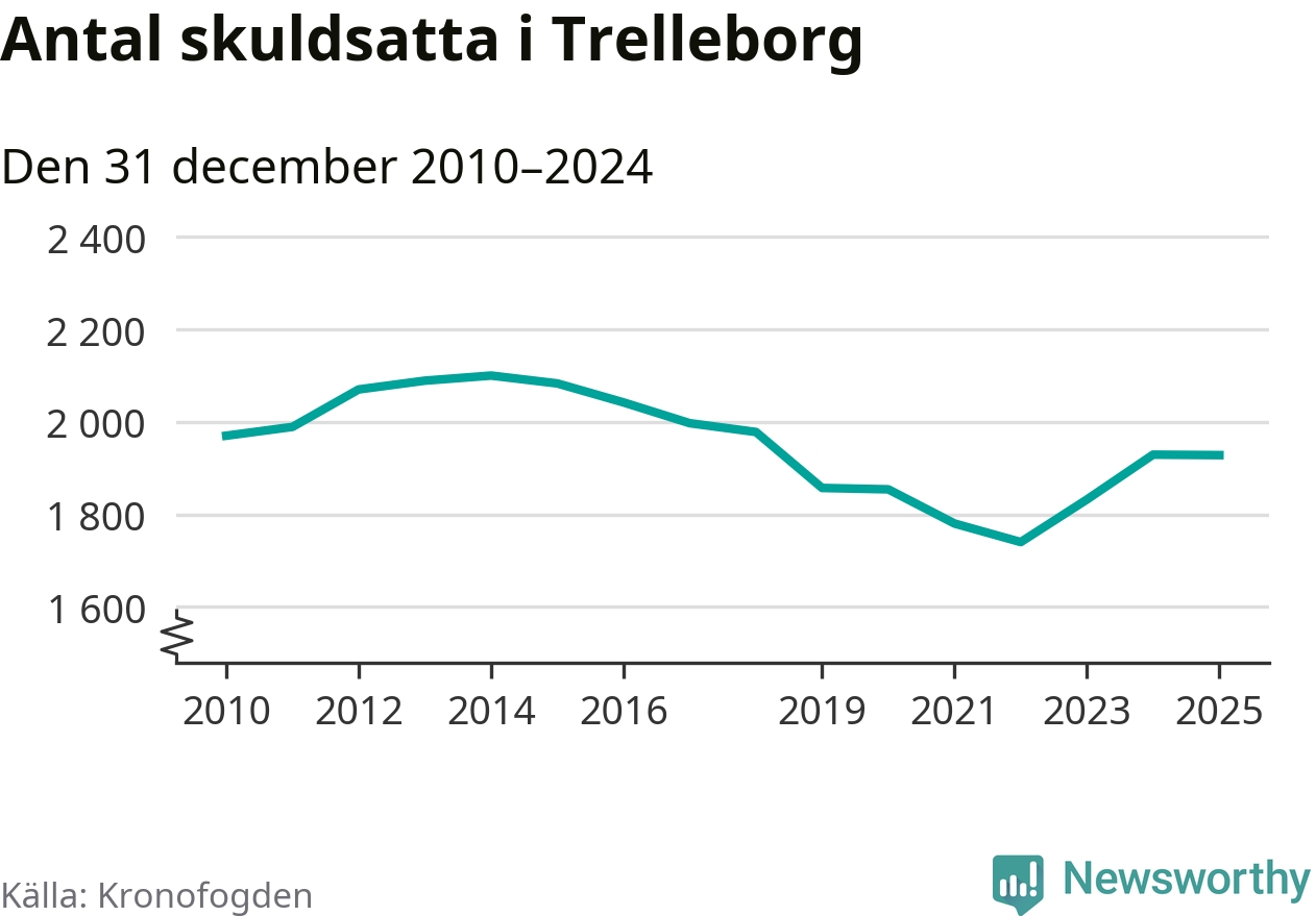 Antalet Trelleborgs­bor hos Kronofogden är relativt oförändrat jämfört med i fjol. Vid årskiftet var 1 928 invånare i kommunen skyldiga totalt 638,7 miljoner kronor.
