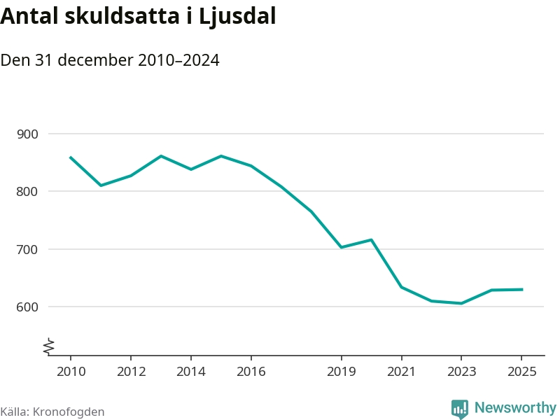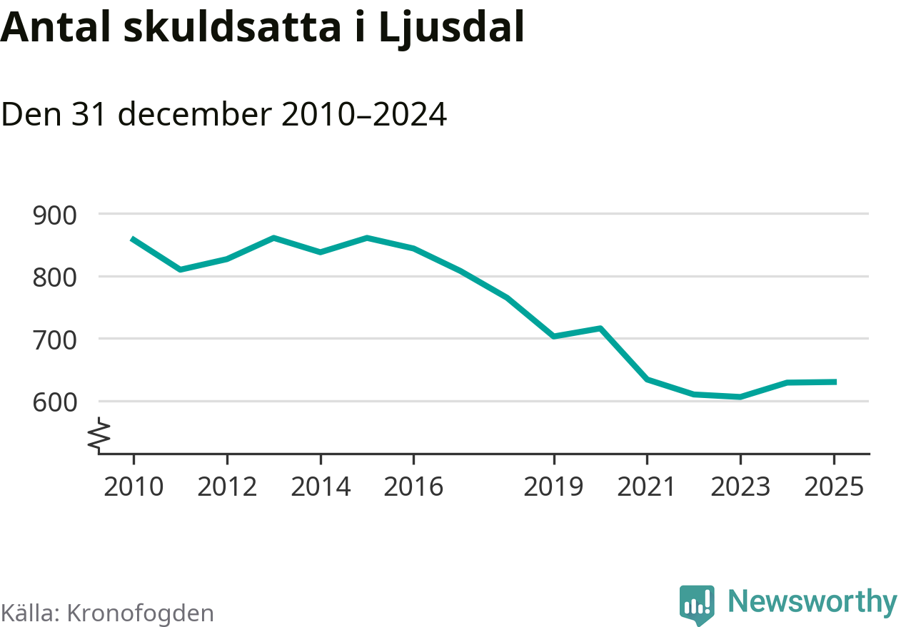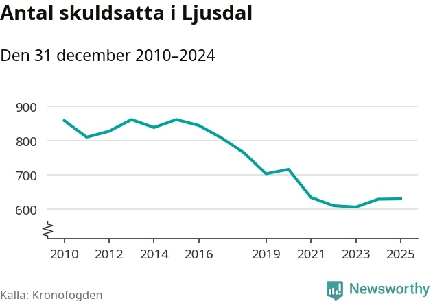 Allt fler Ljusdalsbor hamnar hos Kronofogden. Vid årskiftet var 630 invånare i kommunen skyldiga totalt 225,7 miljoner kronor.