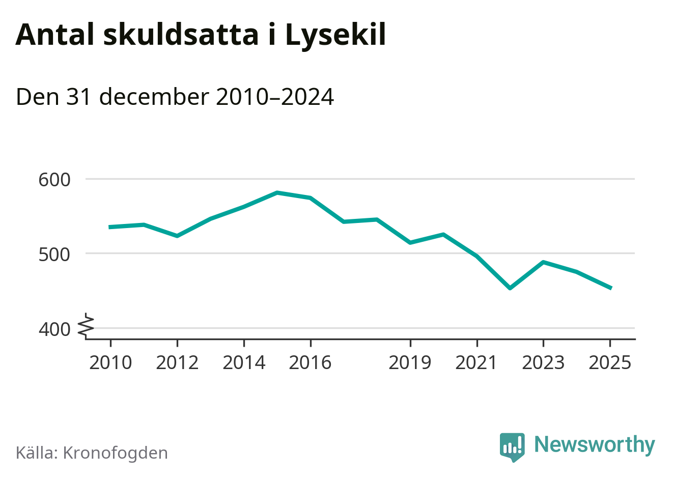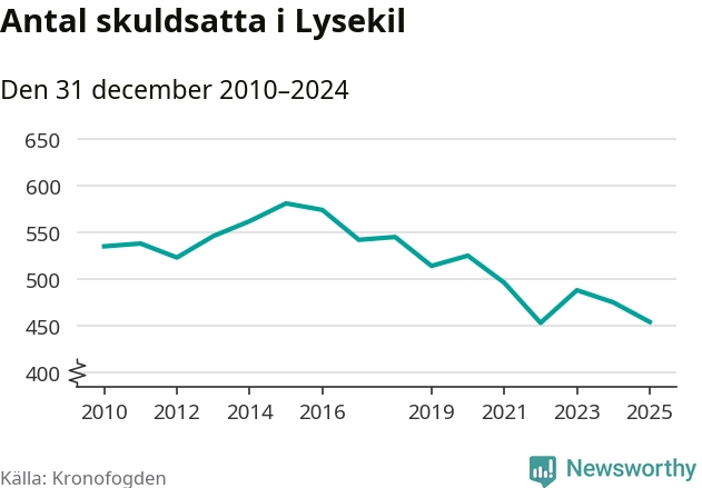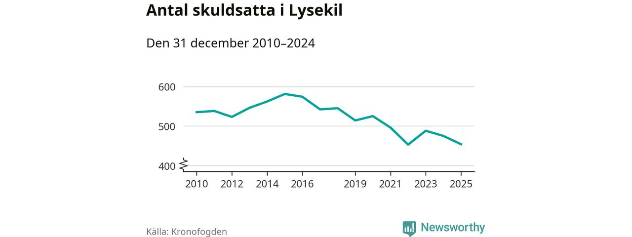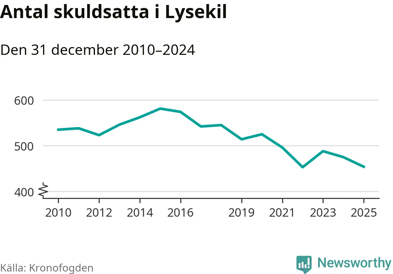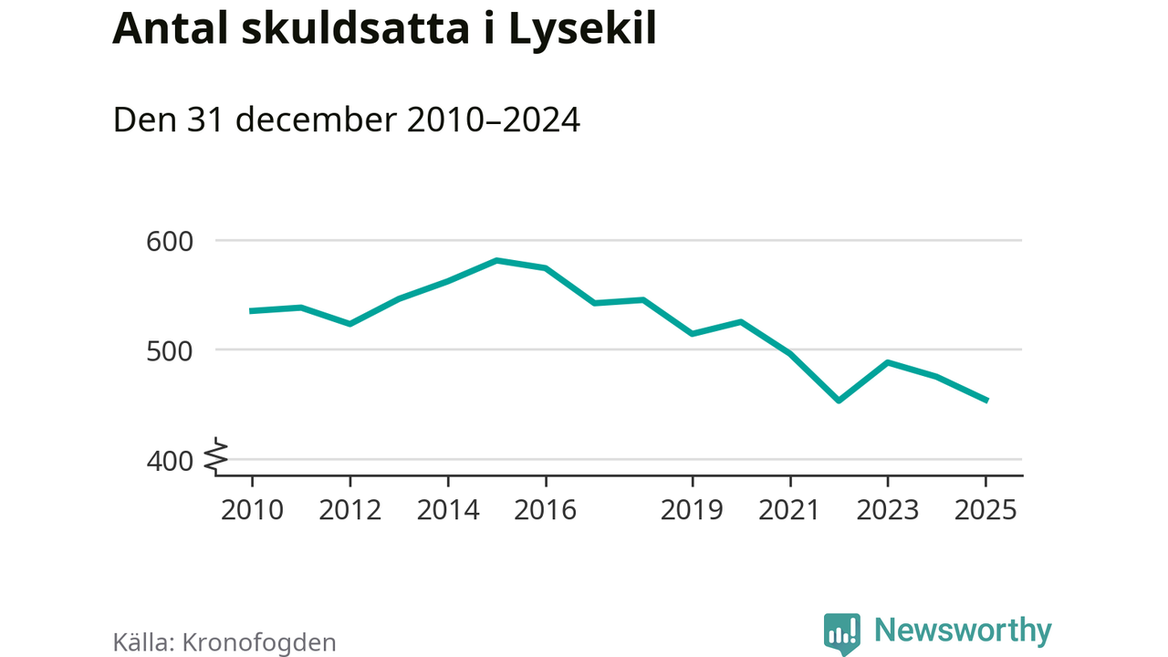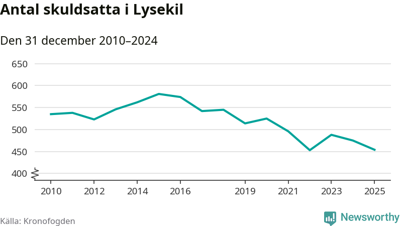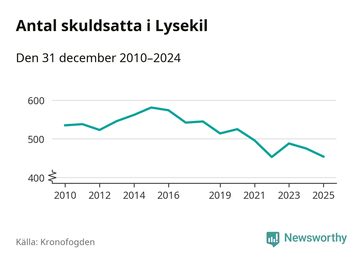Allt färre Lysekils­bor hamnar hos Kronofogden. Vid årskiftet var 454 invånare i kommunen skyldiga totalt 139 miljoner kronor. Det är en minskning med 21 personer – eller 4 procent – jämfört med året innan.