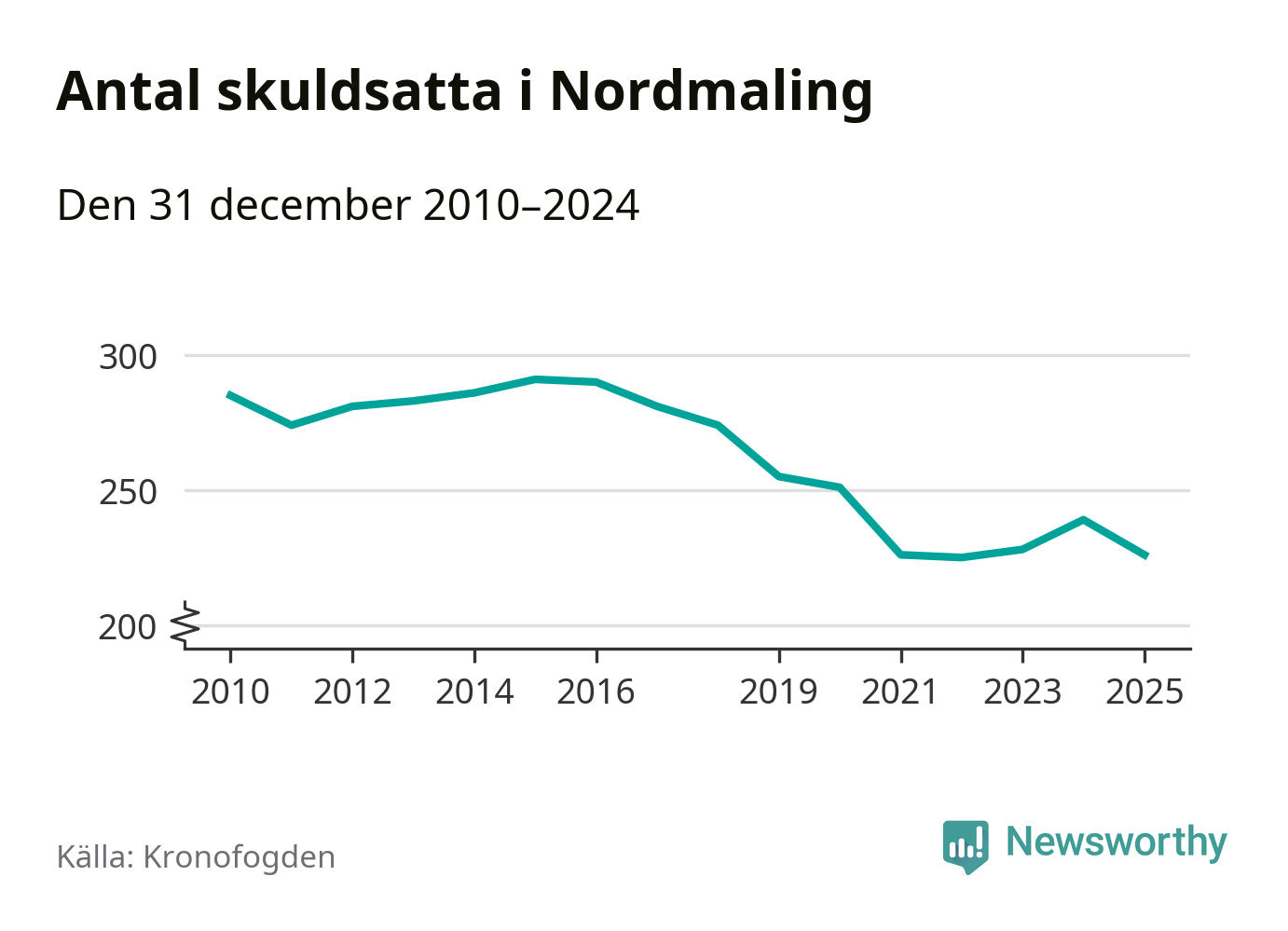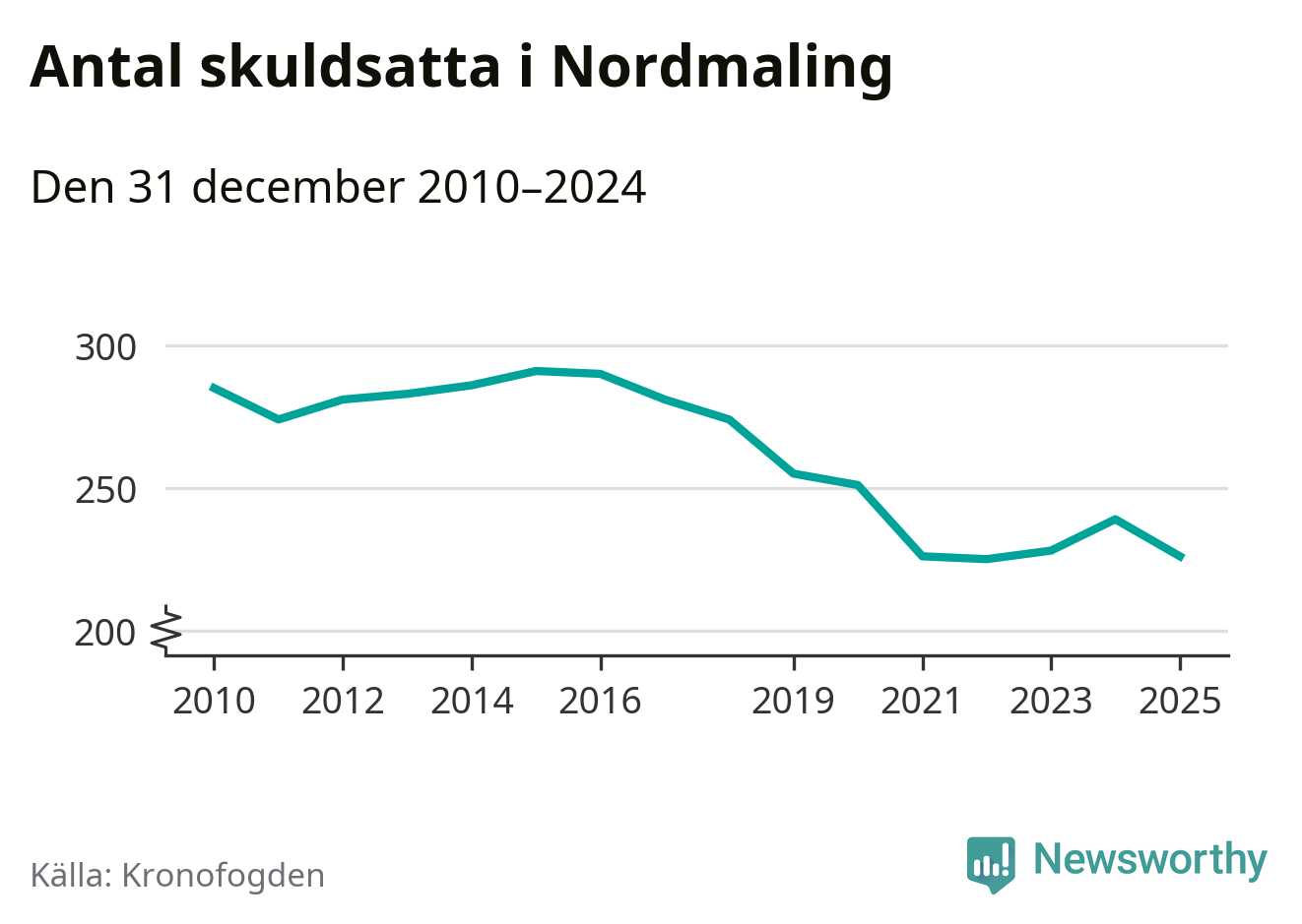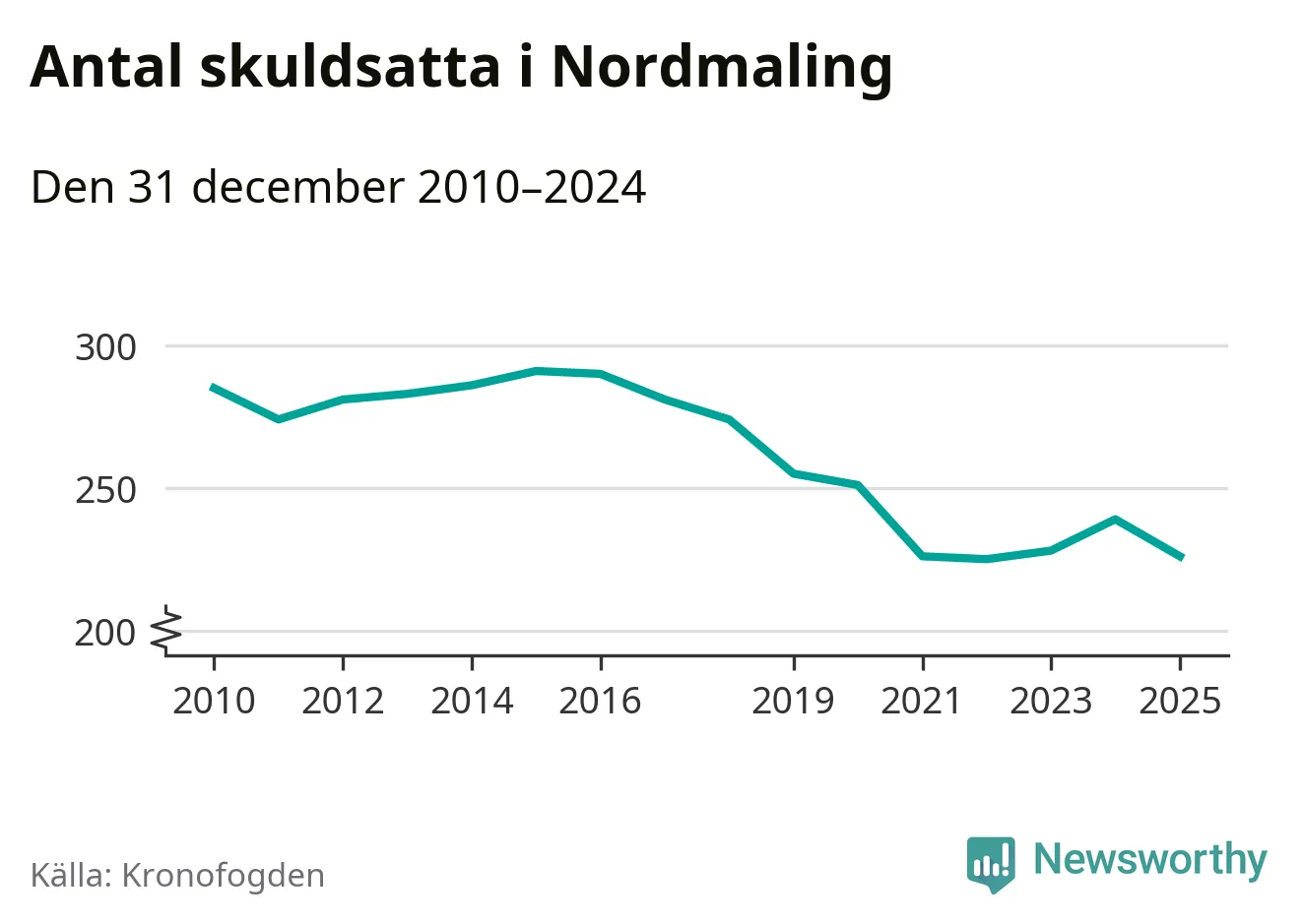Antalet Nordmalings­bor hos Kronofogden minskade i fjol. Vid årskiftet var 226 invånare i kommunen skyldiga totalt 68,7 miljoner kronor. Det är en minskning med 13 personer – eller 5 procent – jämfört med året innan.