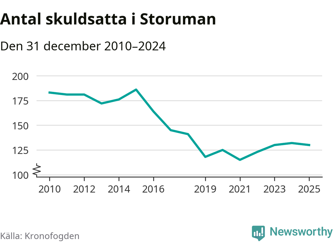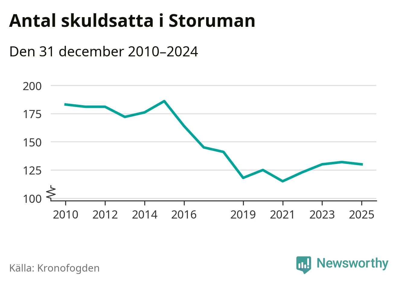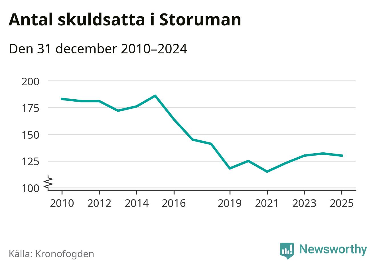 Antalet Storumanbor hos Kronofogden minskade i fjol. Vid årskiftet var 130 invånare i kommunen skyldiga totalt 34,2 miljoner kronor. Det är en minskning med två personer jämfört med året innan.