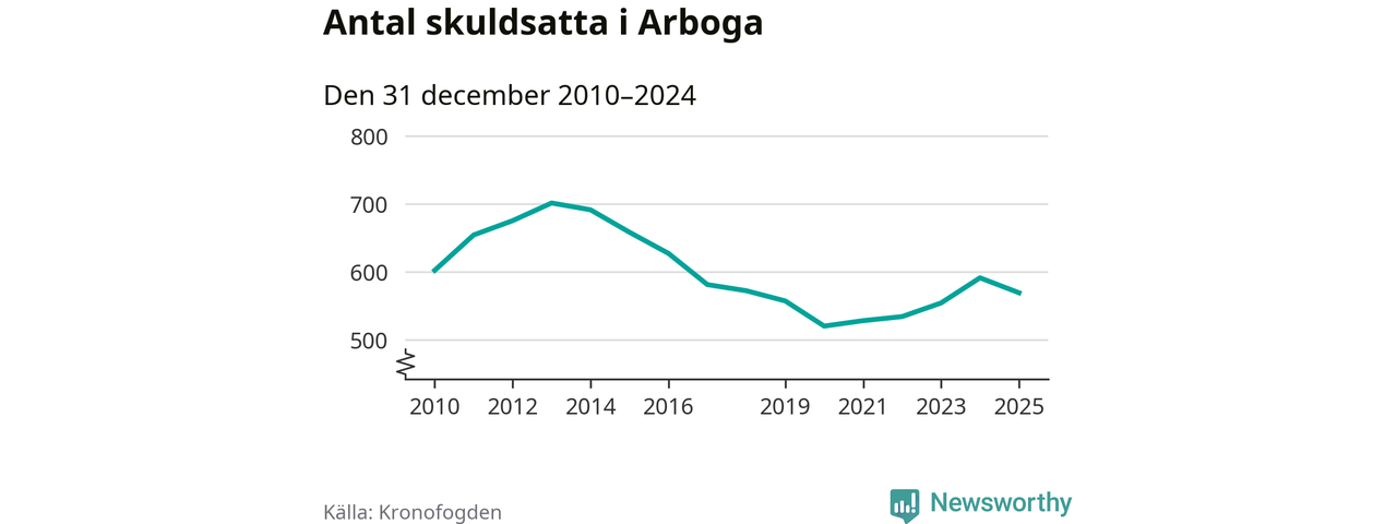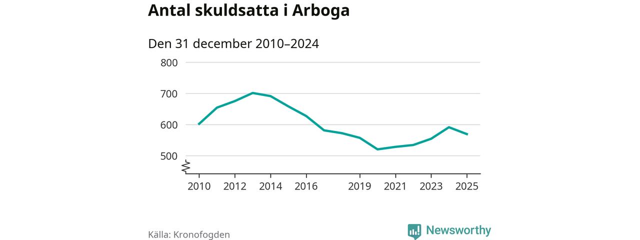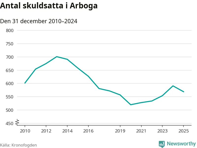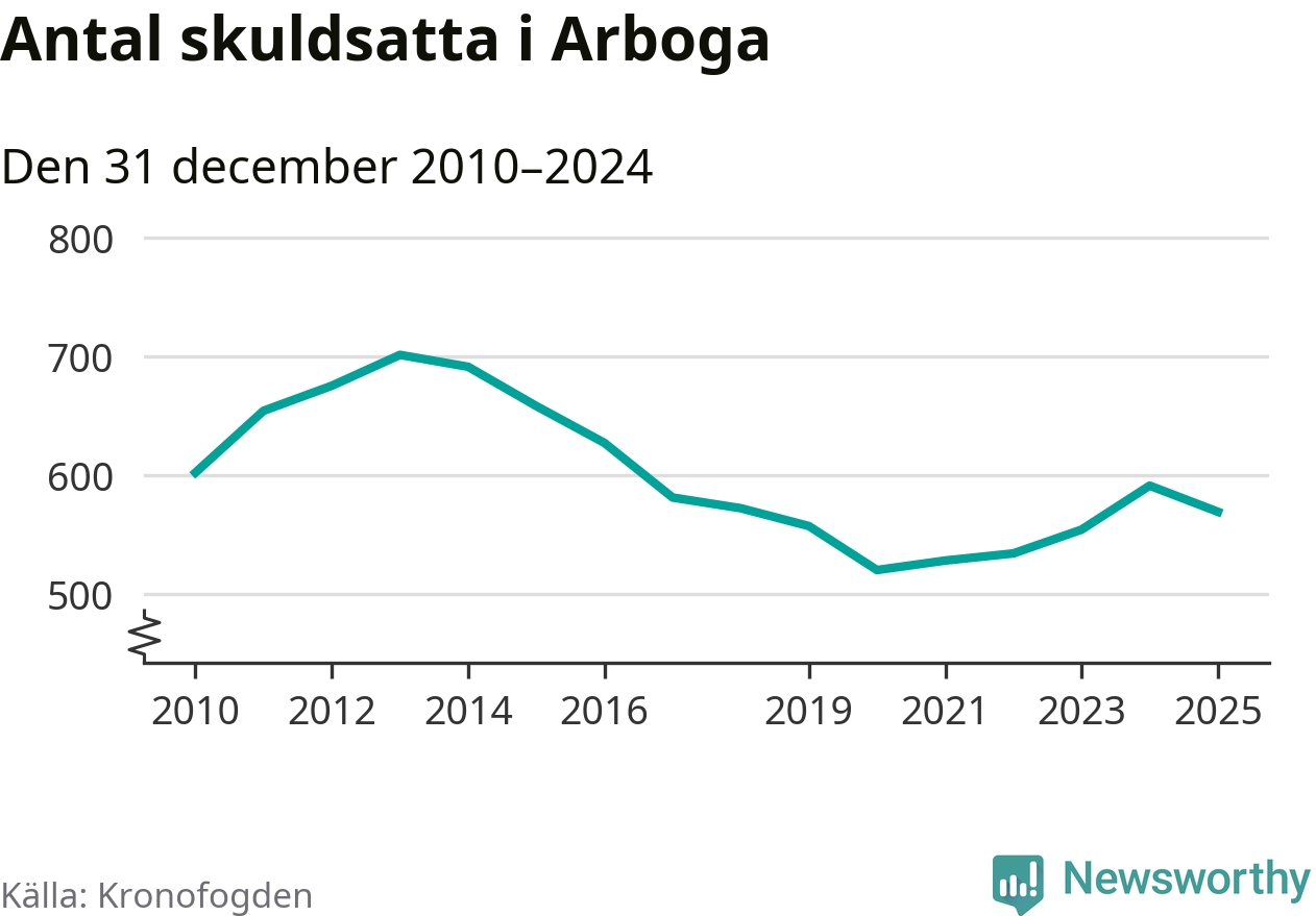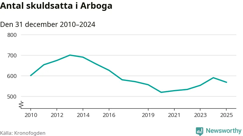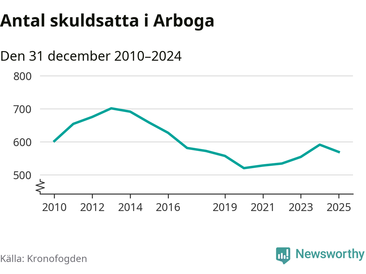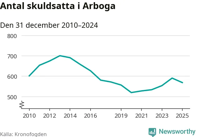 Antalet Arbogabor hos Kronofogden minskade i fjol. Vid årskiftet var 569 invånare i kommunen skyldiga totalt 126,8 miljoner kronor. Det är en minskning med 22 personer – eller 4 procent – jämfört med året innan.