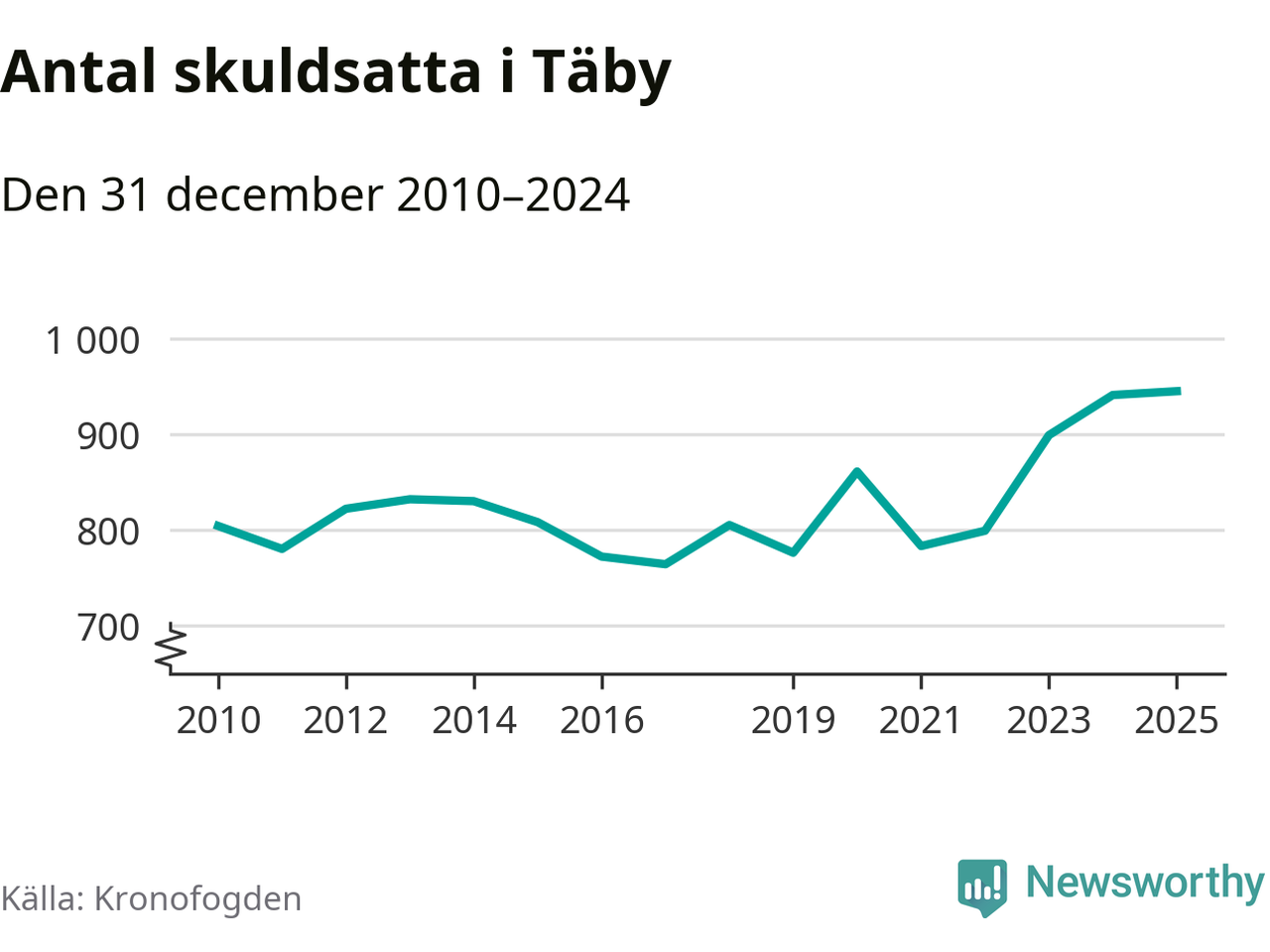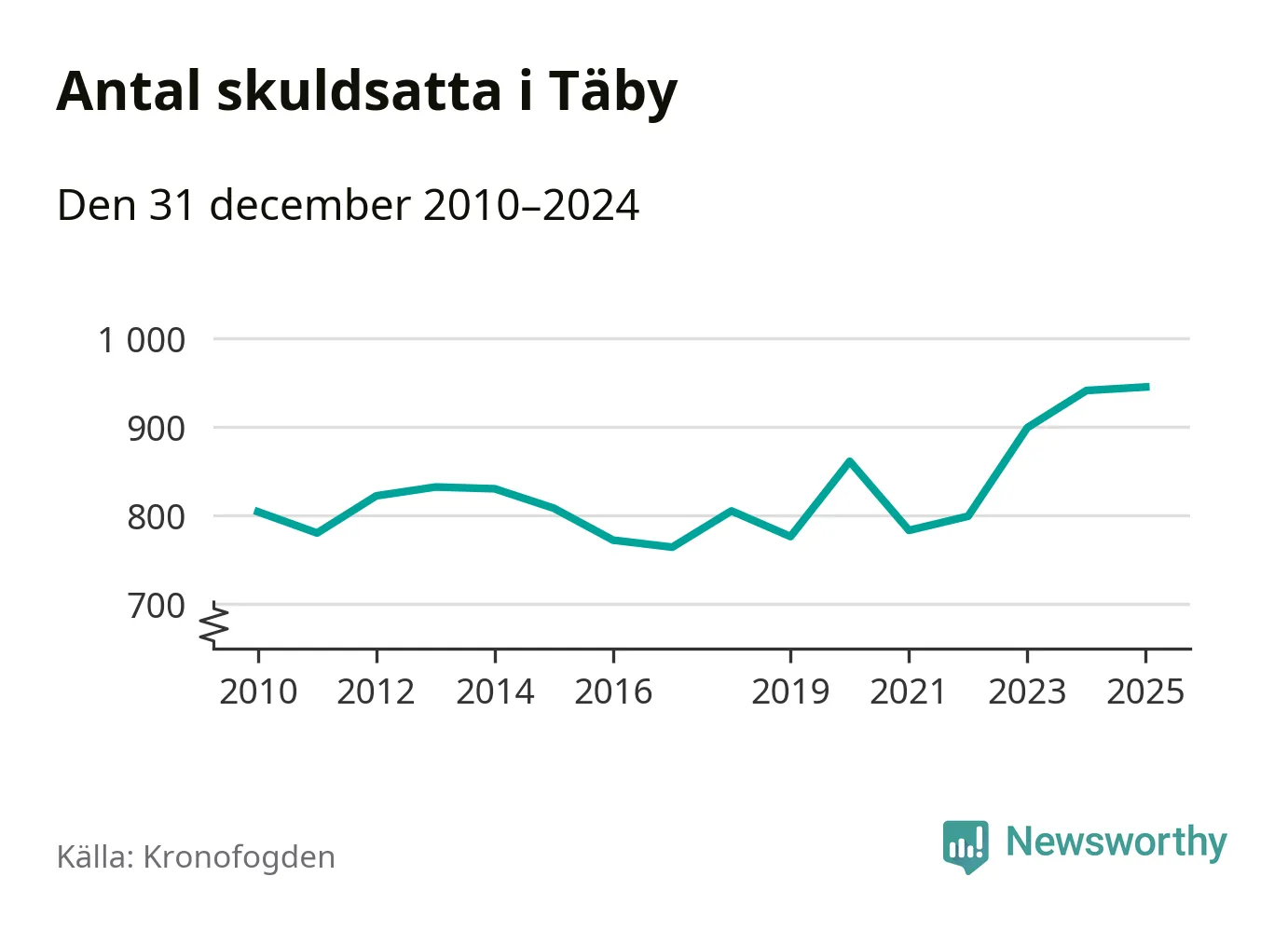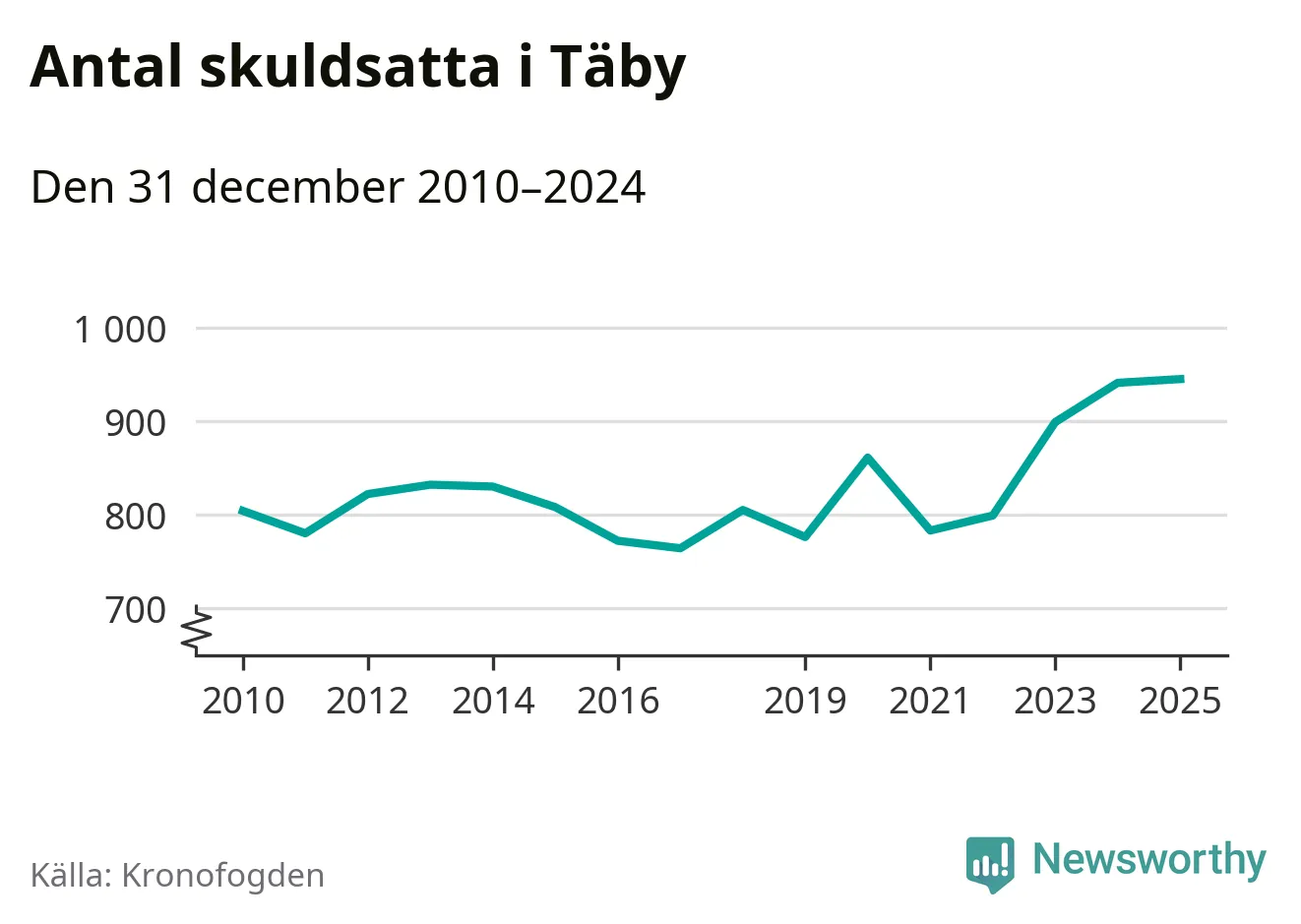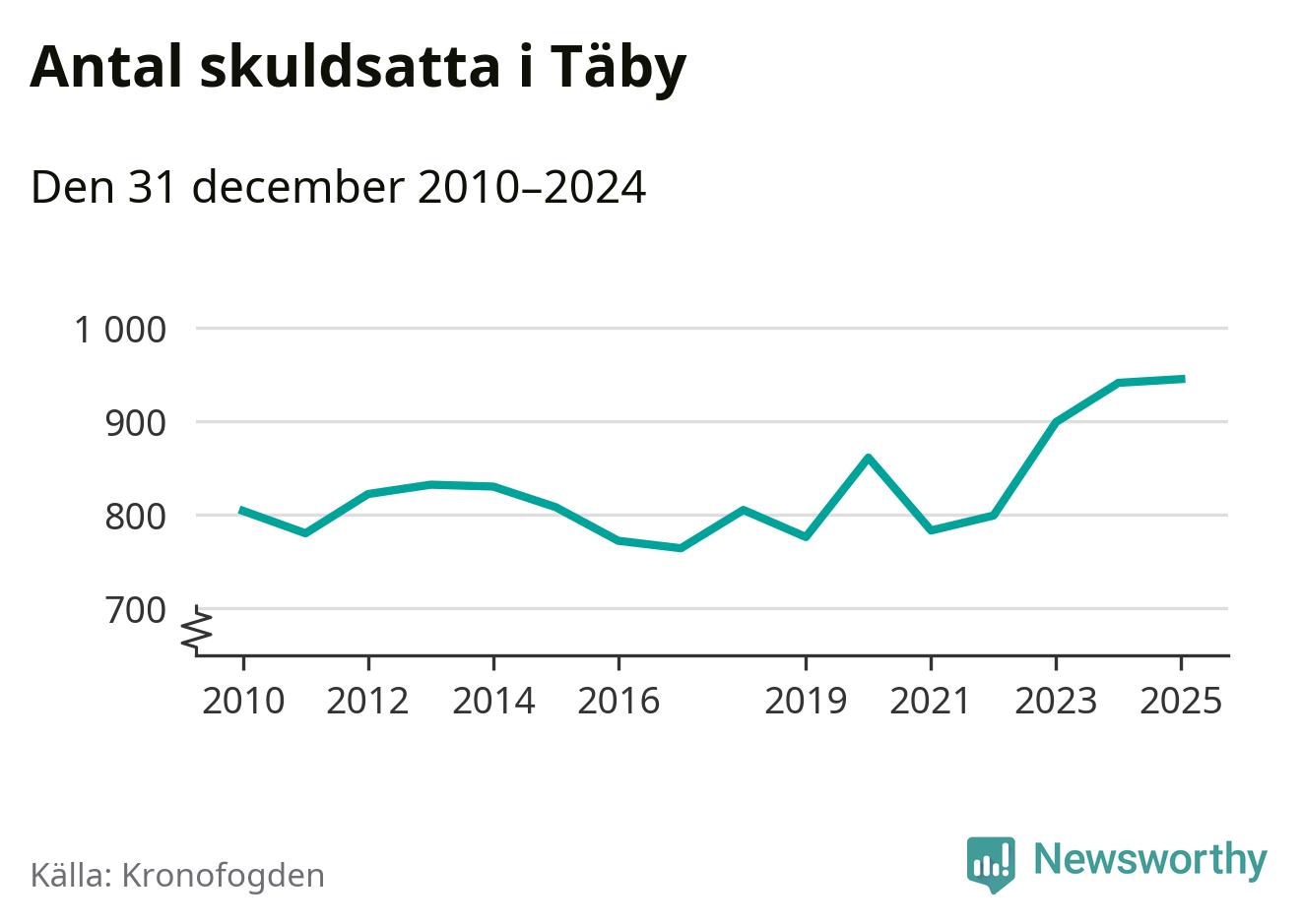 Inte sedan åtminstone 2010 har så många Täby­bor hamnat hos Kronofogden. Vid årskiftet var 945 invånare i kommunen skyldiga totalt 498,9 miljoner kronor.