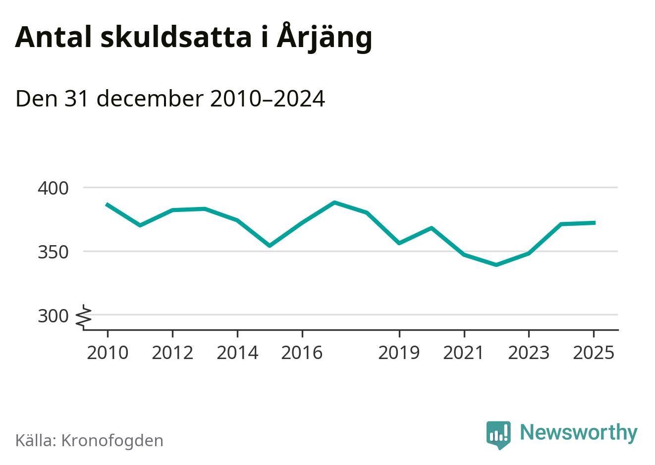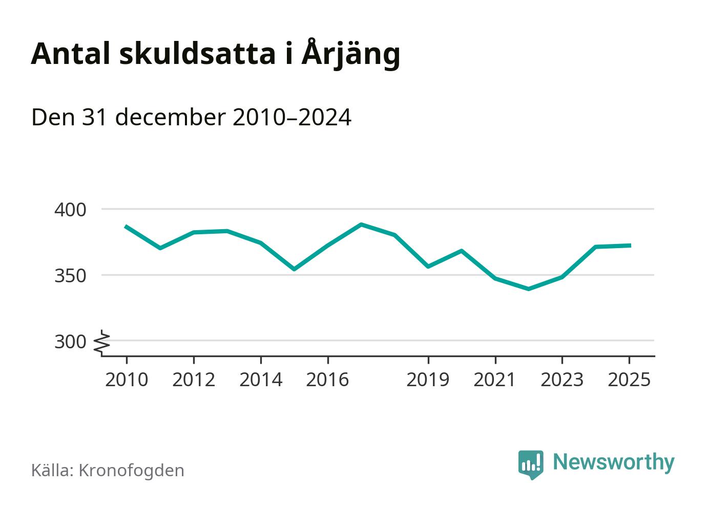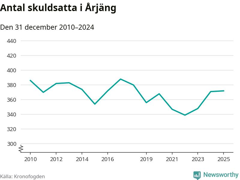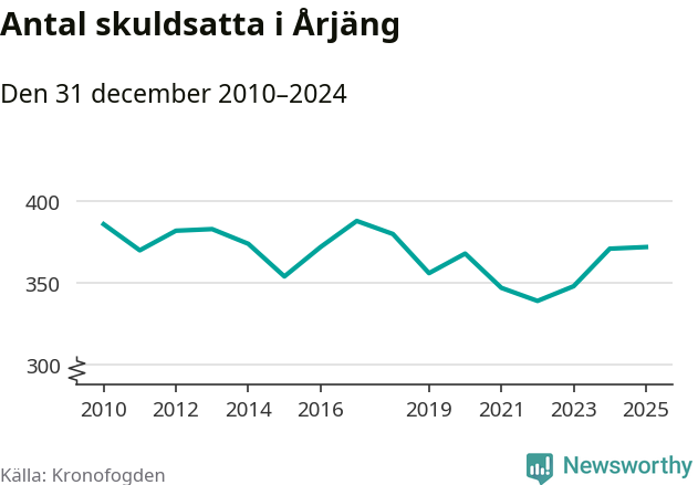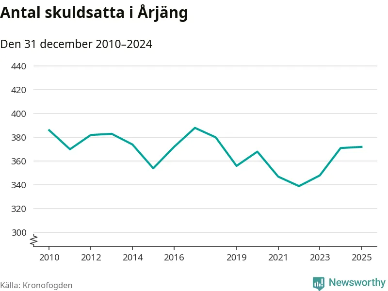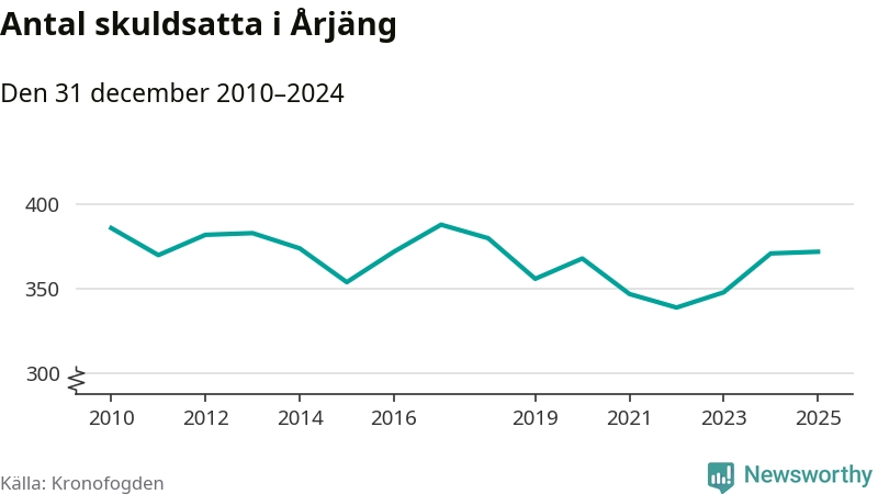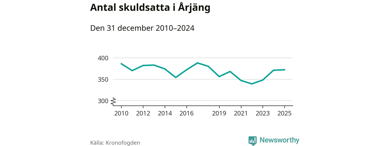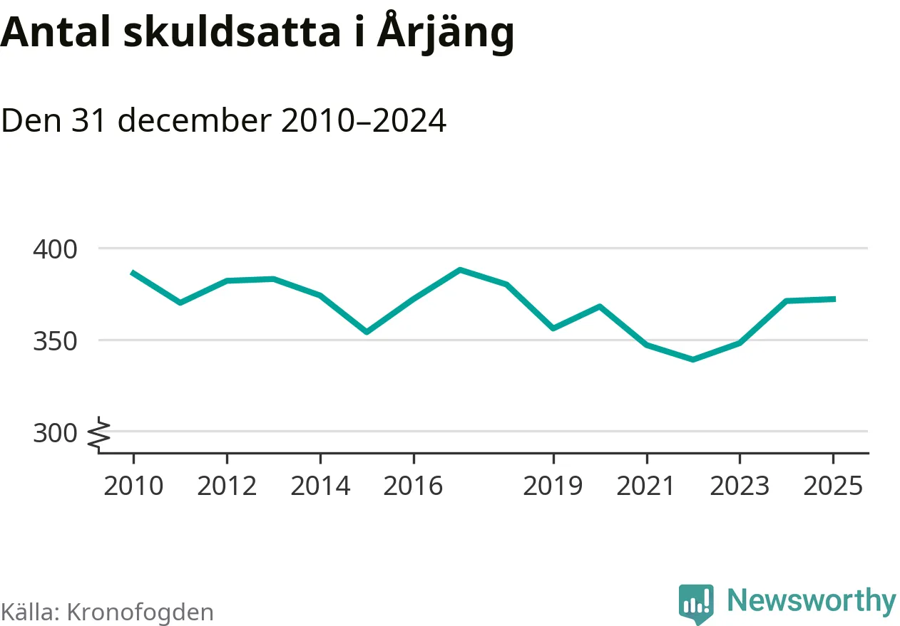 Inte sedan år 2018 har lika många Årjängs­bor varit registrerade hos Kronofogden. Listan toppas av en 69-årig man.