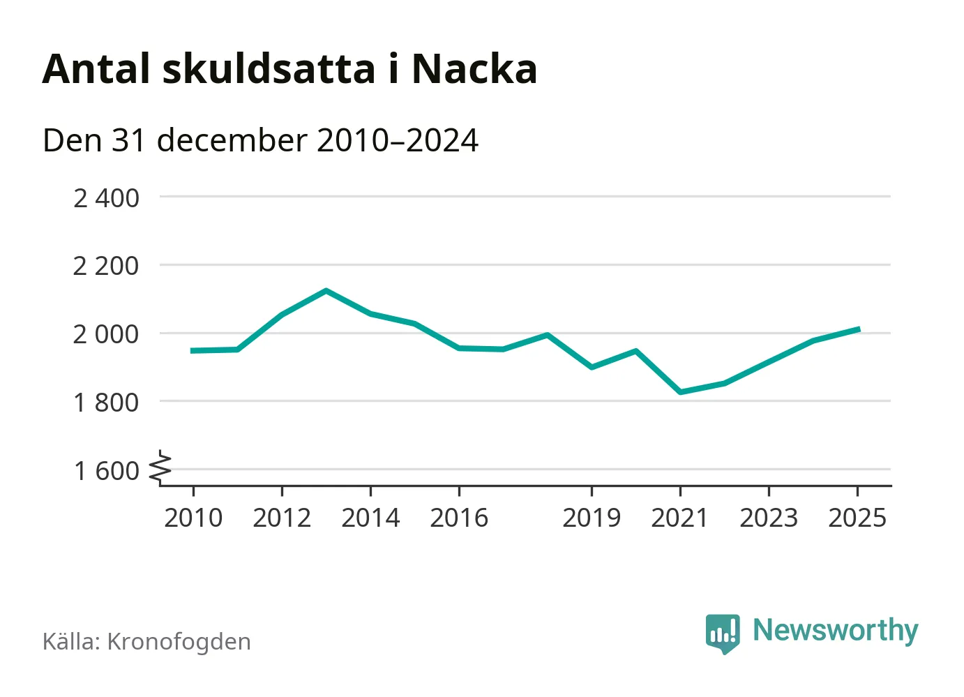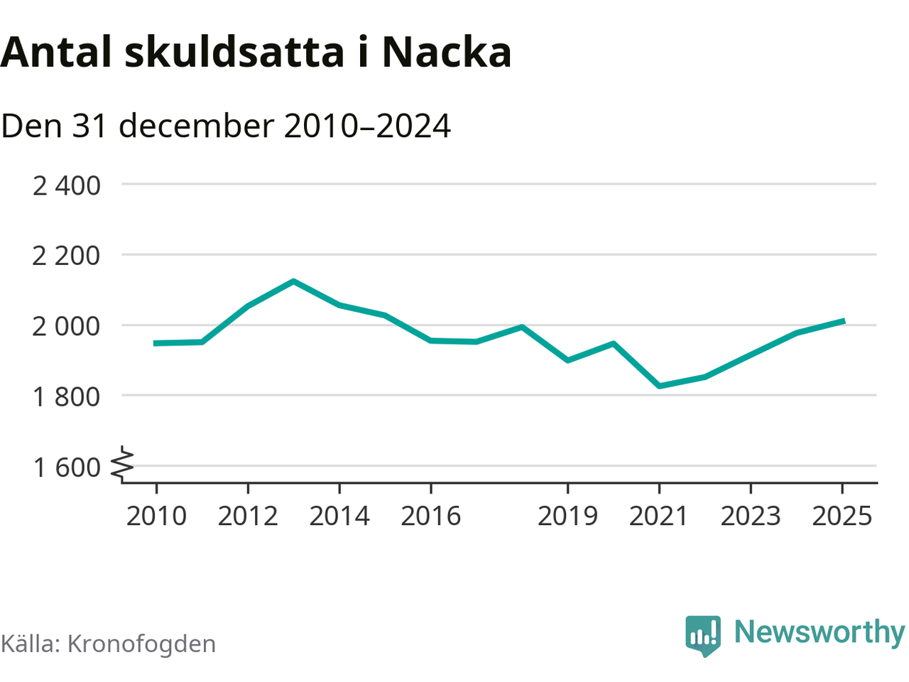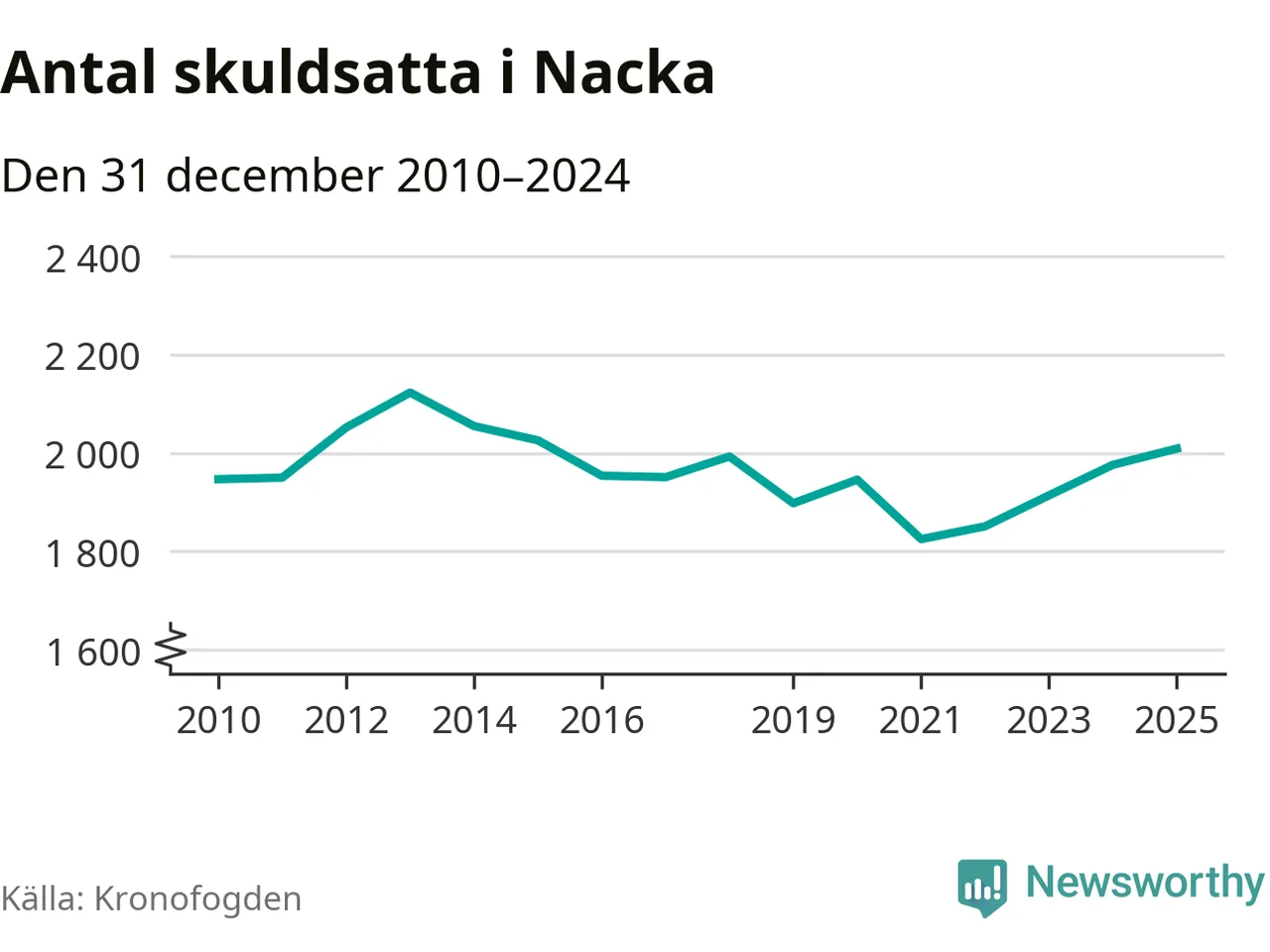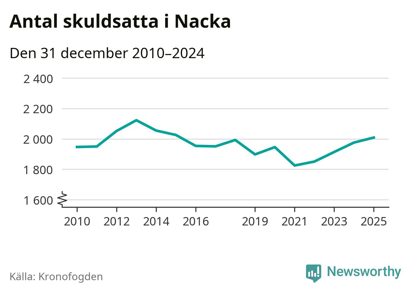 Allt fler Nackabor hamnar hos Kronofogden. Vid årskiftet var 2 009 invånare i kommunen skyldiga totalt 1,9 miljarder kronor. Det är en ökning med 33 personer – eller 2 procent – jämfört med året innan. Det är det högsta antalet sedan 2015.