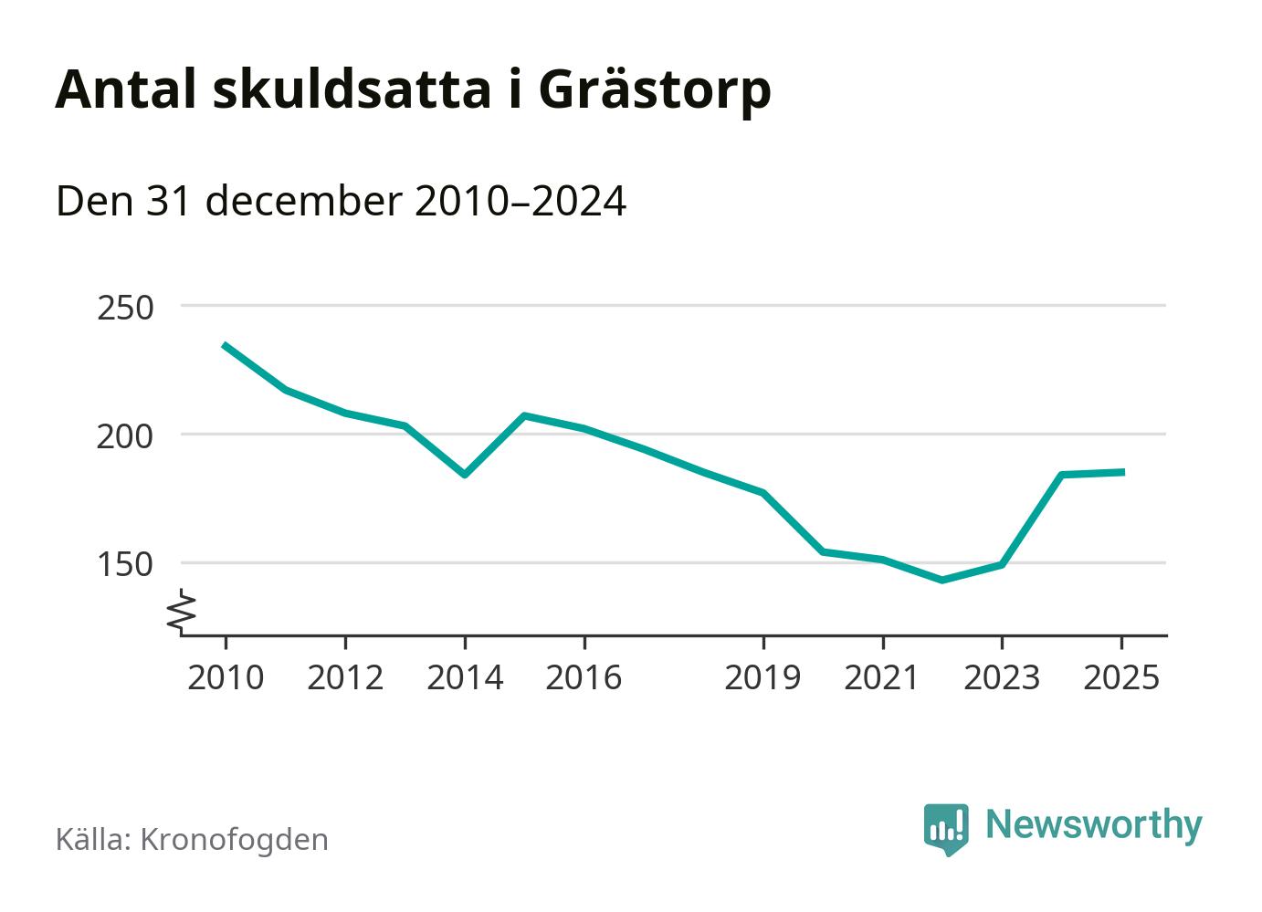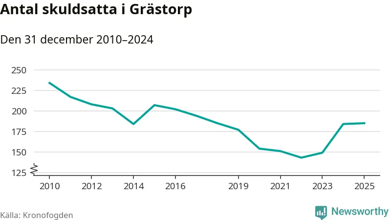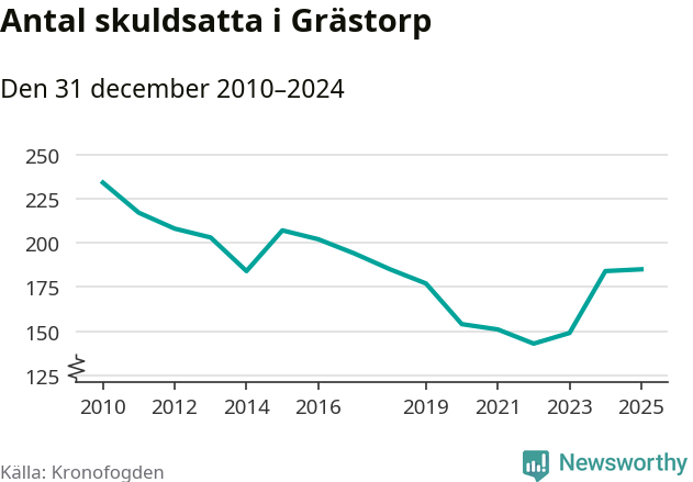 Inte sedan år 2018 har lika många Grästorpsbor varit registrerade hos Kronofogden. Listan toppas av en 57-årig man.