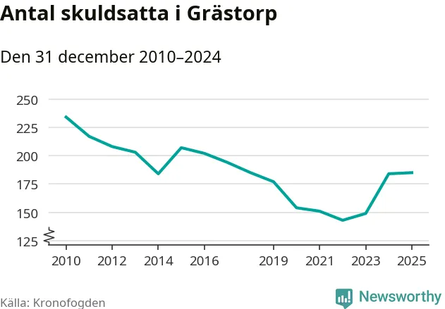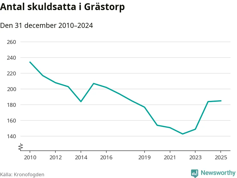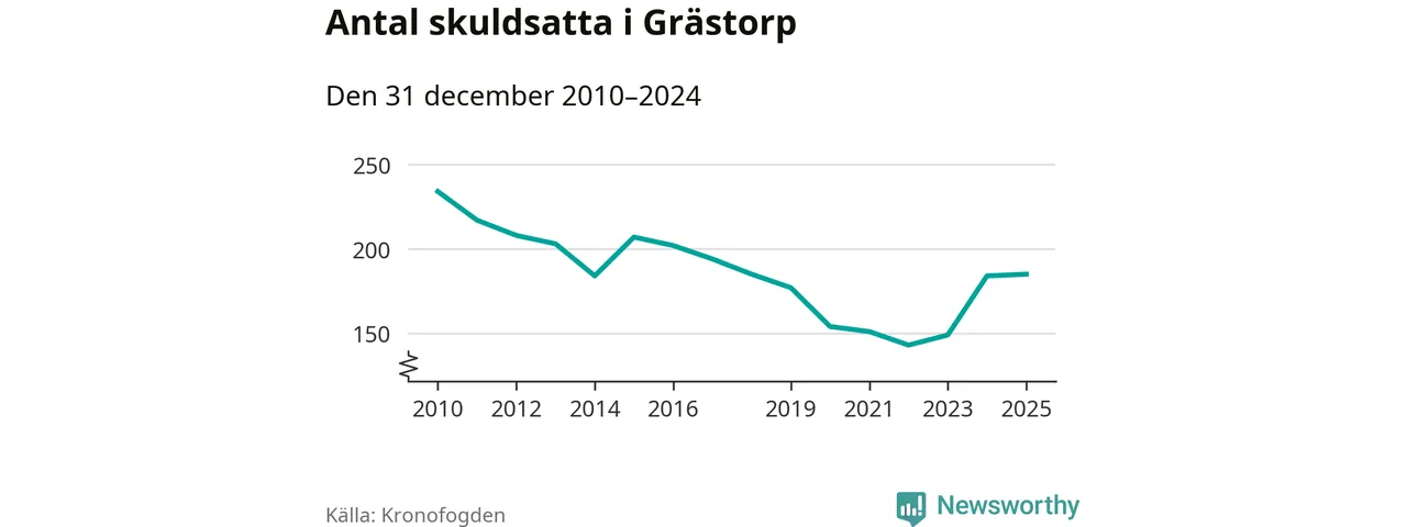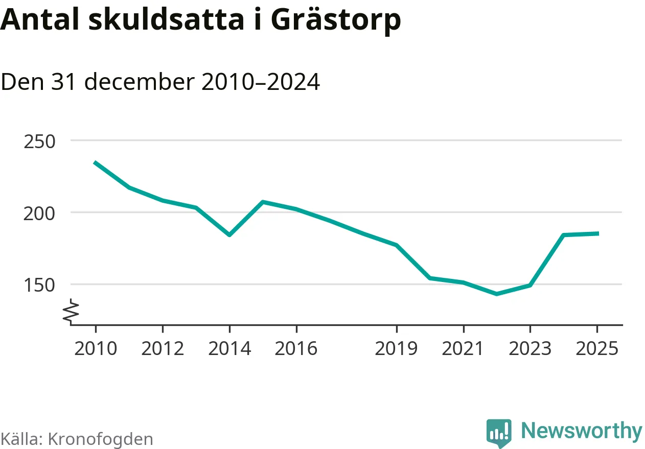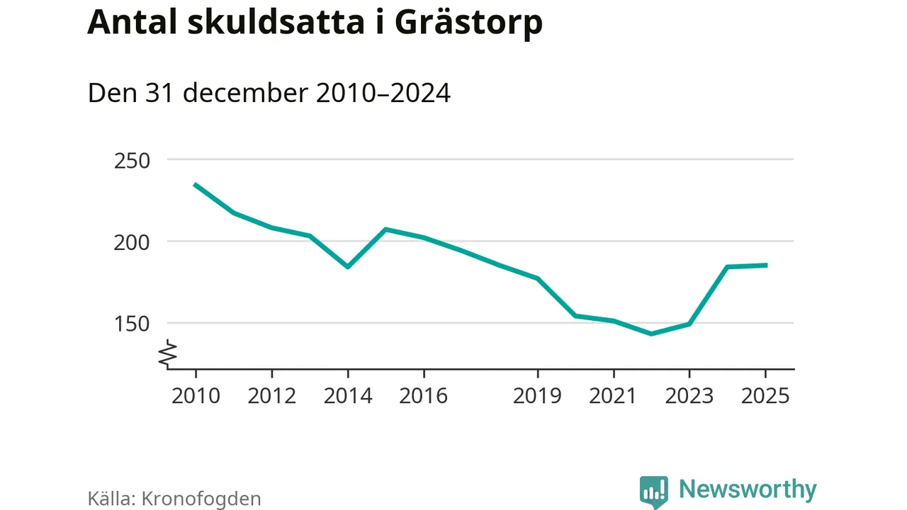 Allt fler Grästorpsbor hamnar hos Kronofogden. Vid årskiftet var 185 invånare i kommunen skyldiga totalt 47,2 miljoner kronor.