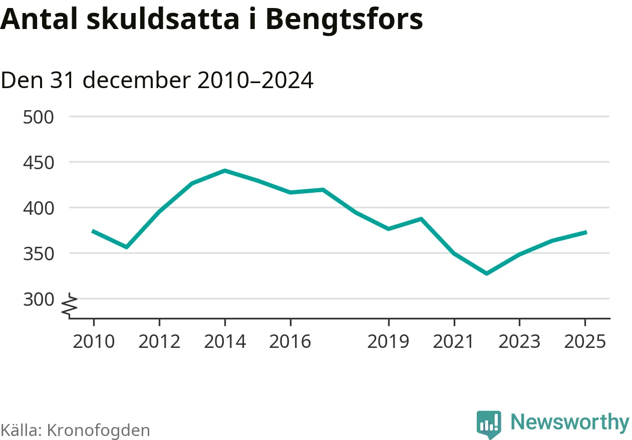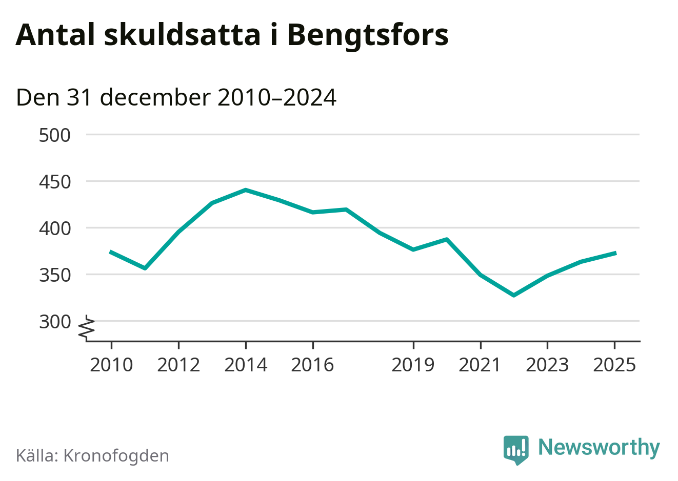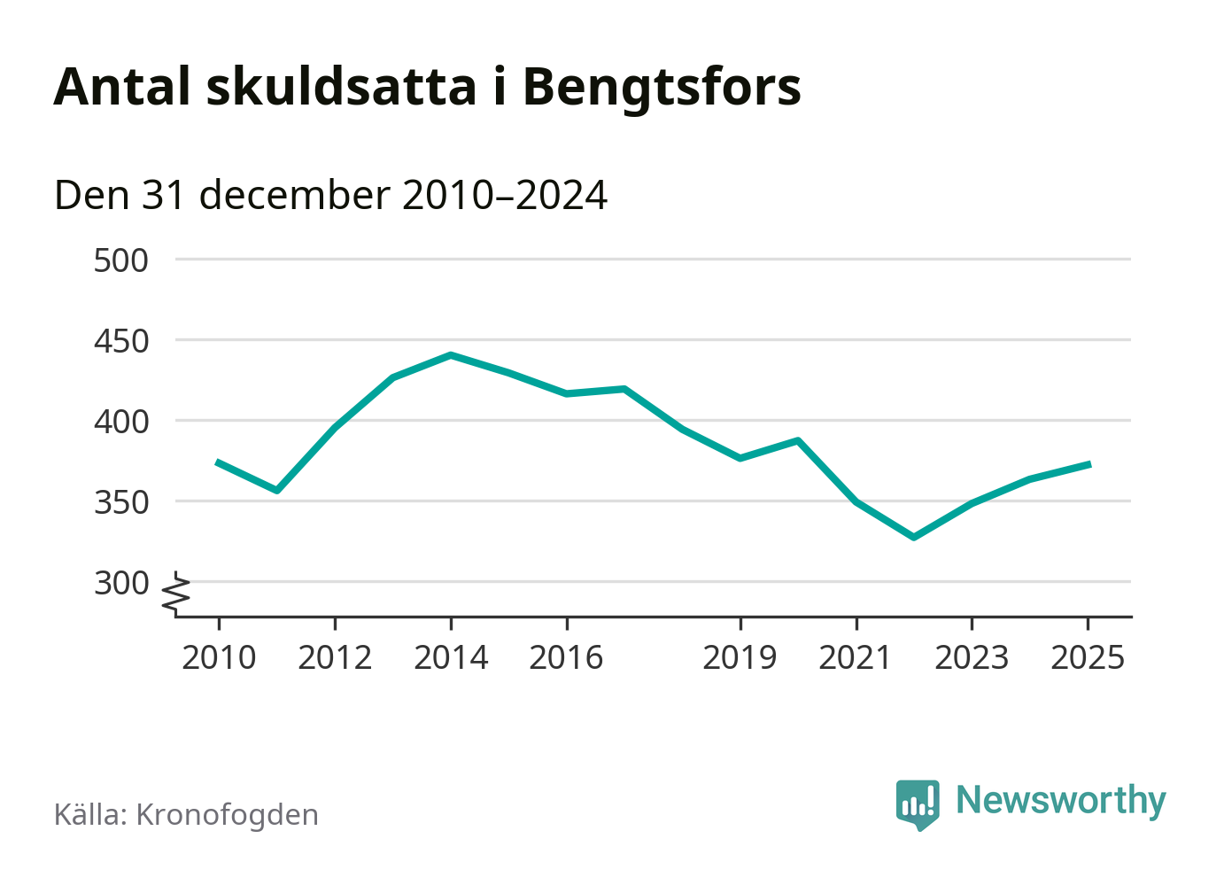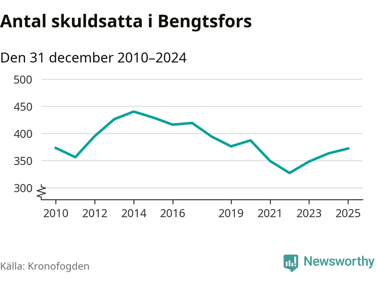Allt fler Bengtsfors­bor hamnar hos Kronofogden. Vid årskiftet var 372 invånare i kommunen skyldiga totalt 94,7 miljoner kronor. Det är en ökning med nio personer jämfört med året innan. Det är det högsta antalet sedan 2020.
