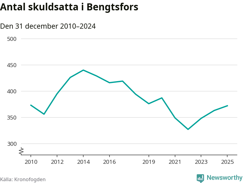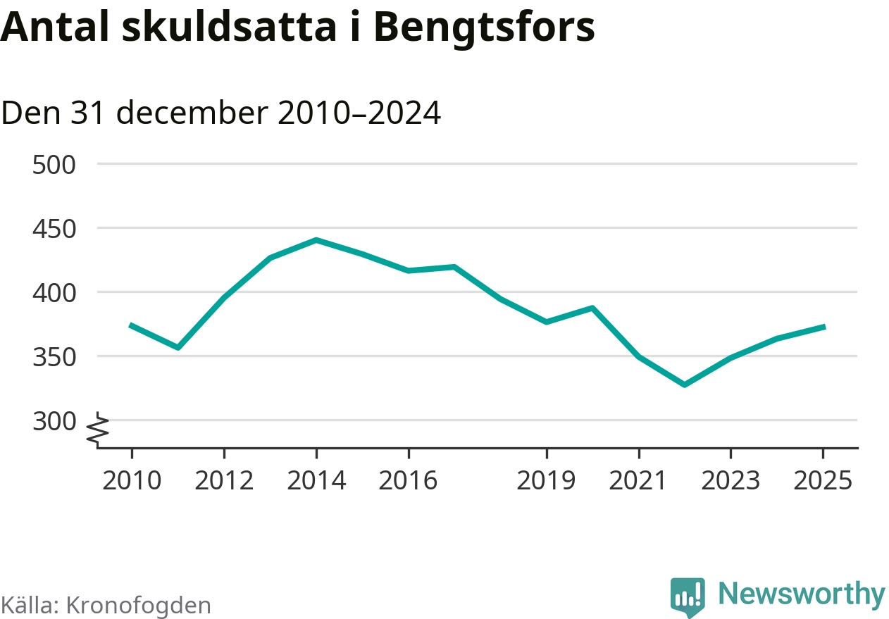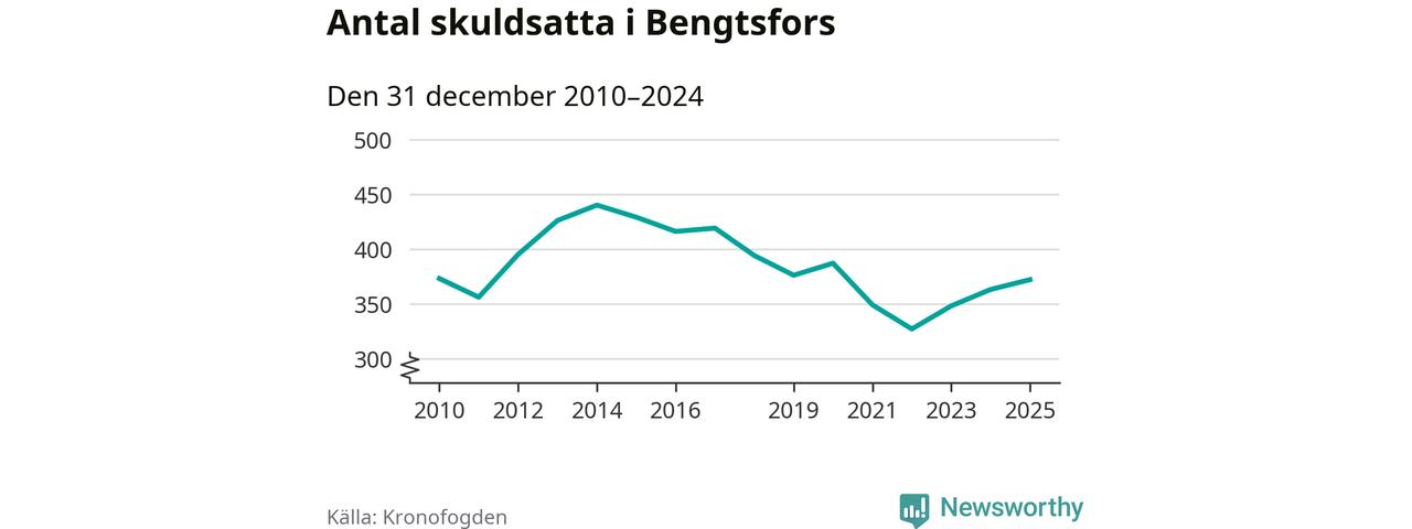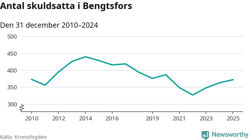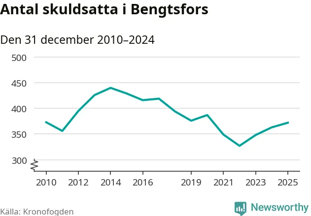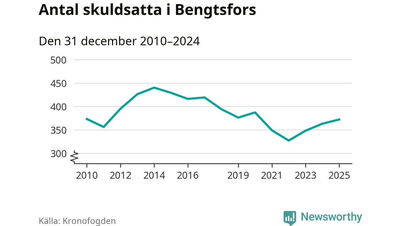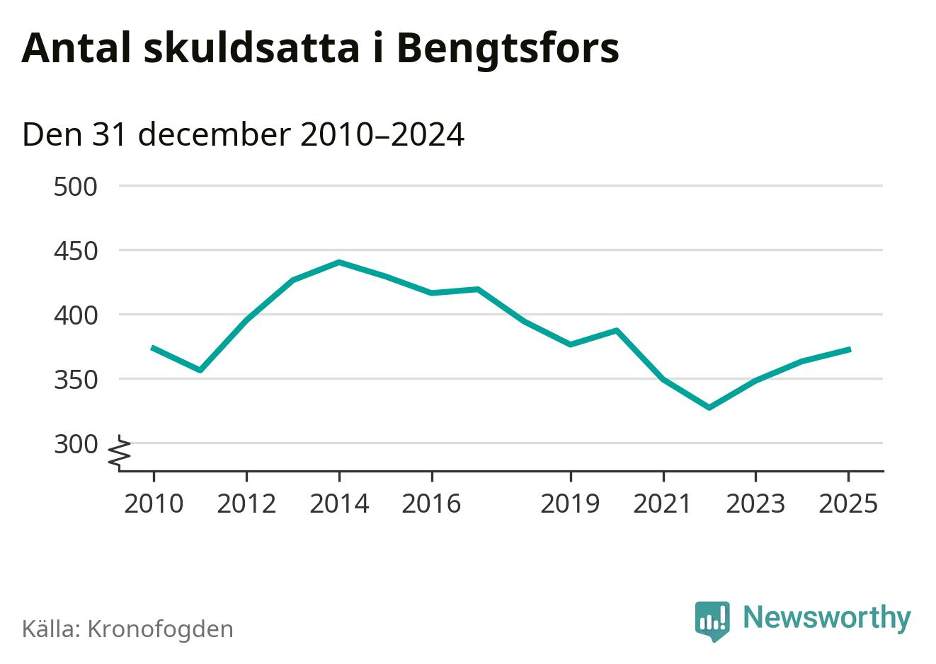 Allt fler Bengtsfors­bor hamnar hos Kronofogden. Vid årskiftet var 372 invånare i kommunen skyldiga totalt 94,7 miljoner kronor. Det är en ökning med nio personer jämfört med året innan. Det är det högsta antalet sedan 2020.