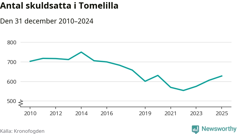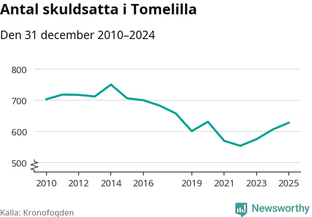 Allt fler Tomelilla­bor hamnar hos Kronofogden. Vid årskiftet var 628 invånare i kommunen skyldiga totalt 361,6 miljoner kronor. Det är en ökning med 22 personer – eller 4 procent – jämfört med året innan. Det är det högsta antalet sedan 2020.