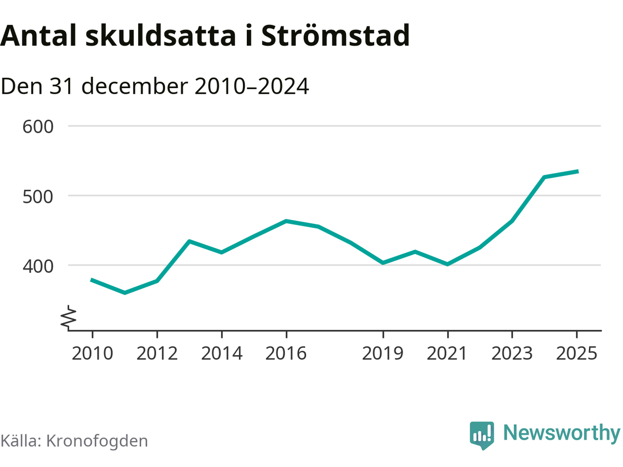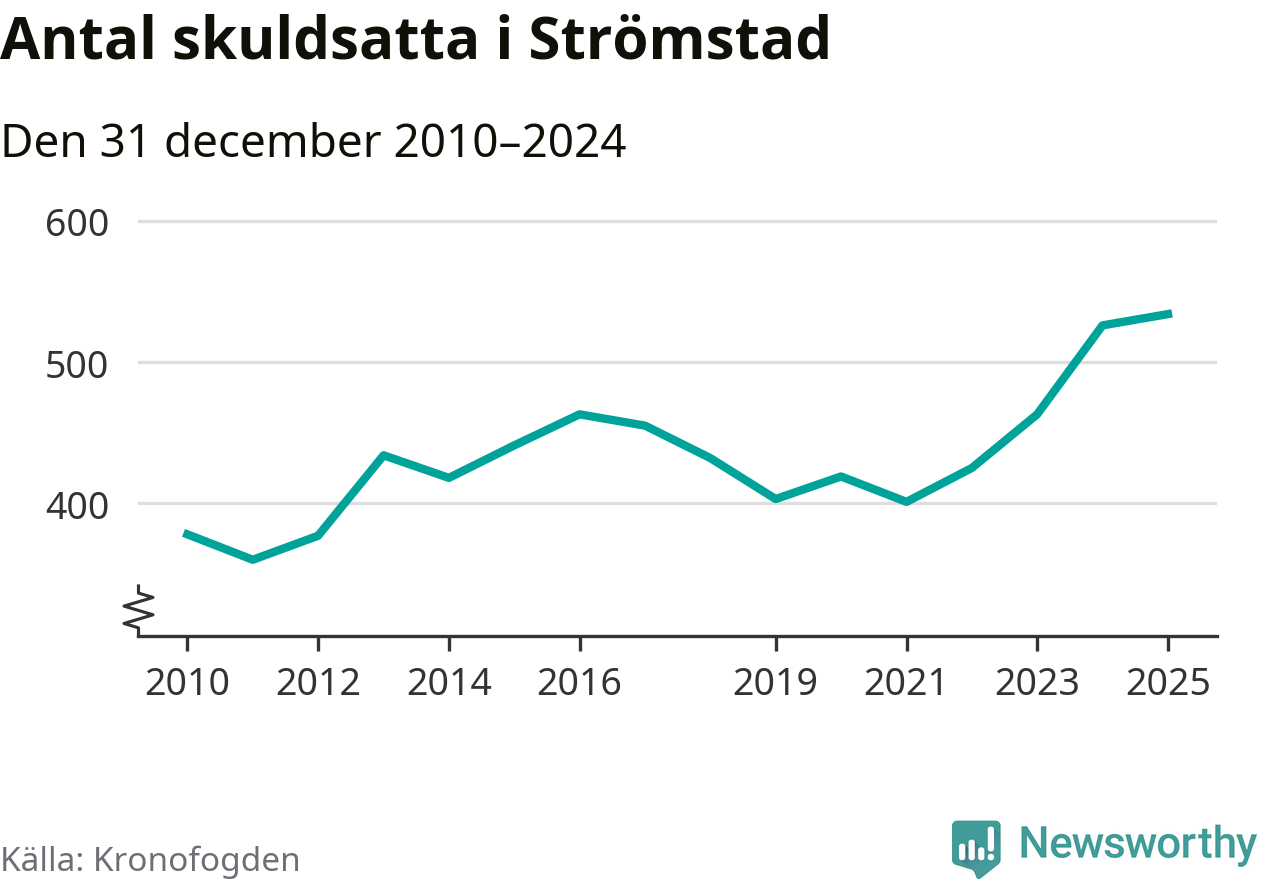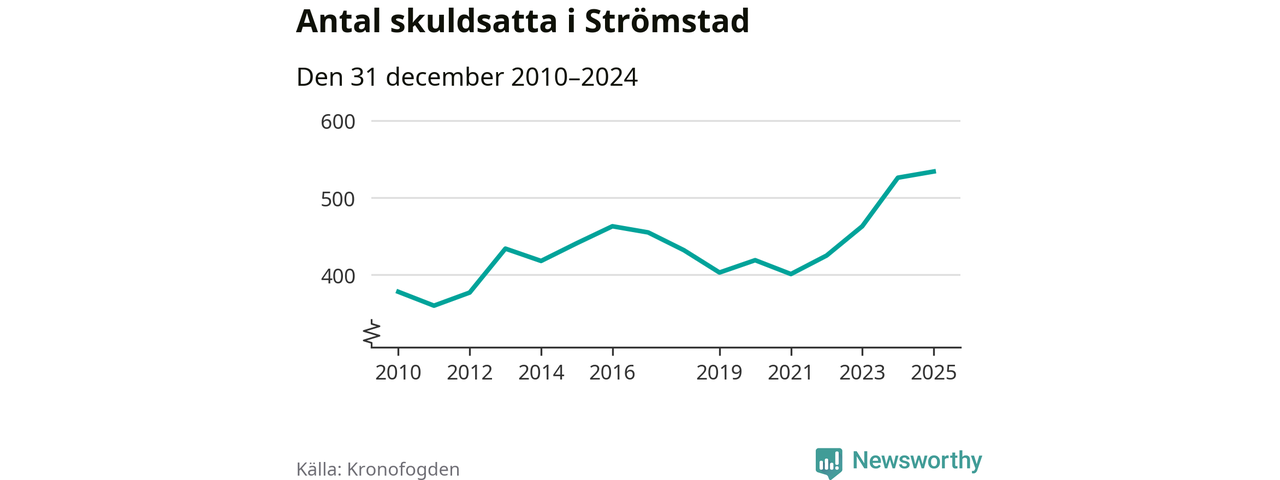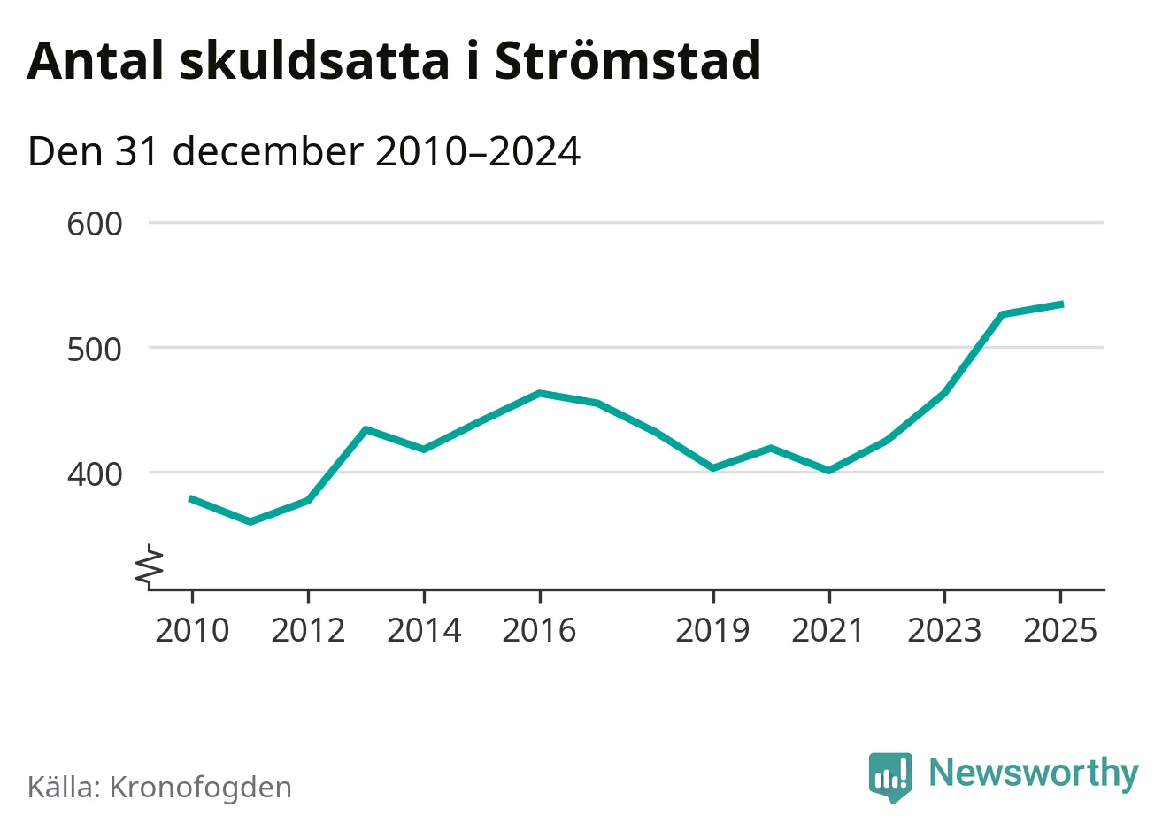 Inte sedan åtminstone 2010 har så många Strömstadsbor hamnat hos Kronofogden. Vid årskiftet var 534 invånare i kommunen skyldiga totalt 320,3 miljoner kronor. Det är en ökning med åtta personer jämfört med året innan.