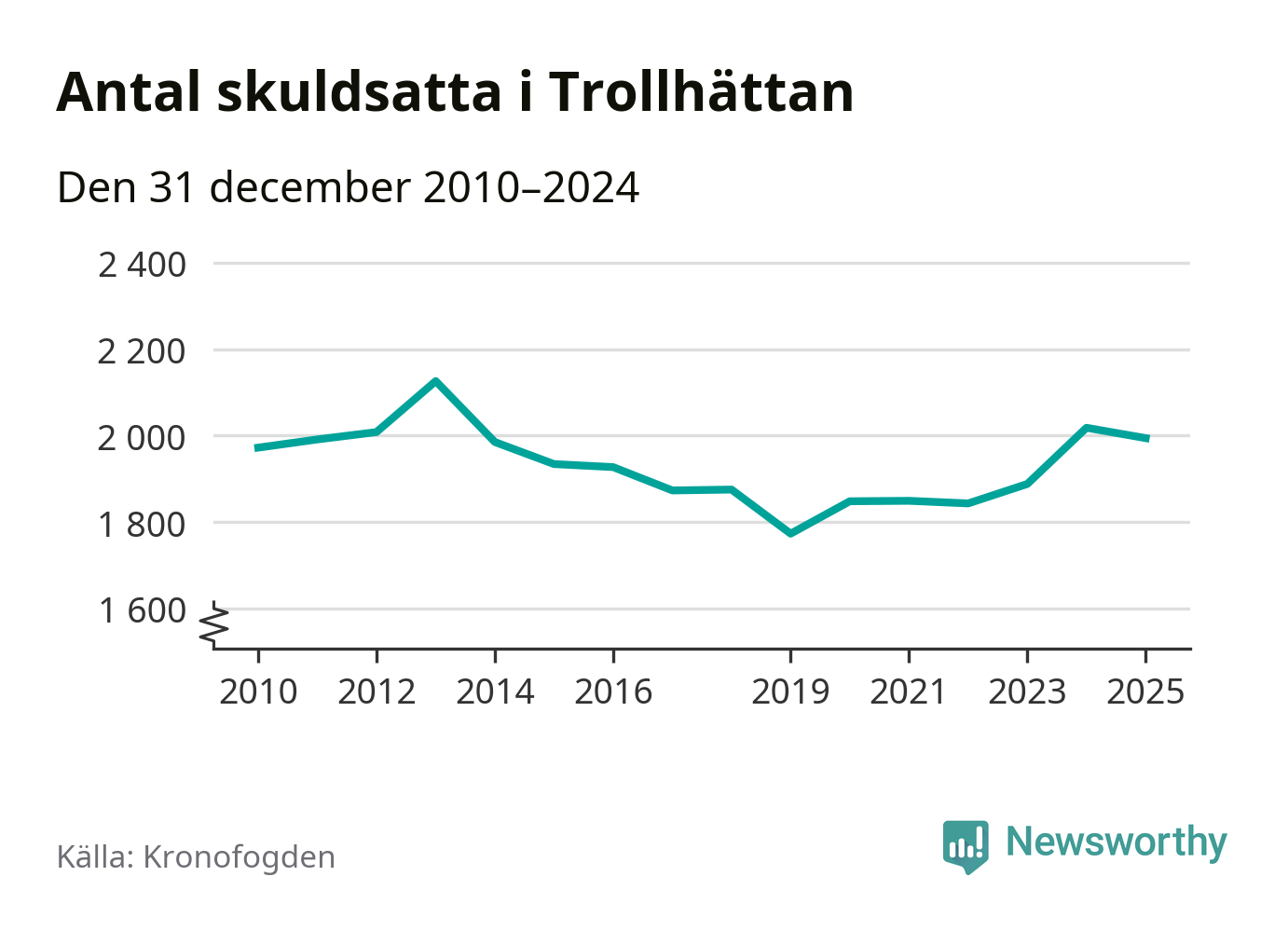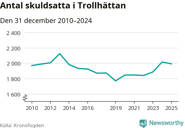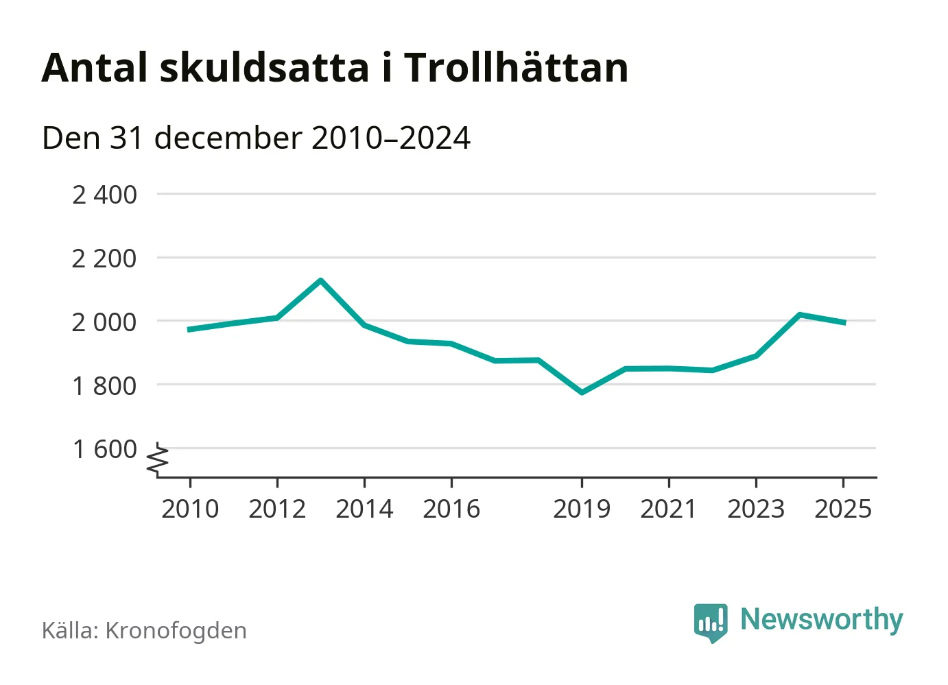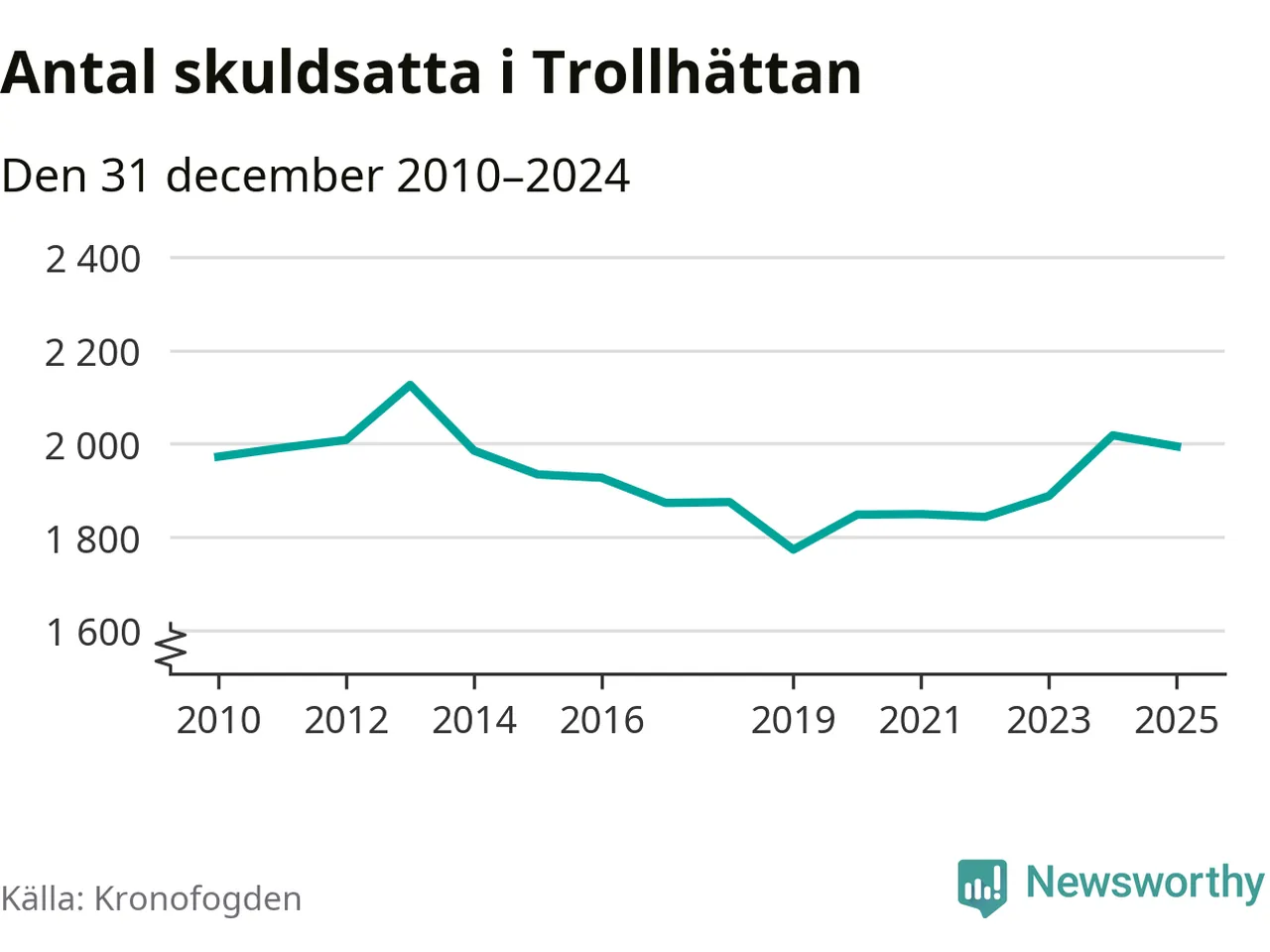 Antalet Trollhättebor hos Kronofogden minskade i fjol. Vid årskiftet var 1 994 invånare i kommunen skyldiga totalt 784 miljoner kronor. Det är en minskning med 24 personer – eller 1 procent – jämfört med året innan.