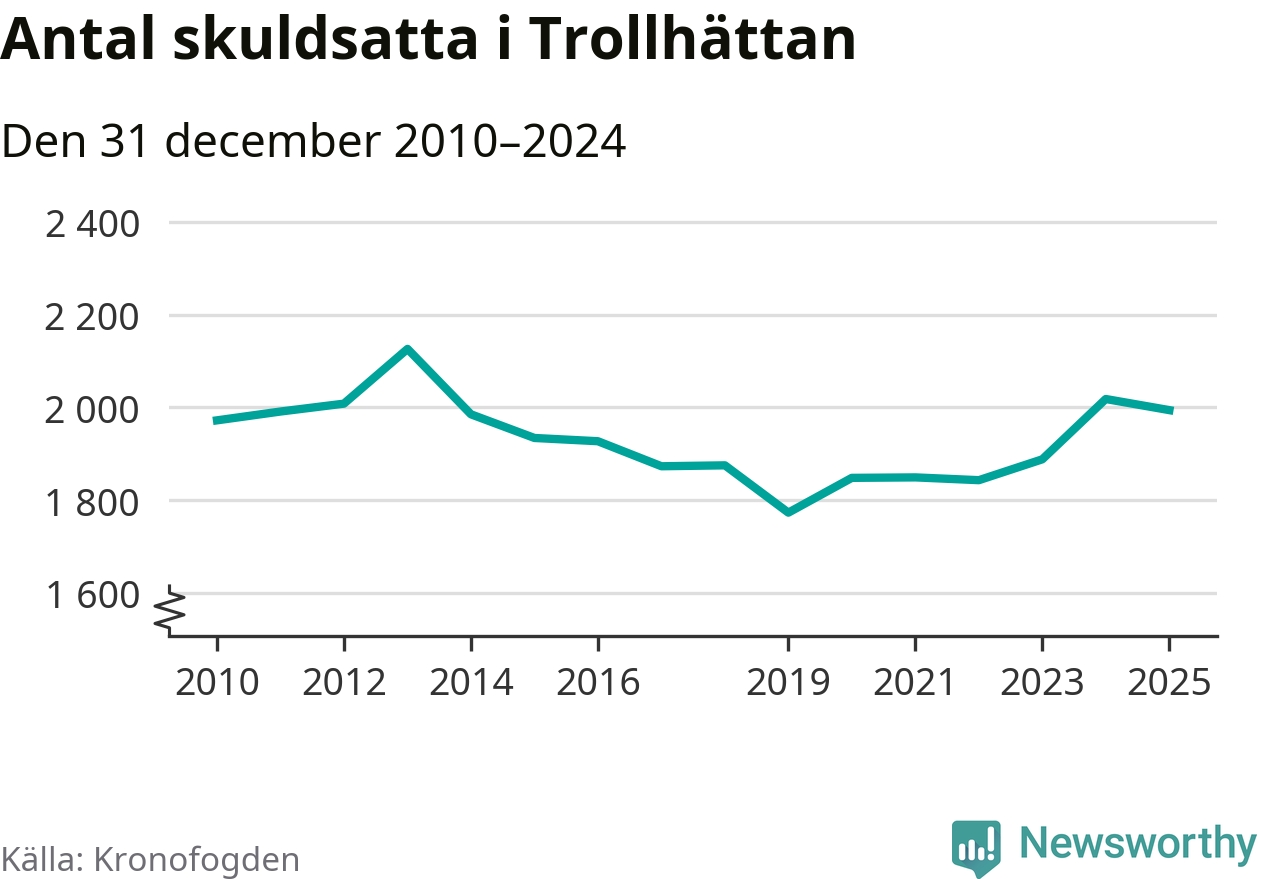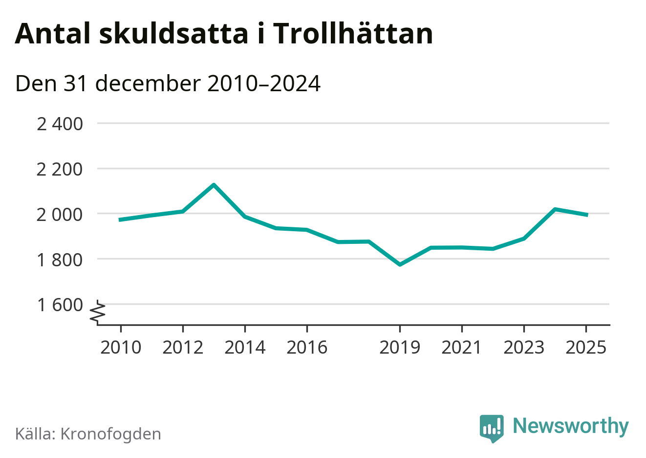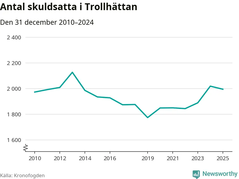 Antalet Trollhättebor hos Kronofogden minskade i fjol. Vid årskiftet var 1 994 invånare i kommunen skyldiga totalt 784 miljoner kronor. Det är en minskning med 24 personer – eller 1 procent – jämfört med året innan.