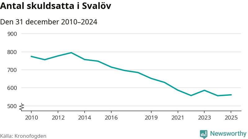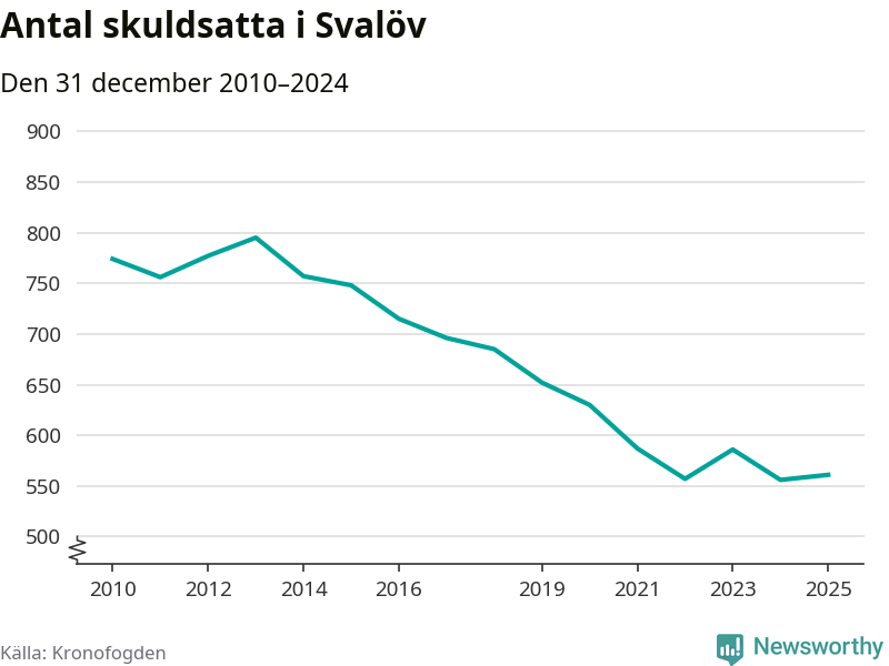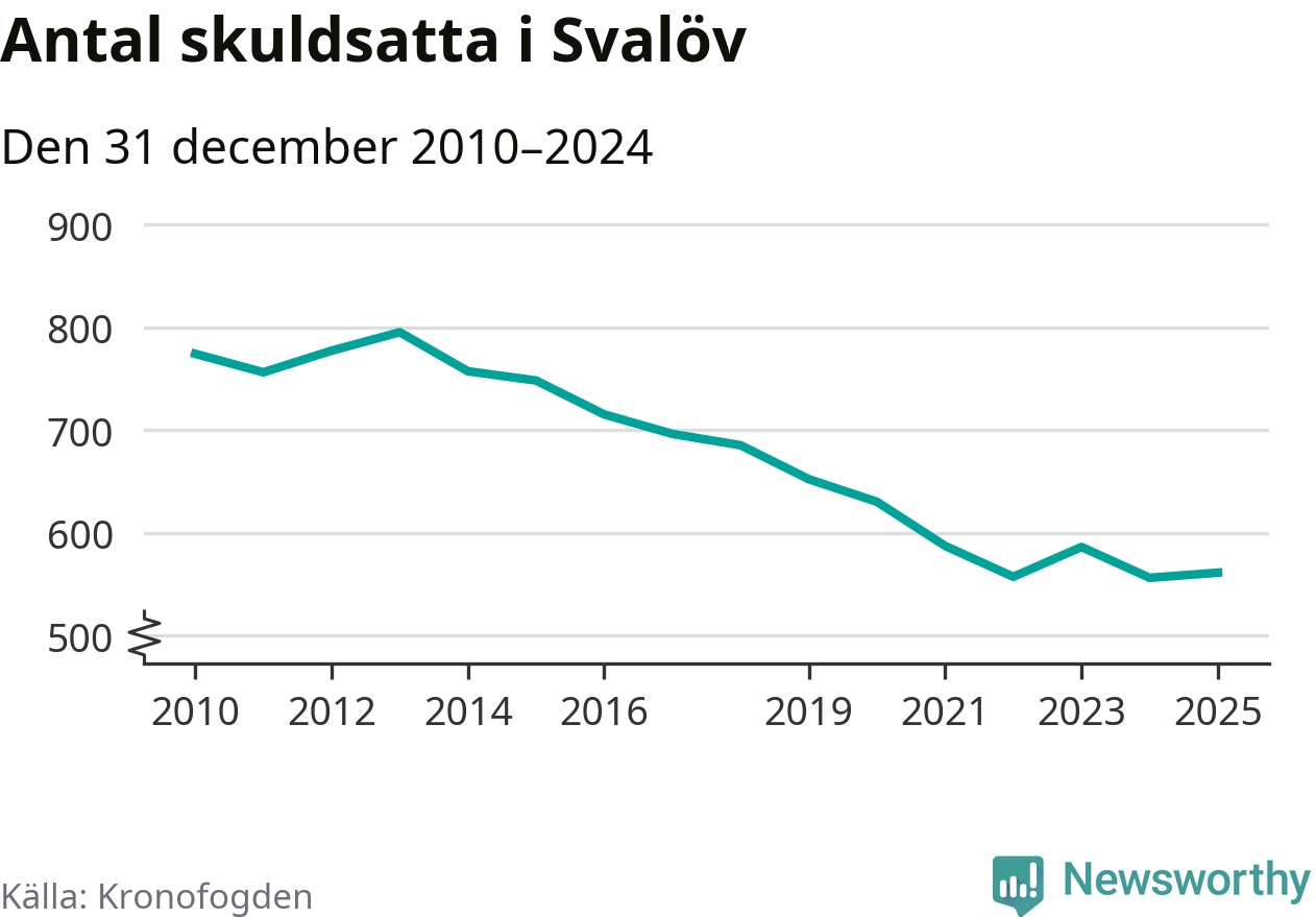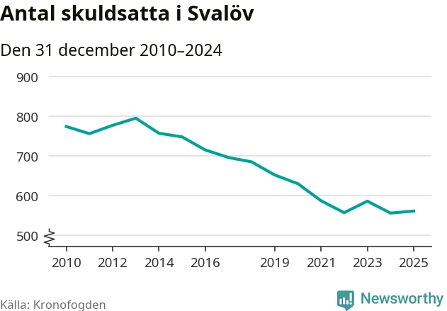 Antalet Svalövsbor hos Kronofogden är relativt oförändrat jämfört med i fjol. Vid årskiftet var 561 invånare i kommunen skyldiga totalt 165,7 miljoner kronor.