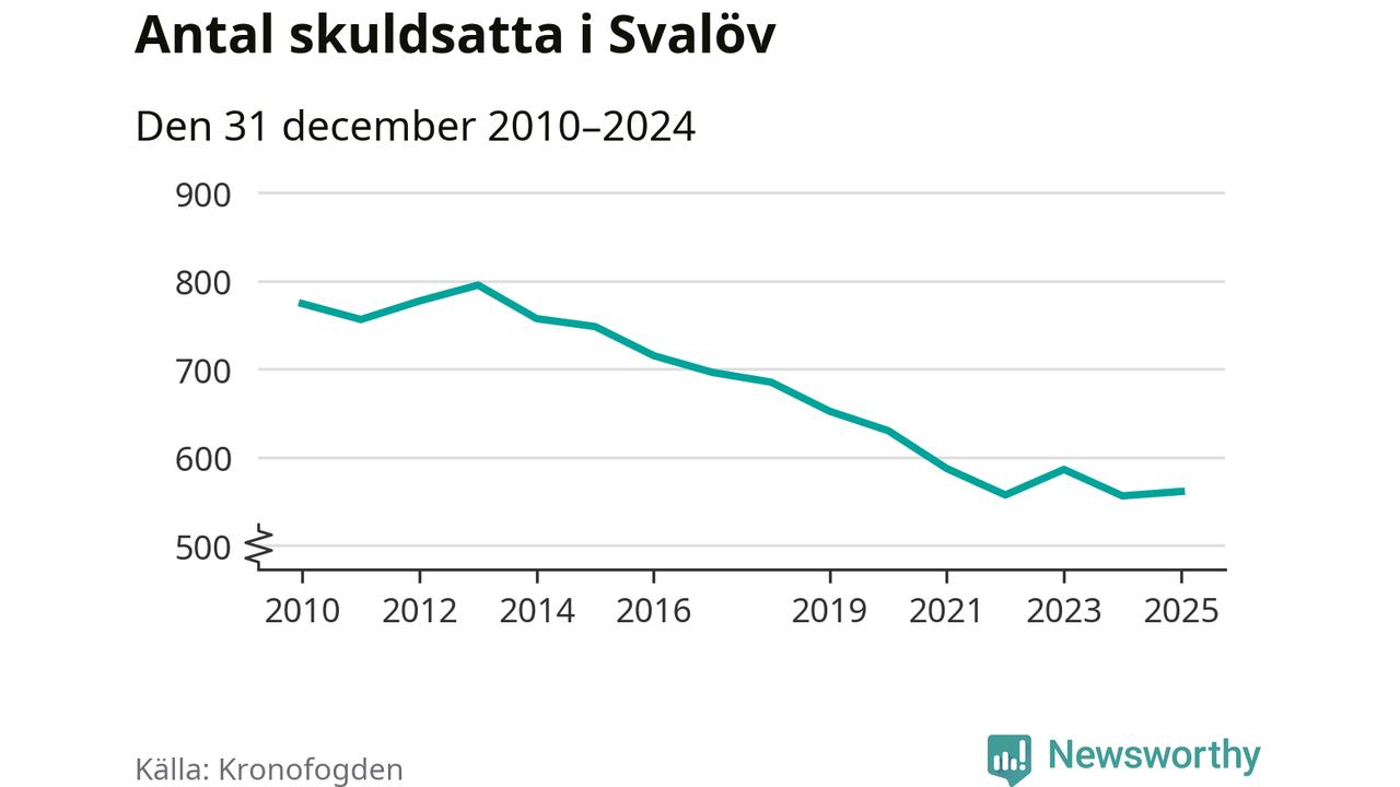 Vid årskiftet var 5 procent av alla Svalövsbor över 18 år registrerade hos Kronofogden. Störst andel skuldsatta i länet finns i Perstorp (9 procent), medan den lägsta andelen finns i Lomma (1 procent).