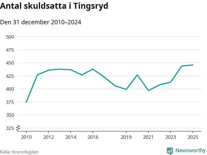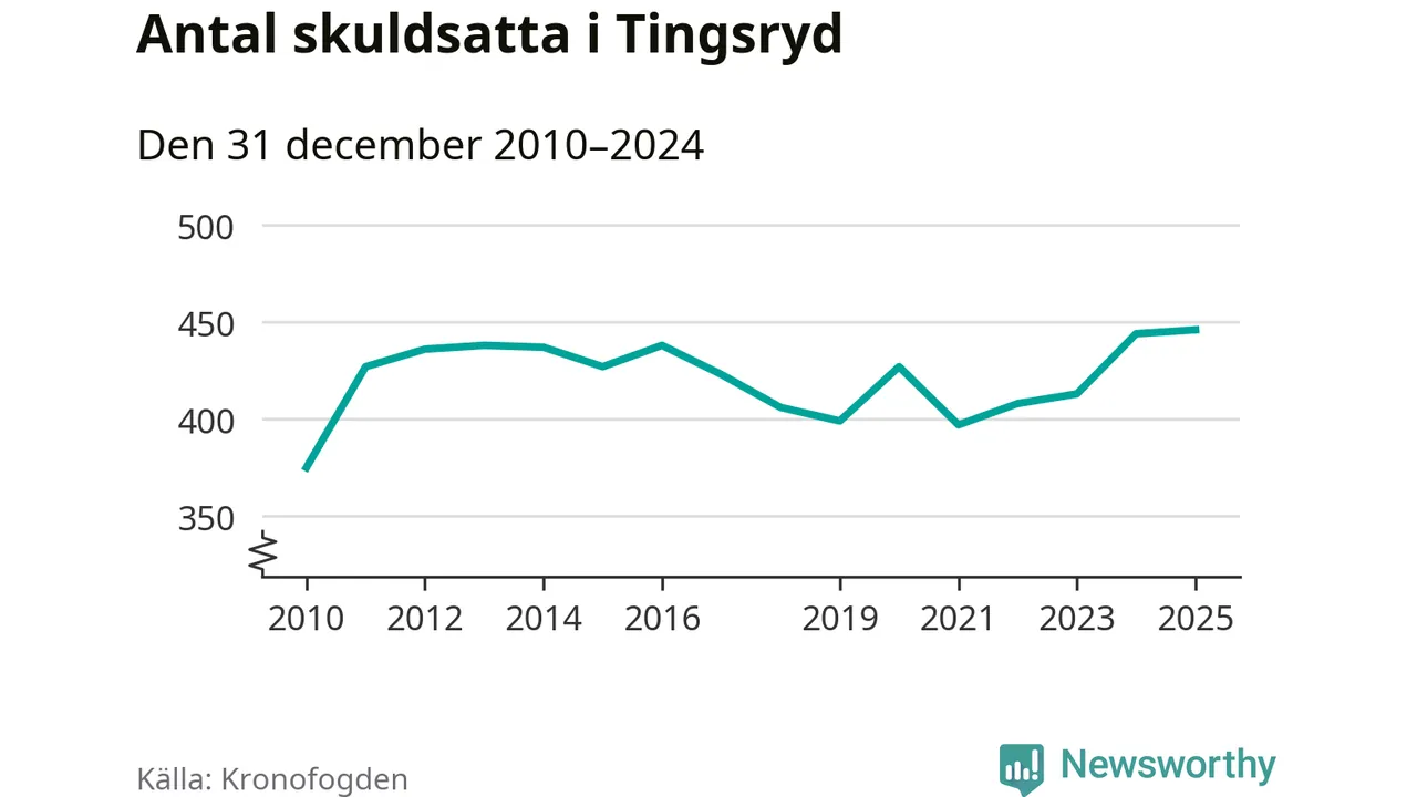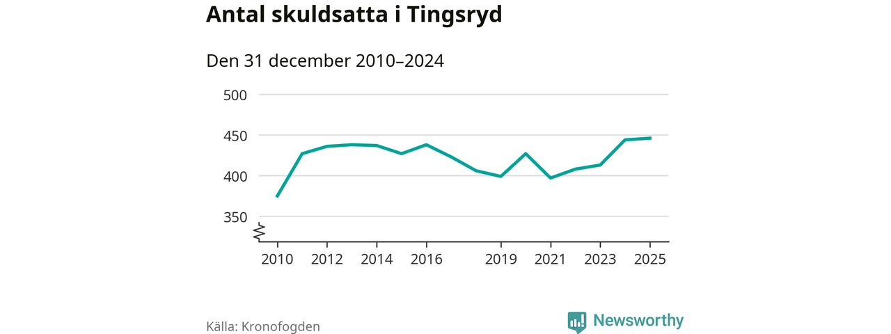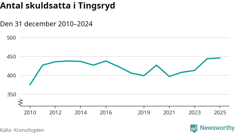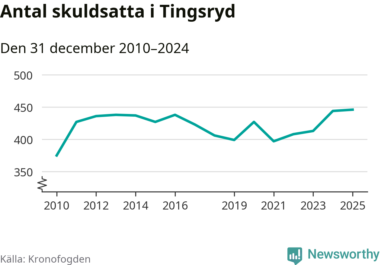 Inte sedan åtminstone 2010 har så många Tingsrydsbor hamnat hos Kronofogden. Vid årskiftet var 446 invånare i kommunen skyldiga totalt 118,4 miljoner kronor.