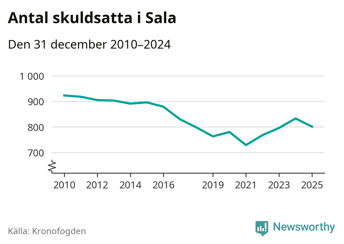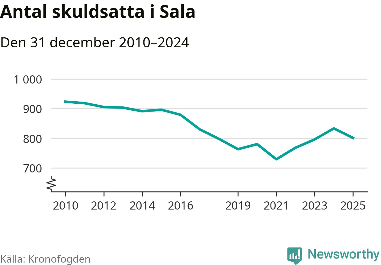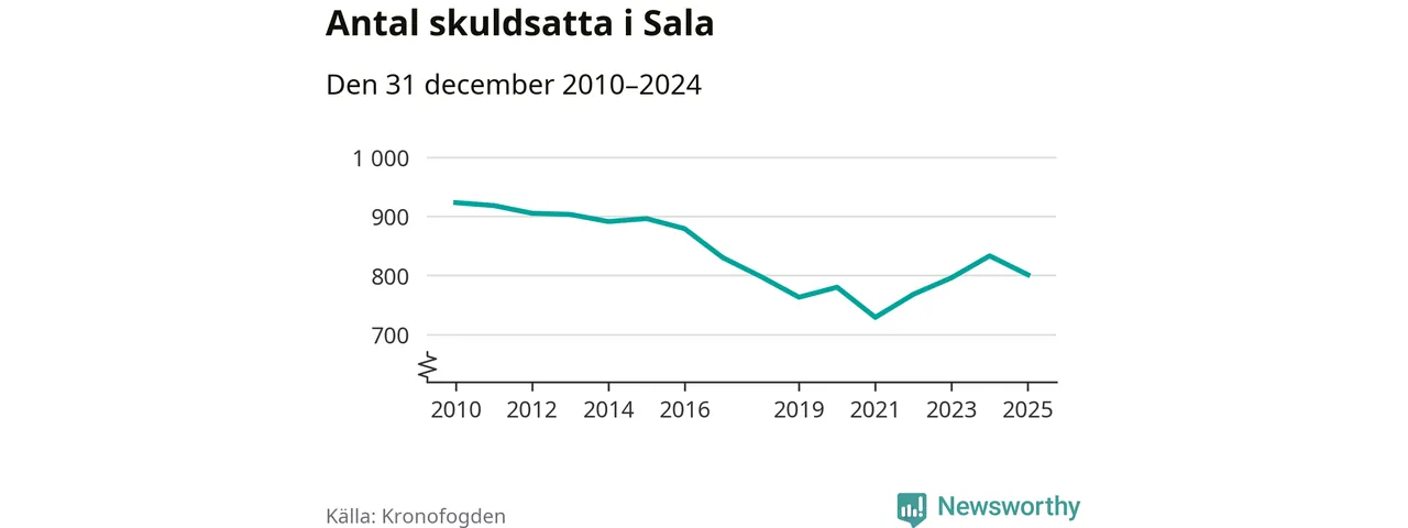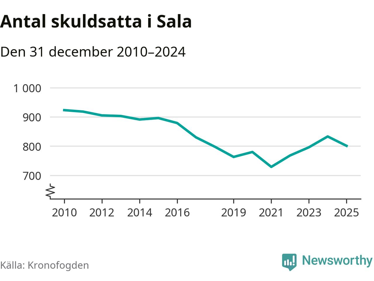 Antalet Salabor hos Kronofogden minskade i fjol. Vid årskiftet var 801 invånare i kommunen skyldiga totalt 550,7 miljoner kronor. Det är en minskning med 32 personer – eller 4 procent – jämfört med året innan.