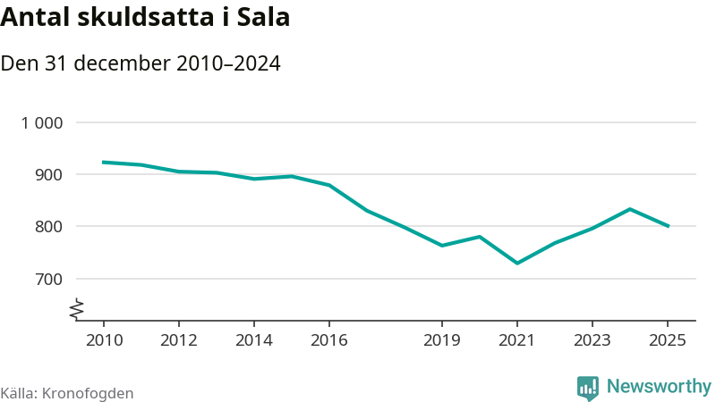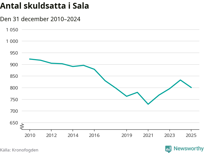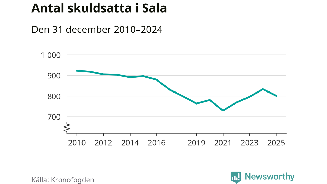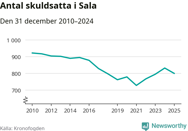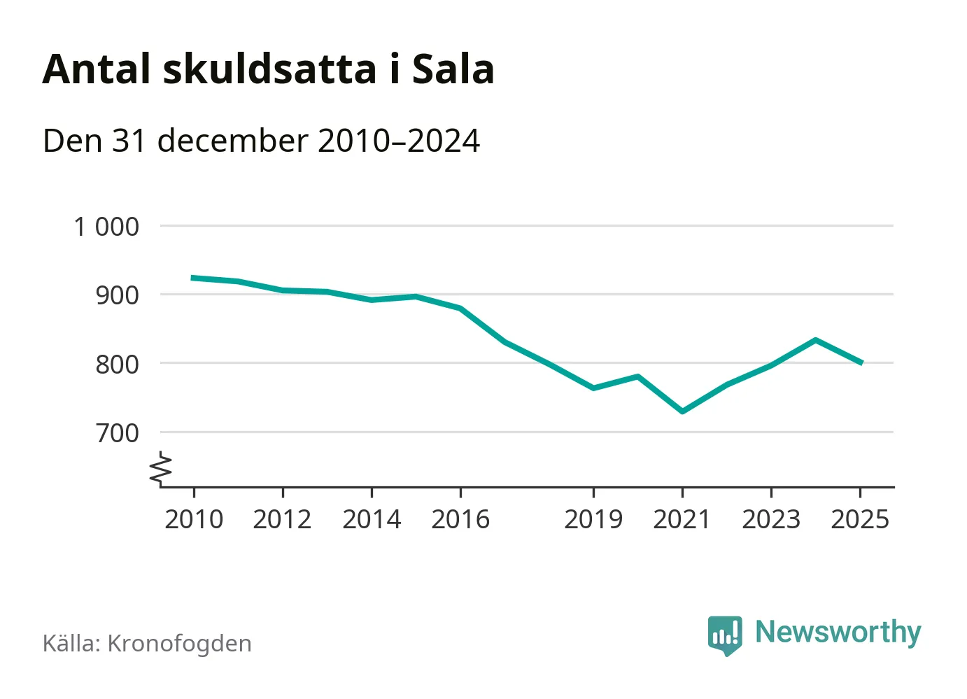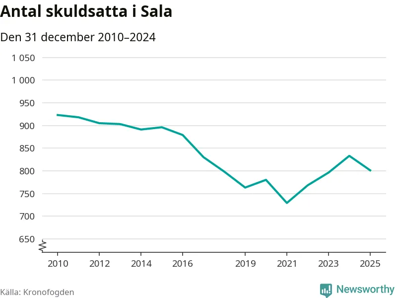 Antalet Salabor hos Kronofogden minskade i fjol. Vid årskiftet var 801 invånare i kommunen skyldiga totalt 550,7 miljoner kronor. Det är en minskning med 32 personer – eller 4 procent – jämfört med året innan.