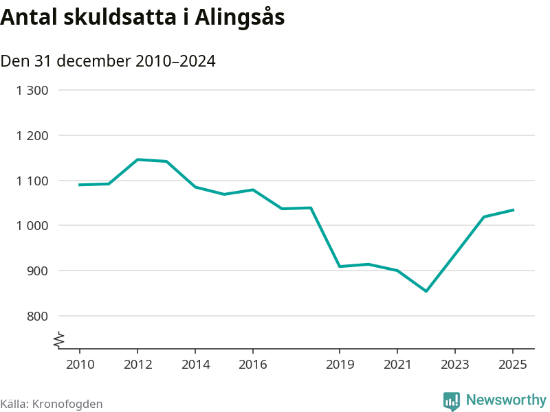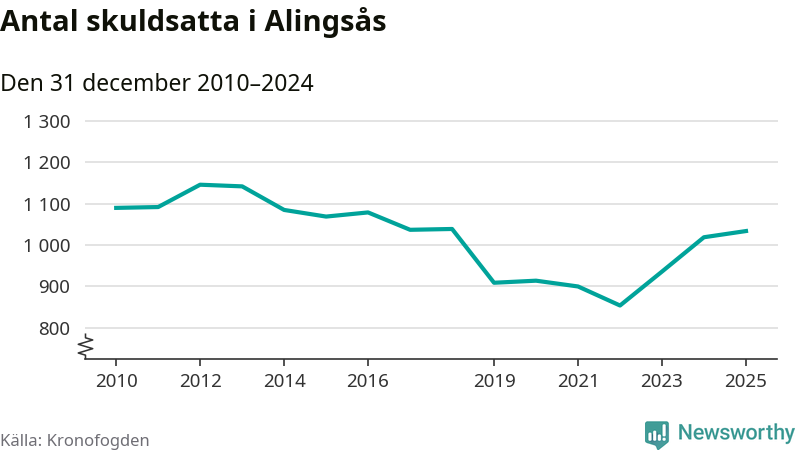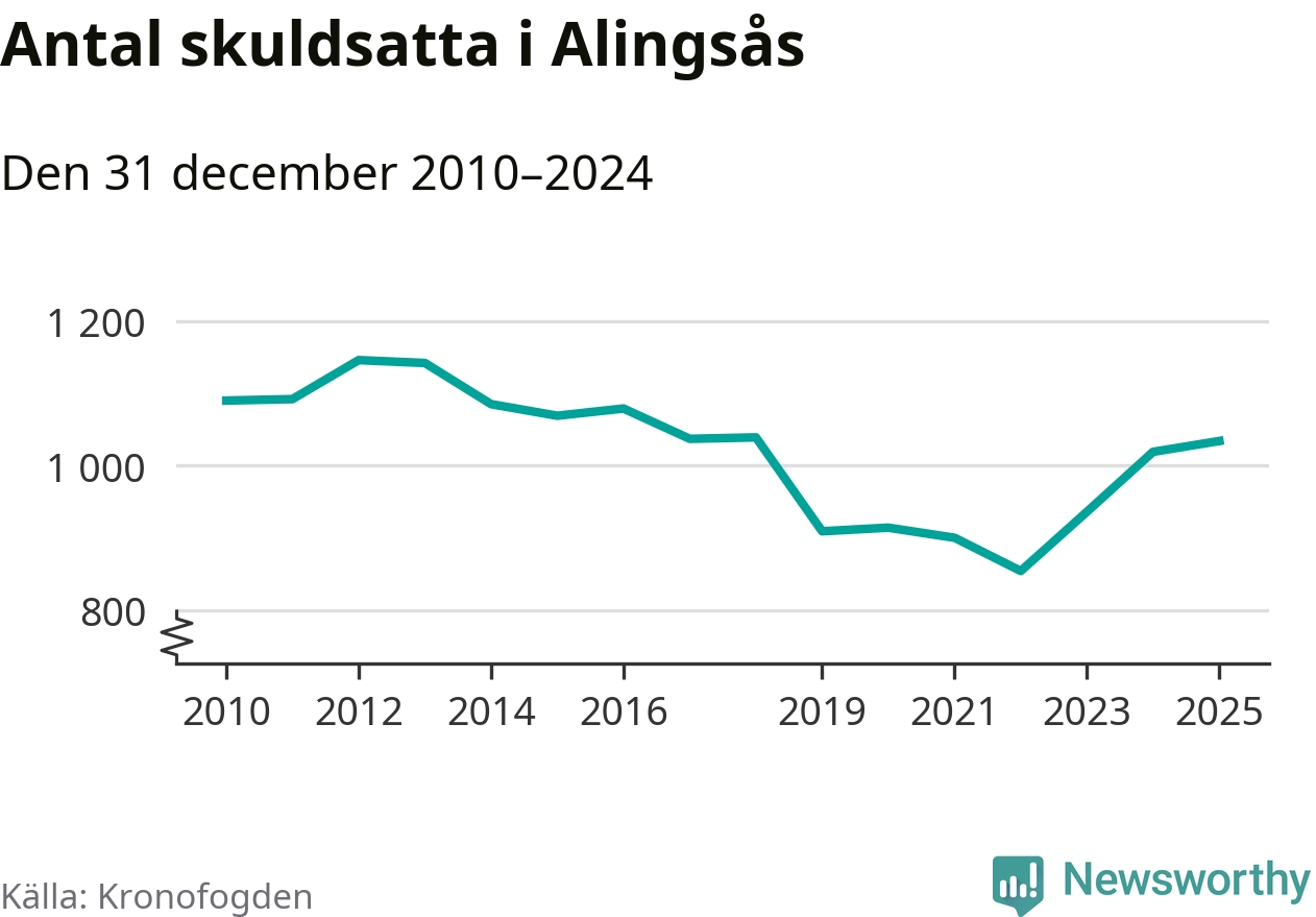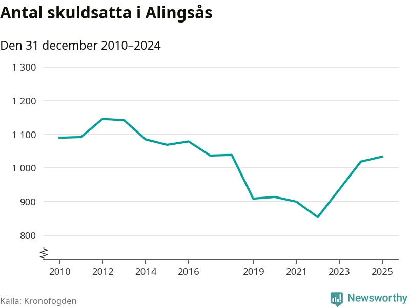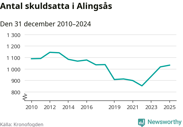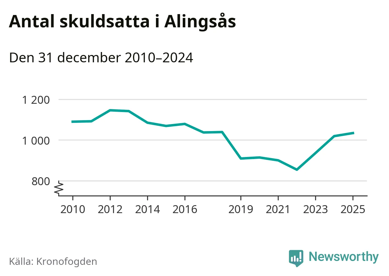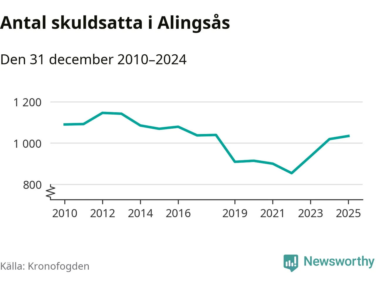 Allt fler Alingsås­bor hamnar hos Kronofogden. Vid årskiftet var 1 034 invånare i kommunen skyldiga totalt 293,9 miljoner kronor. Det är en ökning med 15 personer – eller 1 procent – jämfört med året innan. Det är det högsta antalet sedan 2018.