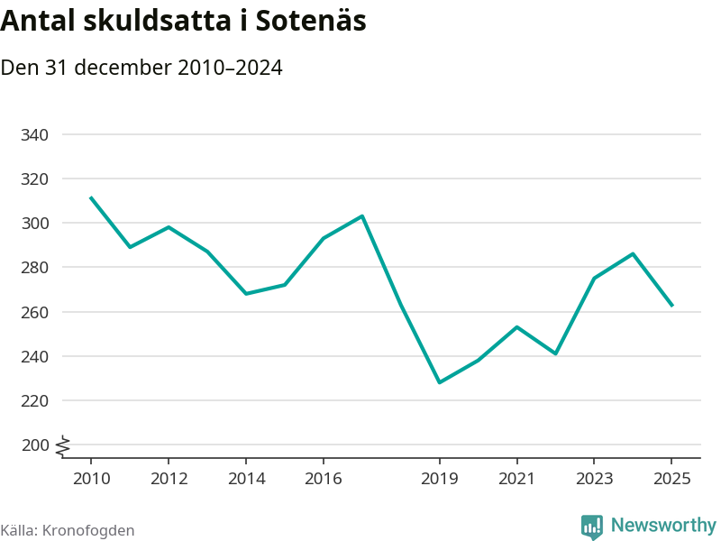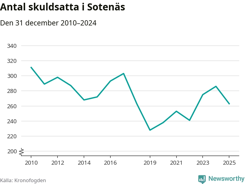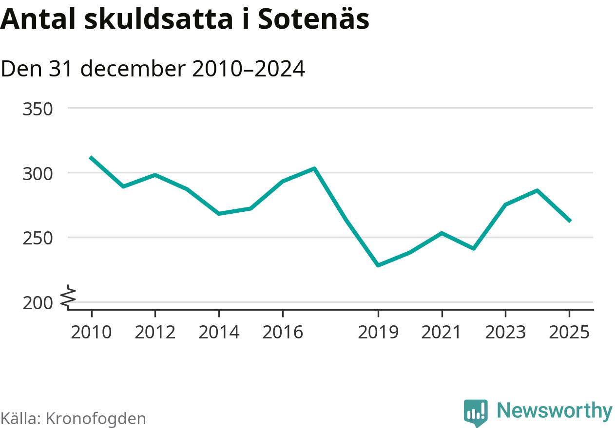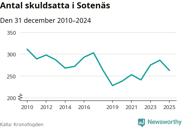 Antalet Sotenäsbor hos Kronofogden minskade i fjol. Vid årskiftet var 263 invånare i kommunen skyldiga totalt 140,9 miljoner kronor. Det är en minskning med 23 personer – eller 8 procent – jämfört med året innan.