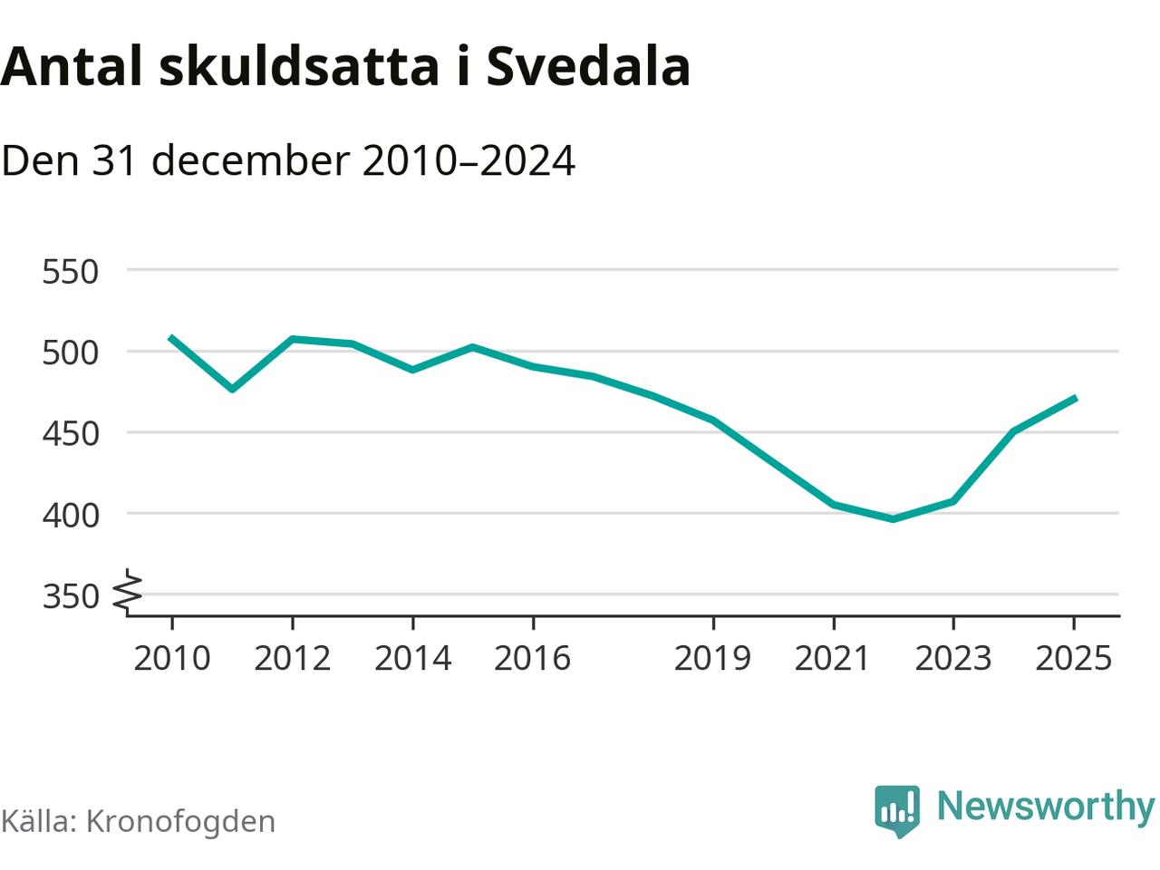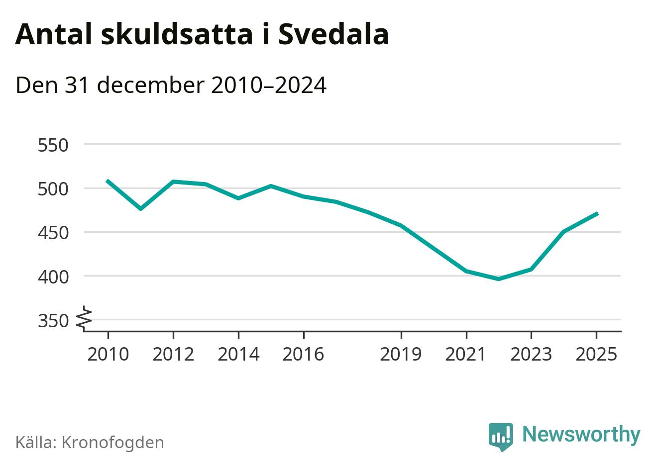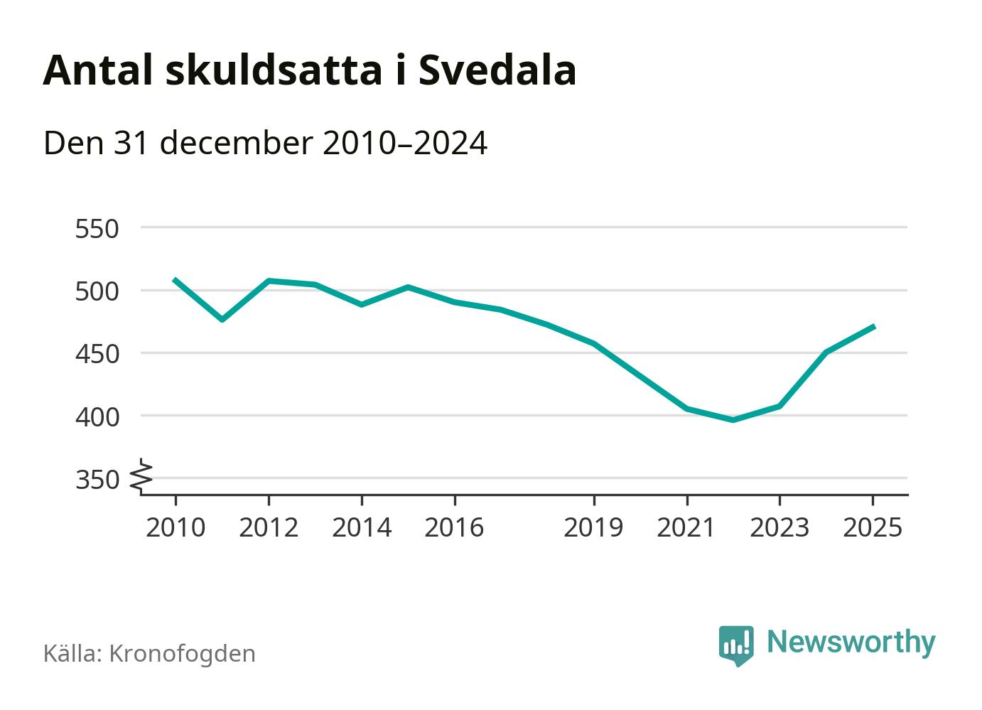 Allt fler Svedala­bor hamnar hos Kronofogden. Vid årskiftet var 470 invånare i kommunen skyldiga totalt 167,5 miljoner kronor. Det är en ökning med 20 personer – eller 4 procent – jämfört med året innan. Det är det högsta antalet sedan 2018.