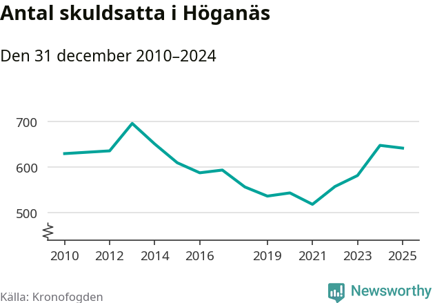 Antalet Höganäsbor hos Kronofogden är relativt oförändrat jämfört med i fjol. Vid årskiftet var 641 invånare i kommunen skyldiga totalt 278,8 miljoner kronor.