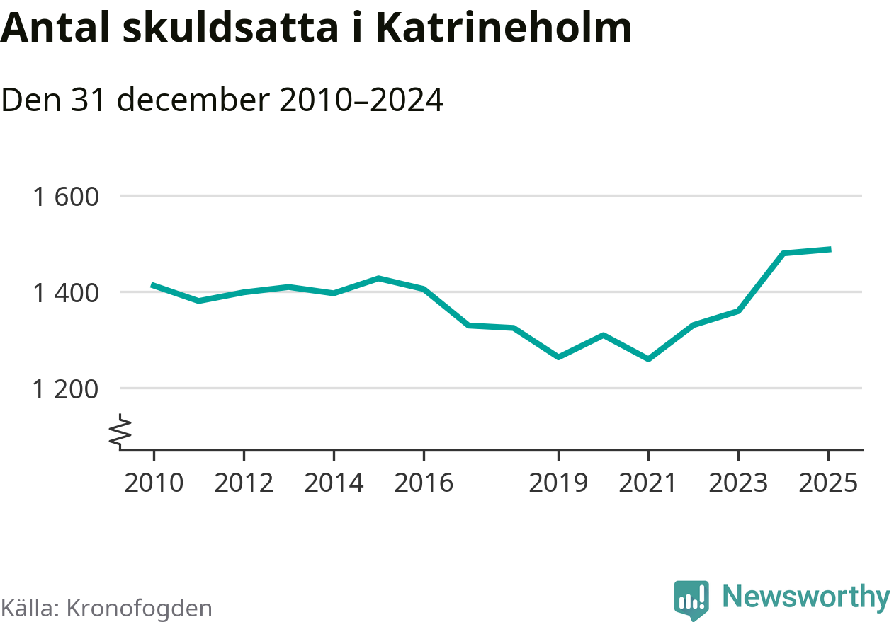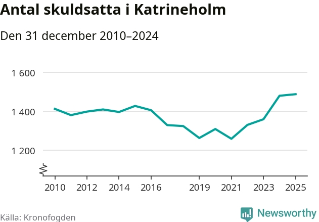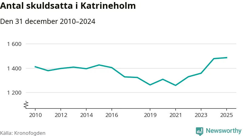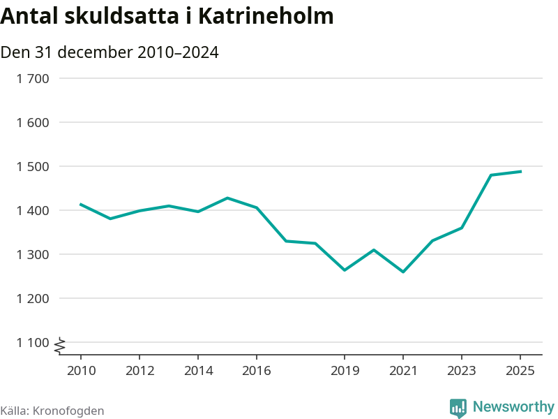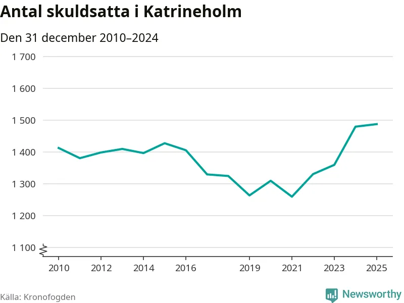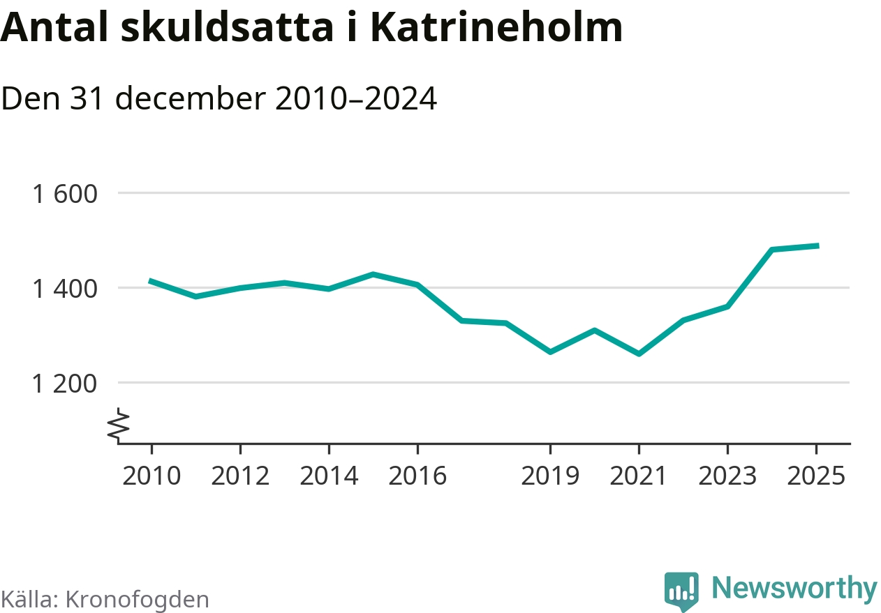 Inte sedan åtminstone 2010 har så många Katrineholmsbor hamnat hos Kronofogden. Vid årskiftet var 1 487 invånare i kommunen skyldiga totalt 479 miljoner kronor.